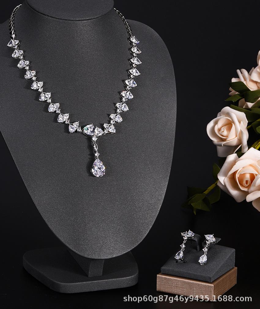 Collar Acompañado Ruifan Aretes de Circonita para Mujer Fuente Transfronteriza Caliente Europea y Americana Vestido de Novia para Mujer con traje
