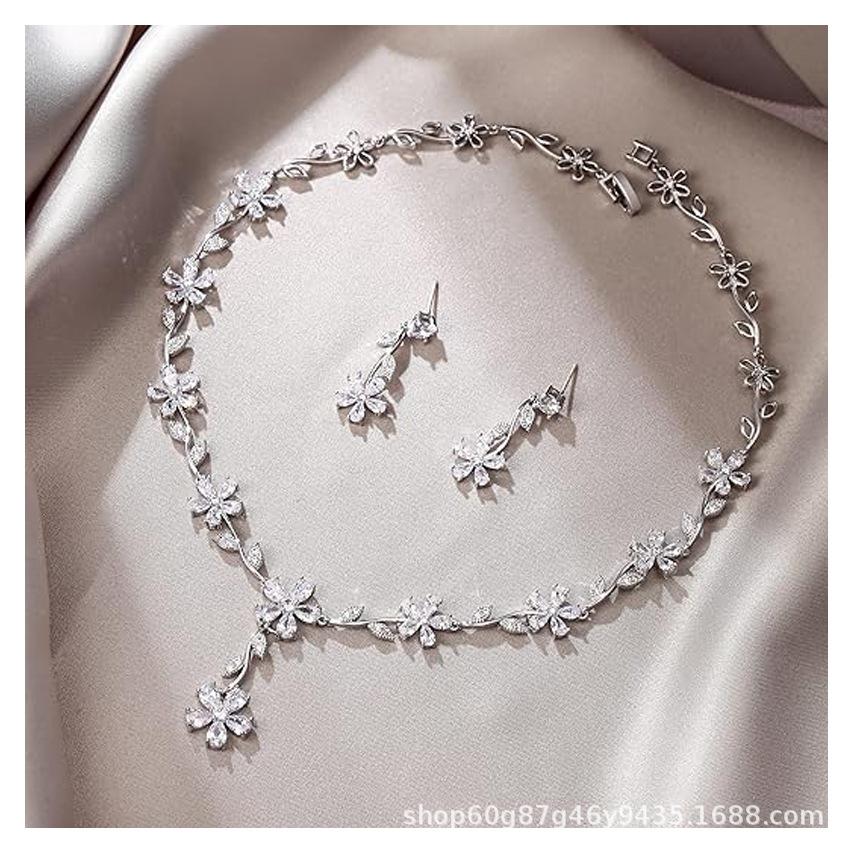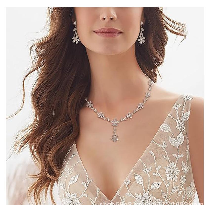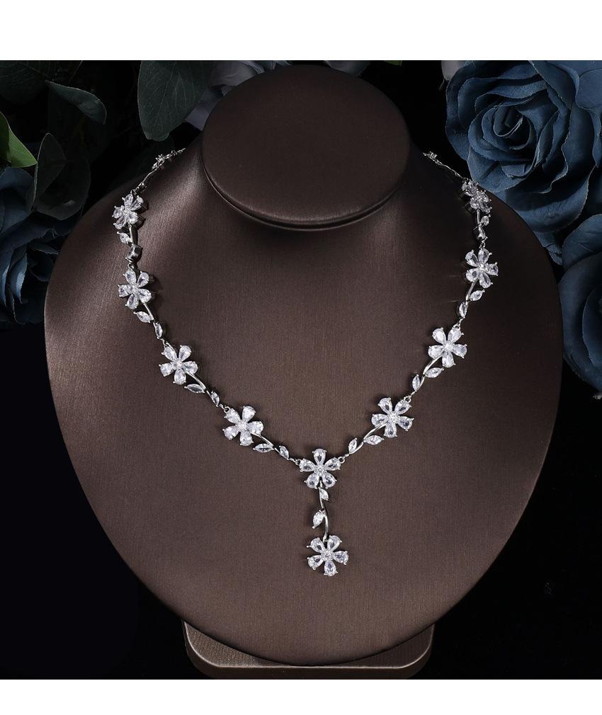 2024 Nuevo Collar de Flor de Zirconia Europeo y Americano para Mujer Elegante Cadena Clavicular para Vestido de Novia Boda Venta al por Mayor Joyería Cadena para Suéter