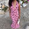 2025 Primavera/Verano Nuevo Vacaciones Estilo Sexy Vestido Chaleco Cintura Ceñida Atado Halter Cuello Estampado de Lunares Vestido Largo