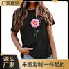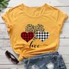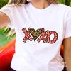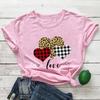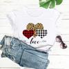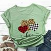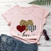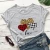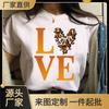 Nueva Camiseta Love Estampado Leopardo Amor Europea y Americana Comercio Exterior Cuello Redondo Manga Corta Comercio Exterior Camiseta Día de San Valentín Nueva