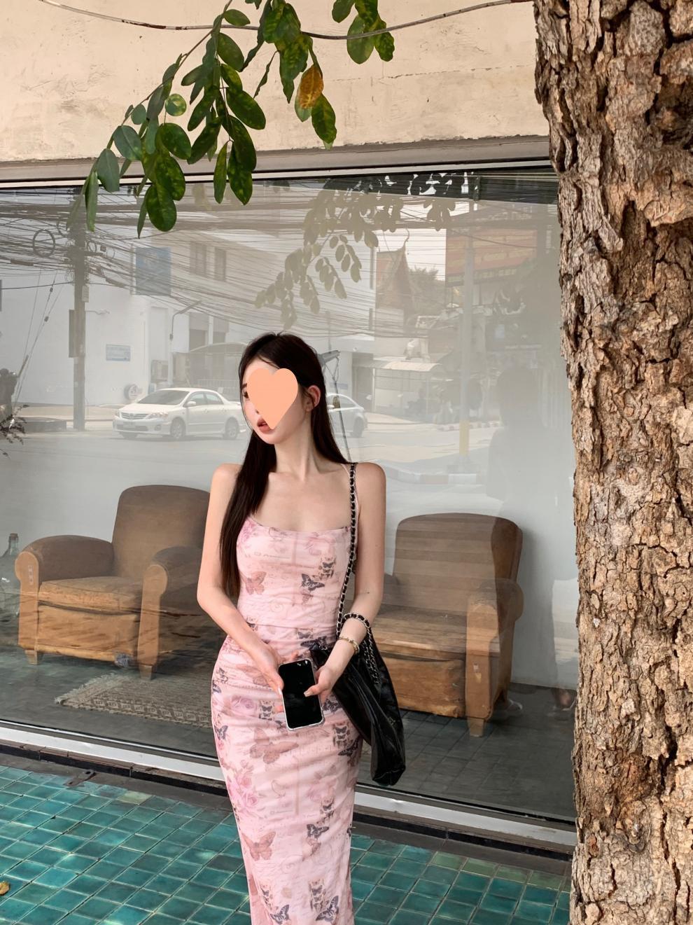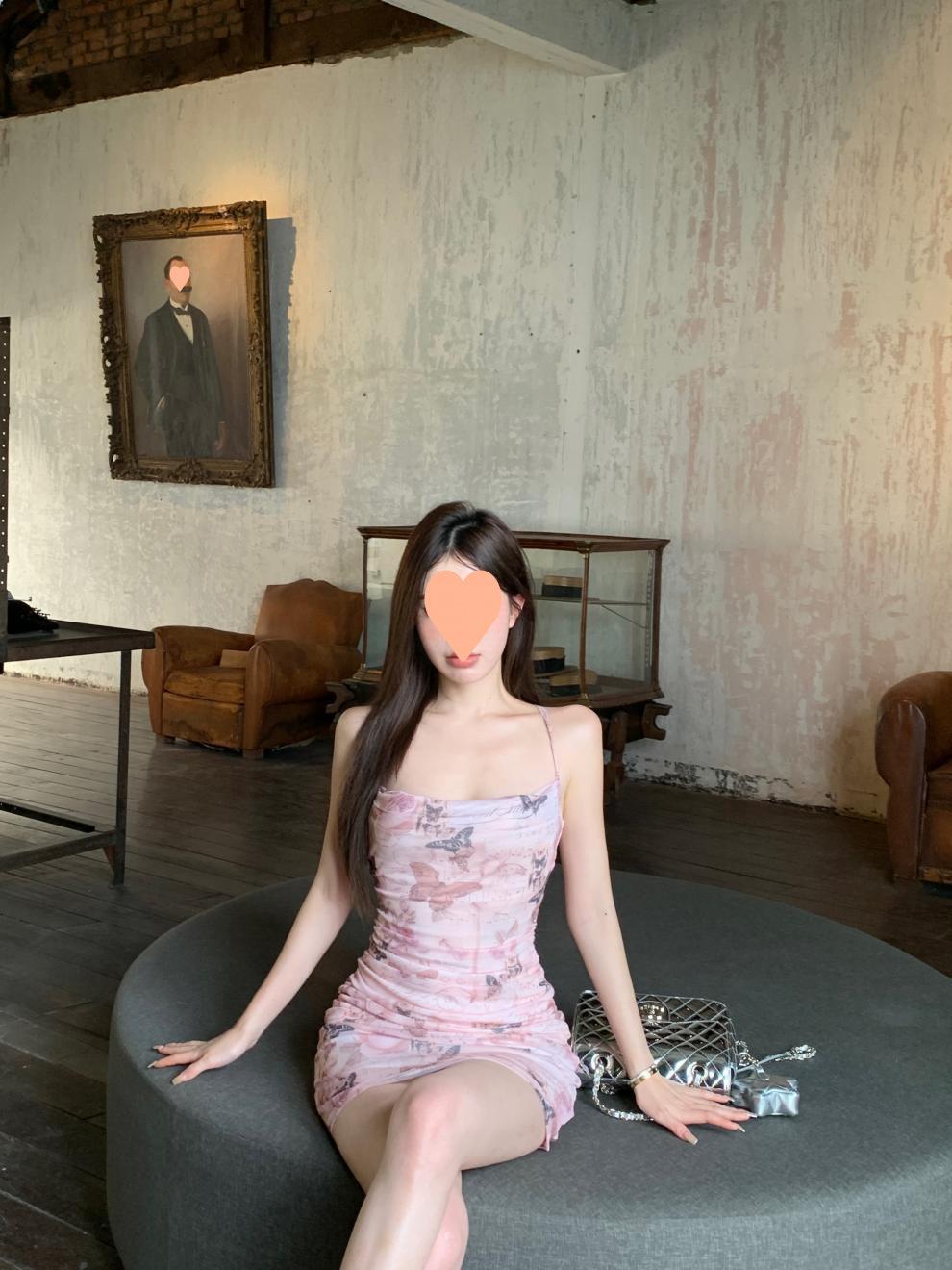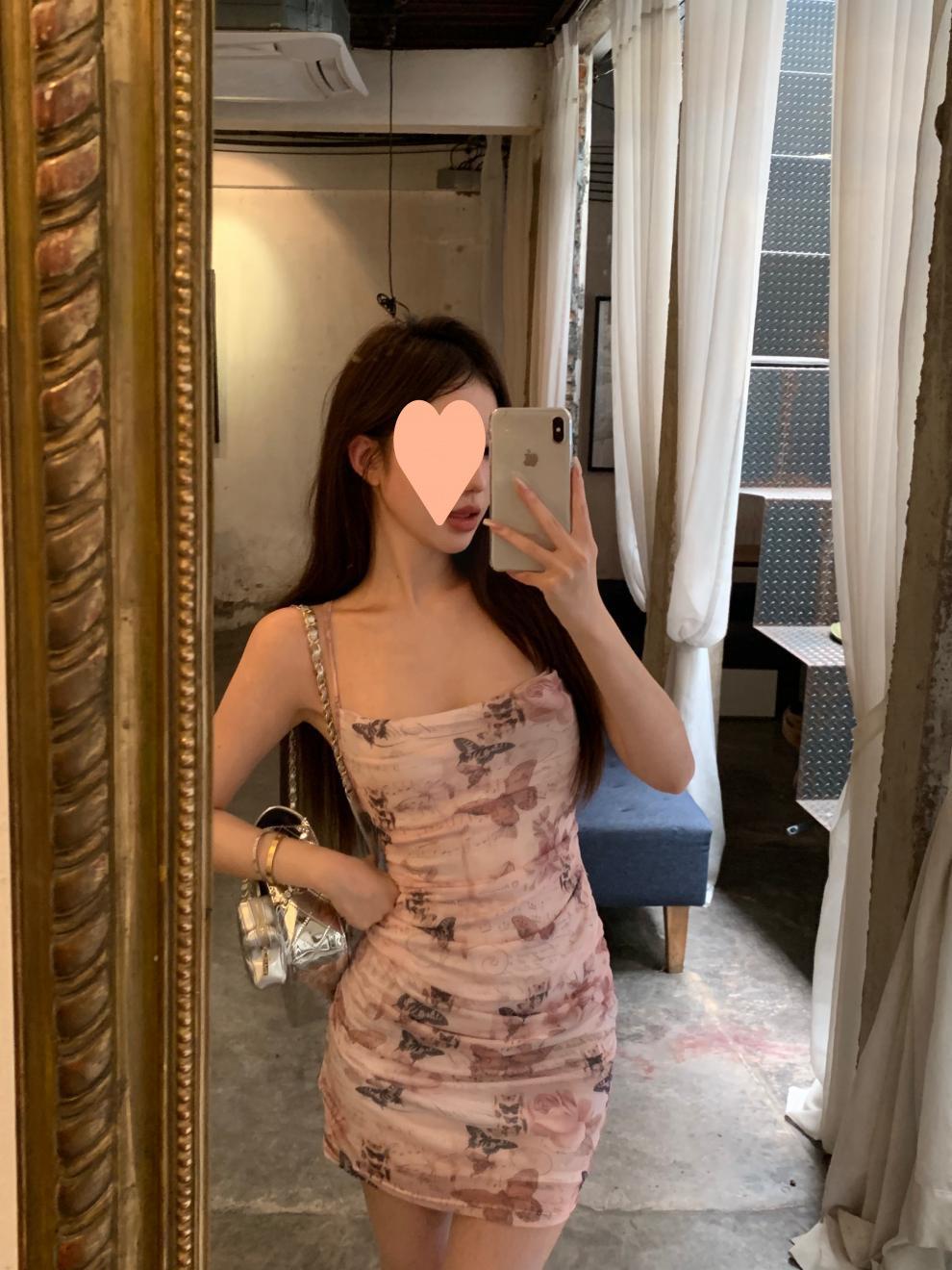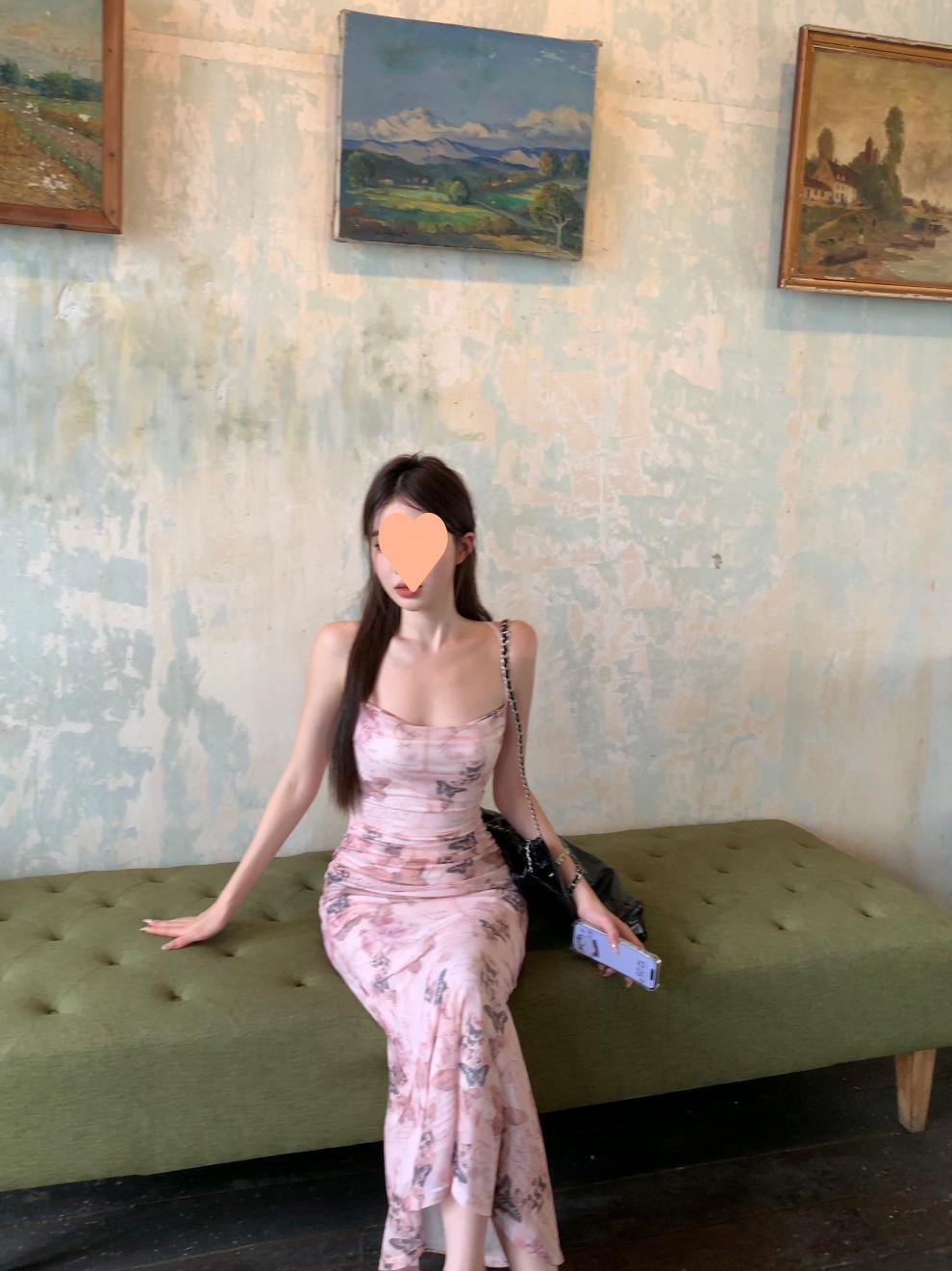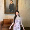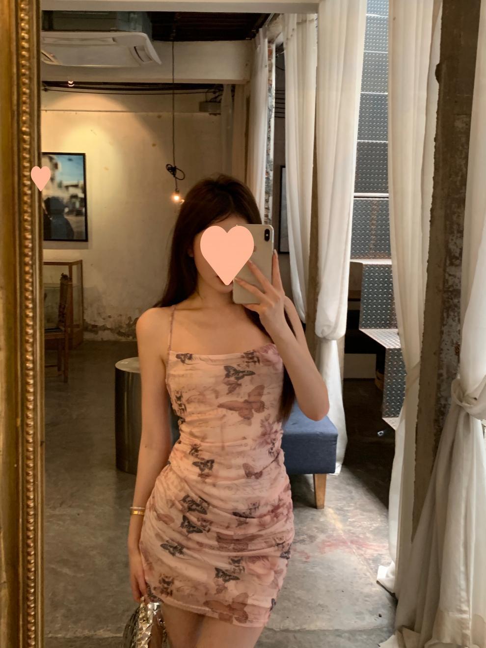 Vestido Sexy de Tirantes con Estampado de Mariposas para Mujer Verano Revelador de Cintura Tirante Trasero Falda de Cadera Lujuria Pura Falda Larga