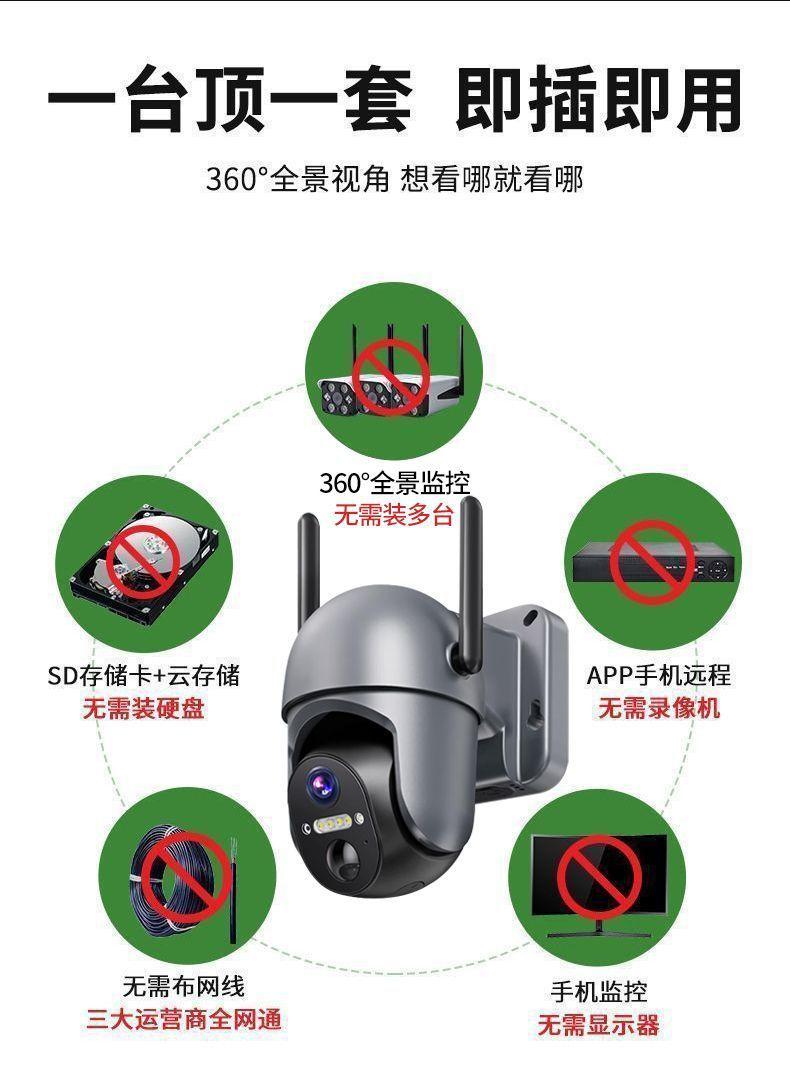 Cámara de vigilancia giratoria de 360 grados para el hogar sin ángulo muerto monitor impermeable para exteriores 4G sin conexión de red control remoto por teléfono móvil