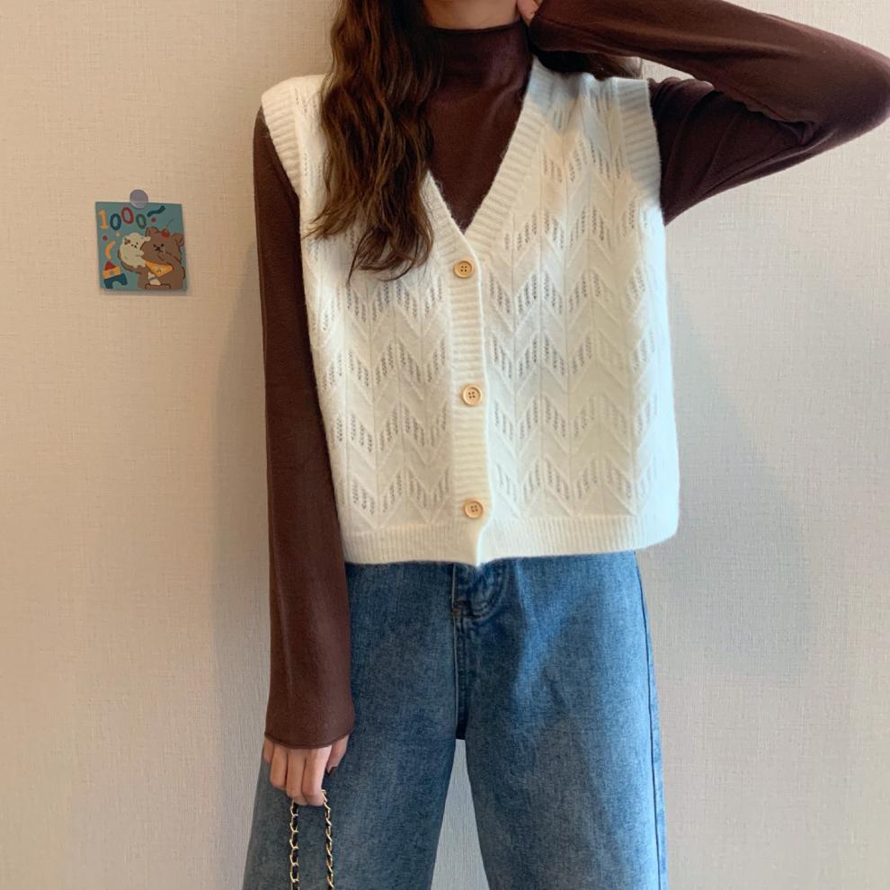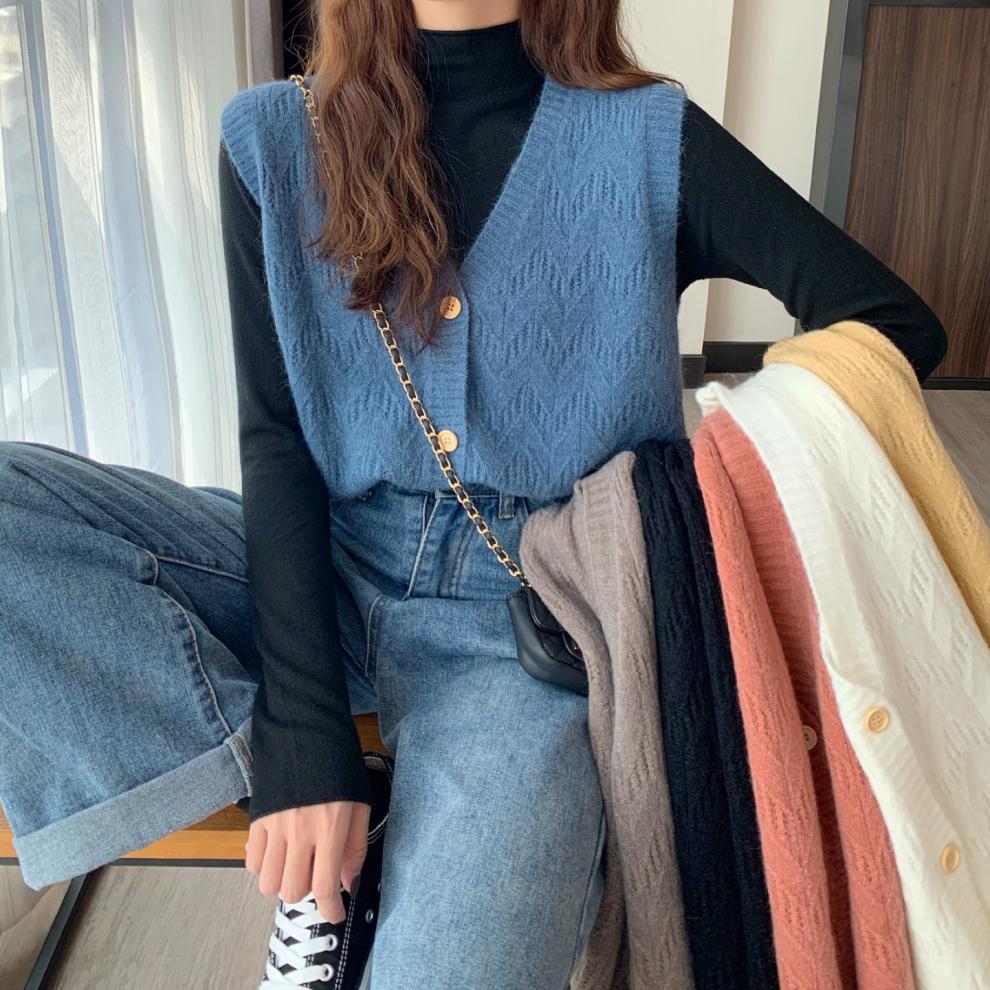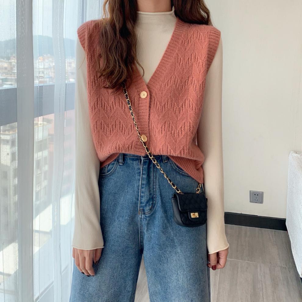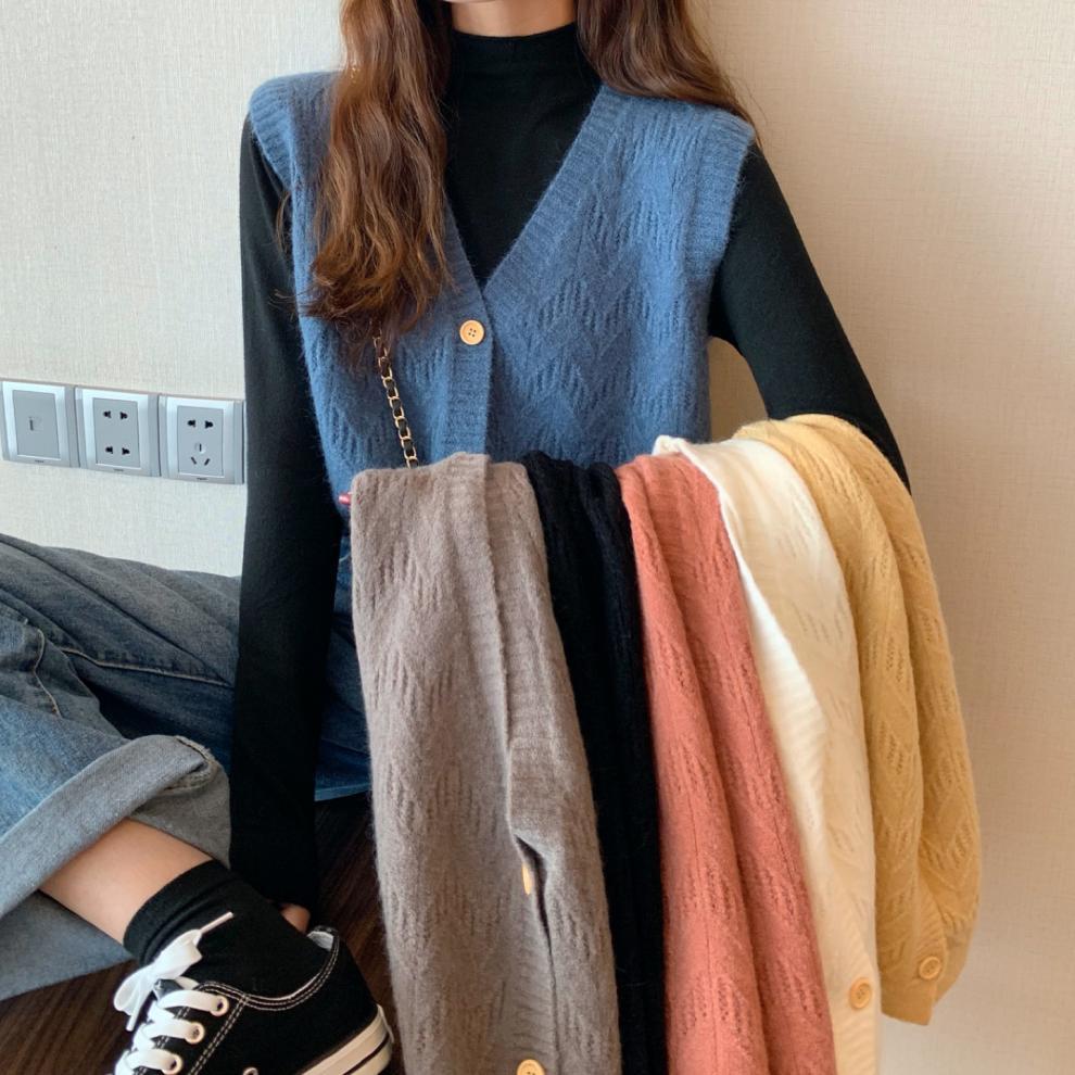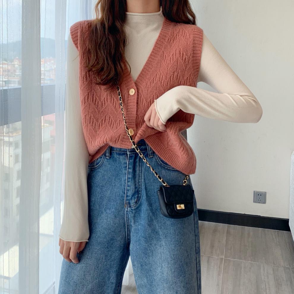 Chaleco para mujer otoño e invierno nuevo estilo coreano top sin mangas cárdigan suelto moda versátil cuello suéter tejido