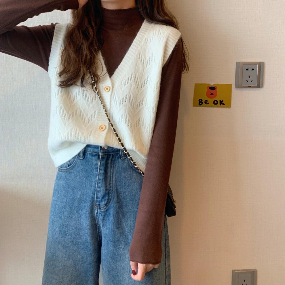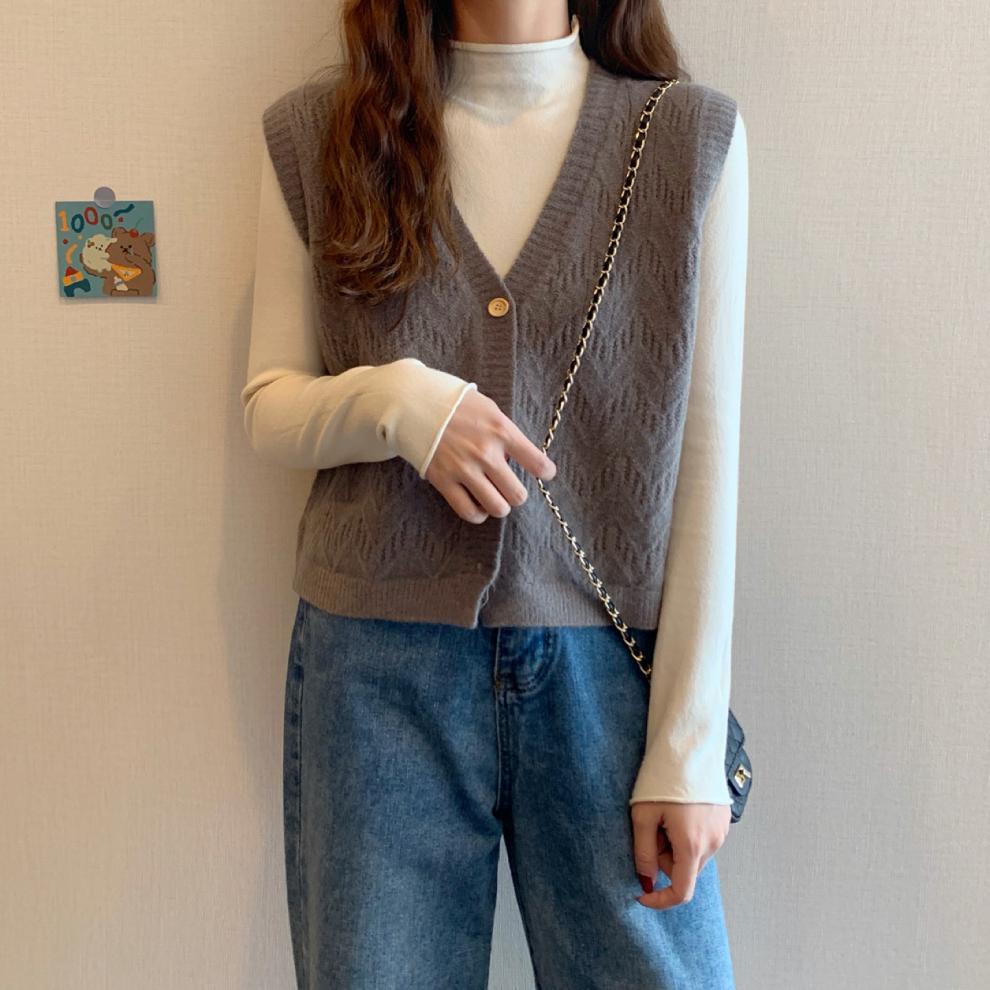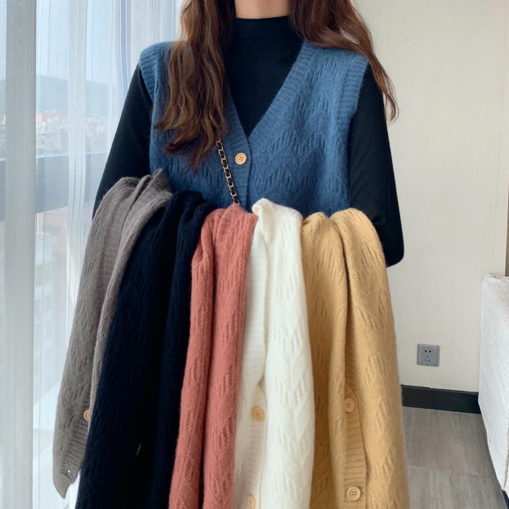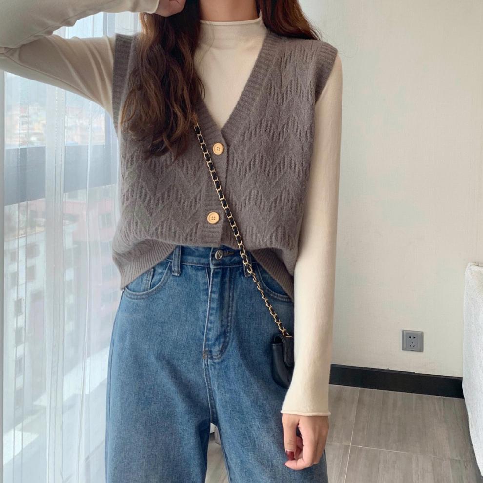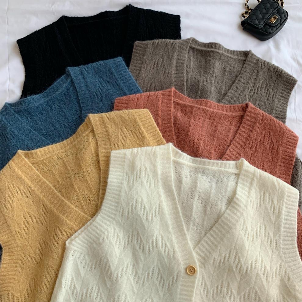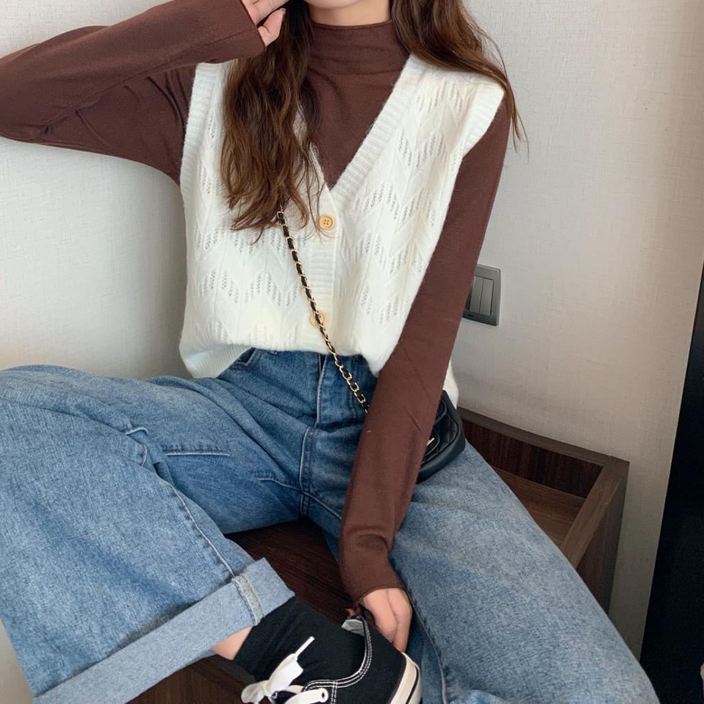 Chaleco para mujer otoño e invierno nuevo estilo coreano top sin mangas cárdigan suelto moda versátil cuello suéter tejido