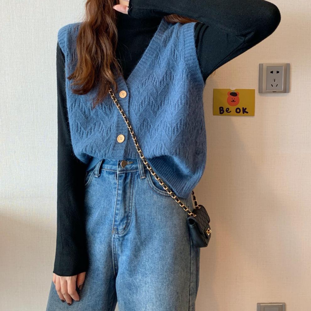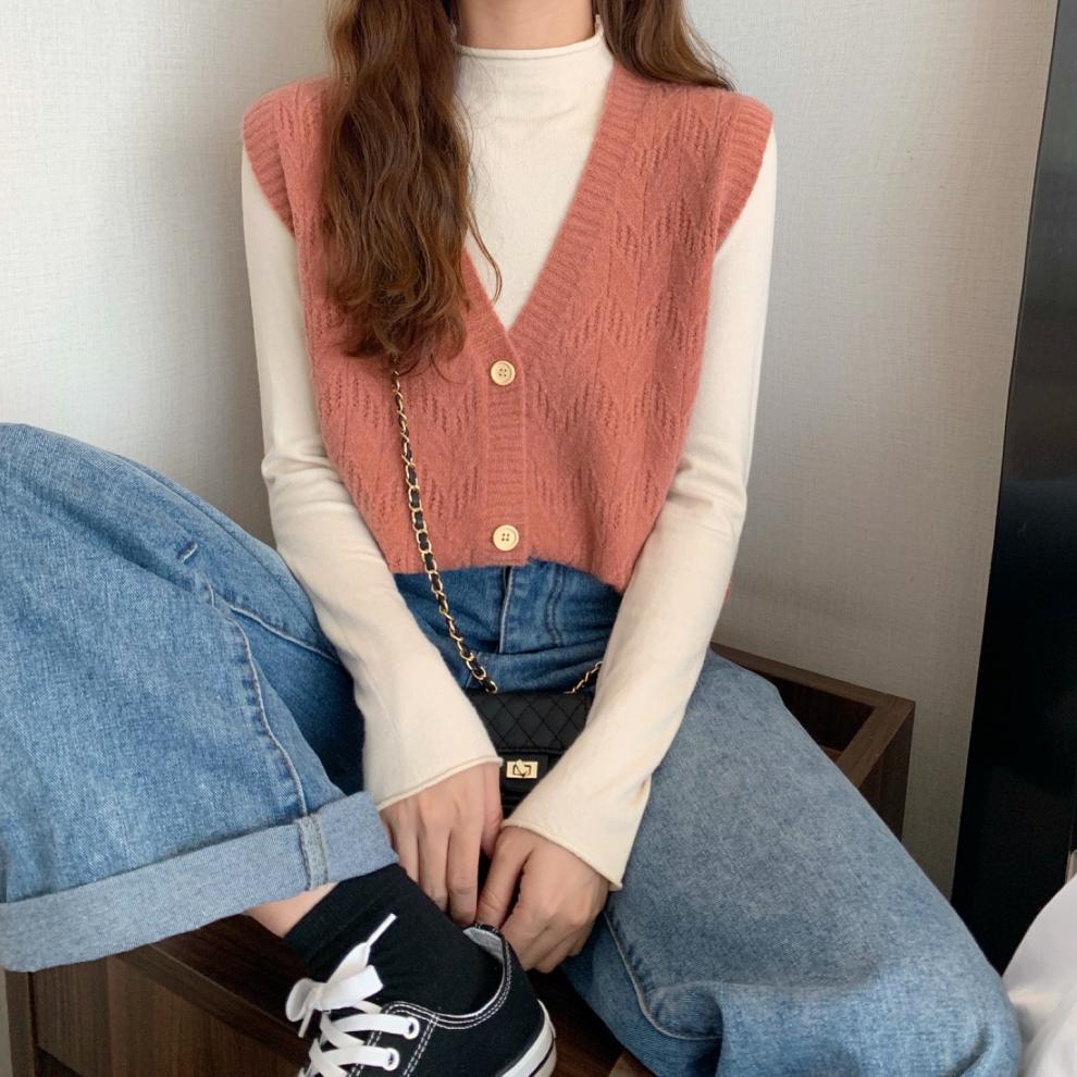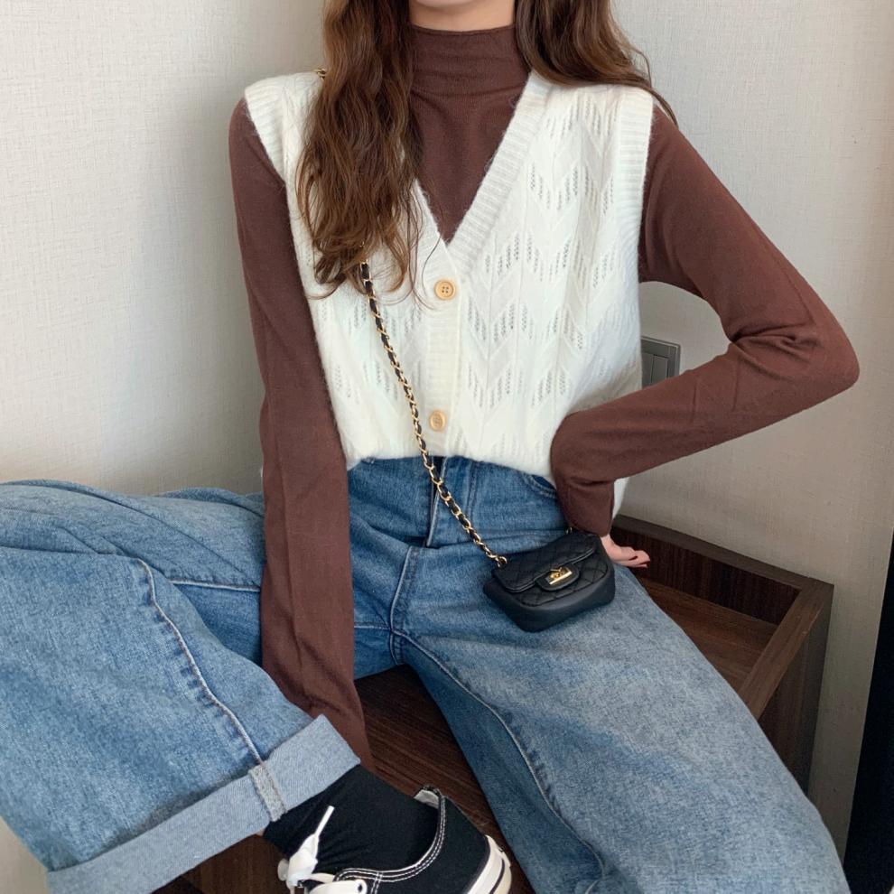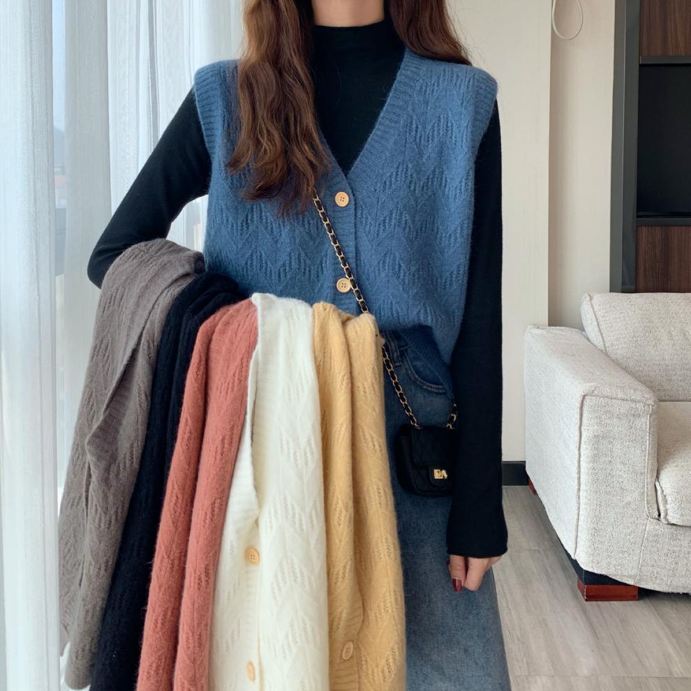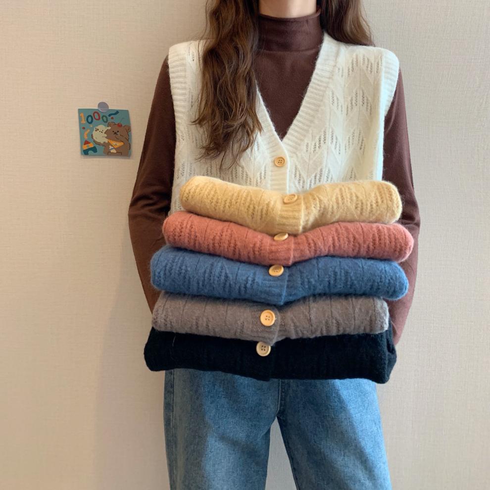 Chaleco para mujer otoño e invierno nuevo estilo coreano top sin mangas cárdigan suelto moda versátil cuello suéter tejido