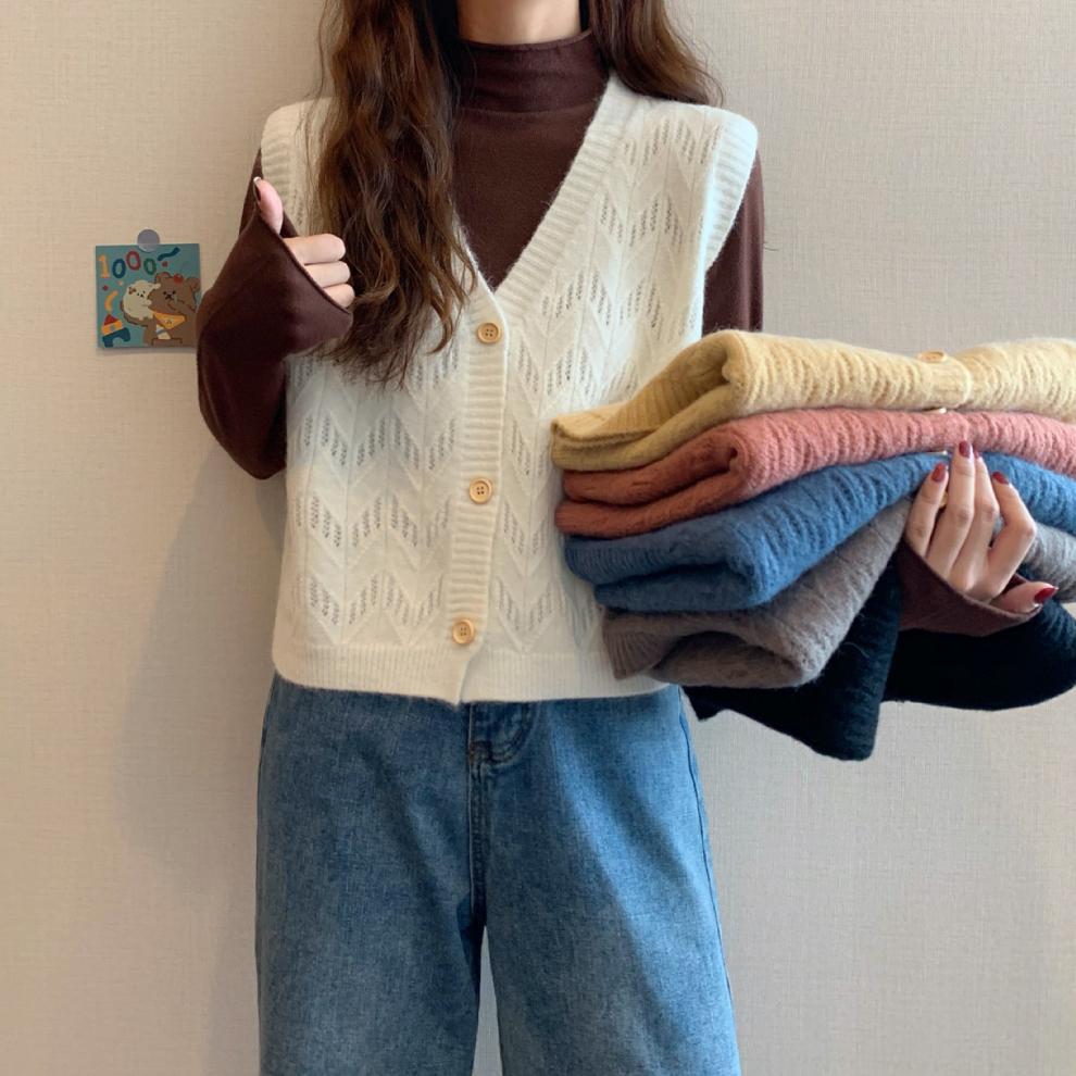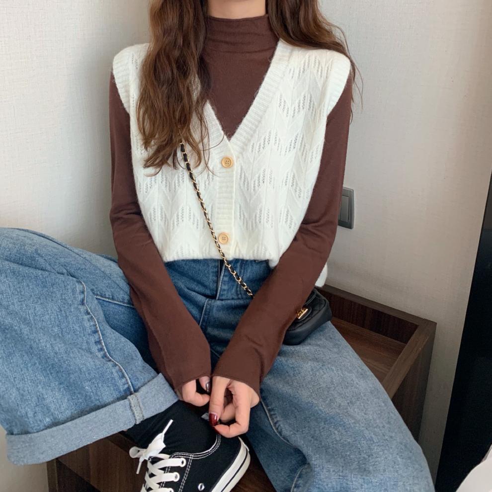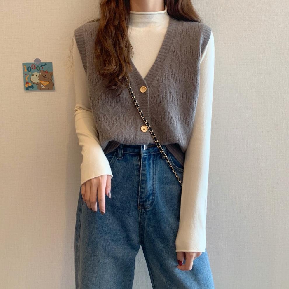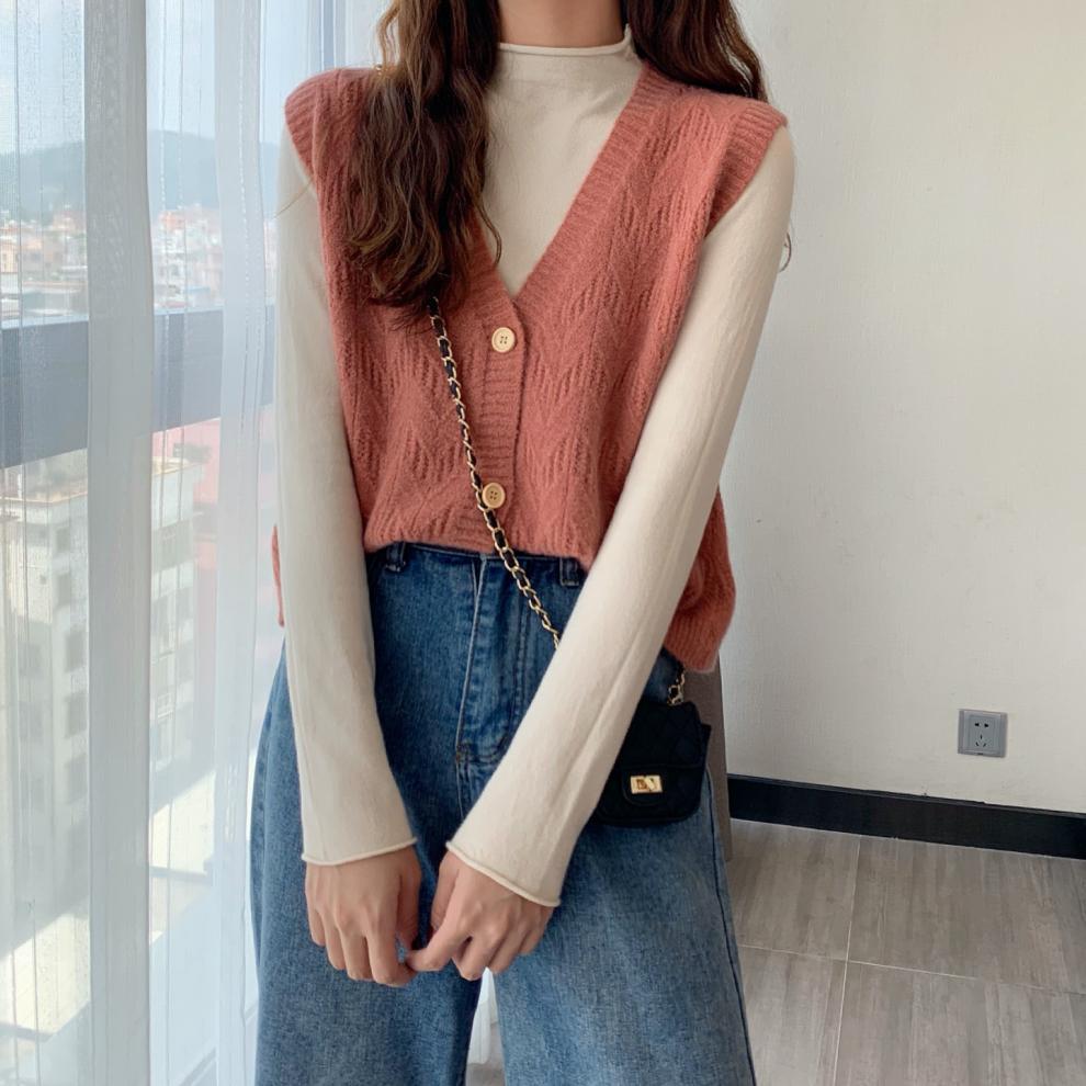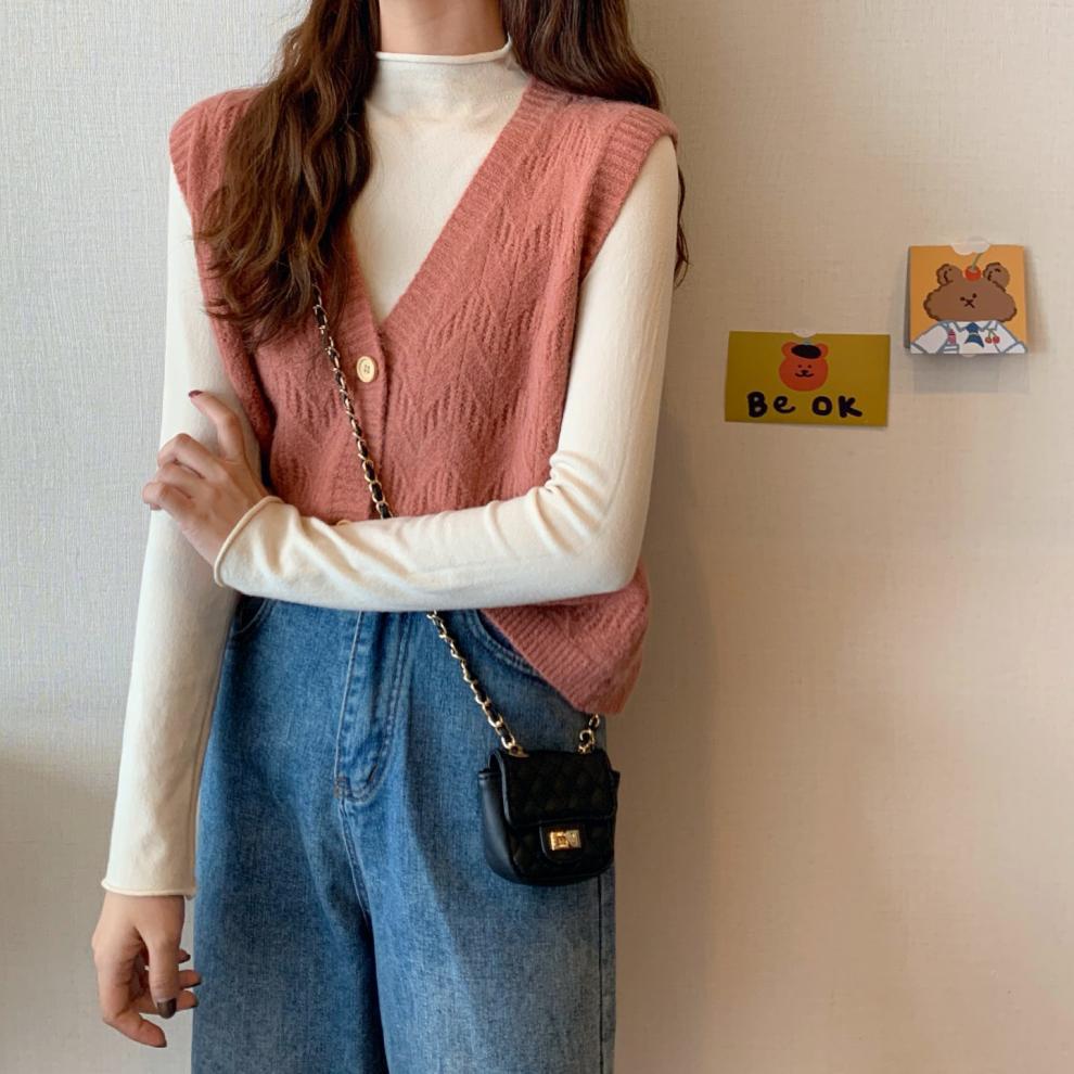 Chaleco para mujer otoño e invierno nuevo estilo coreano top sin mangas cárdigan suelto moda versátil cuello suéter tejido