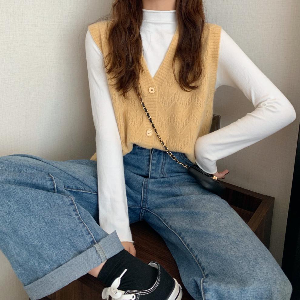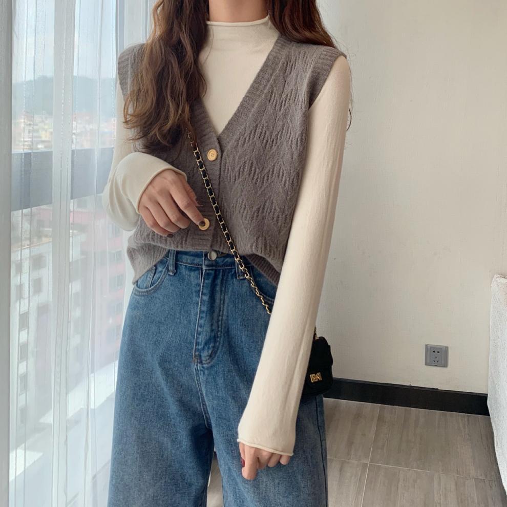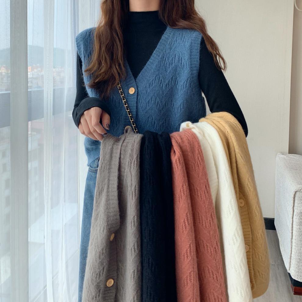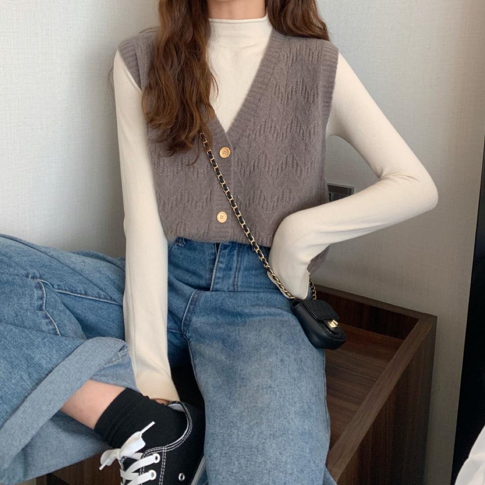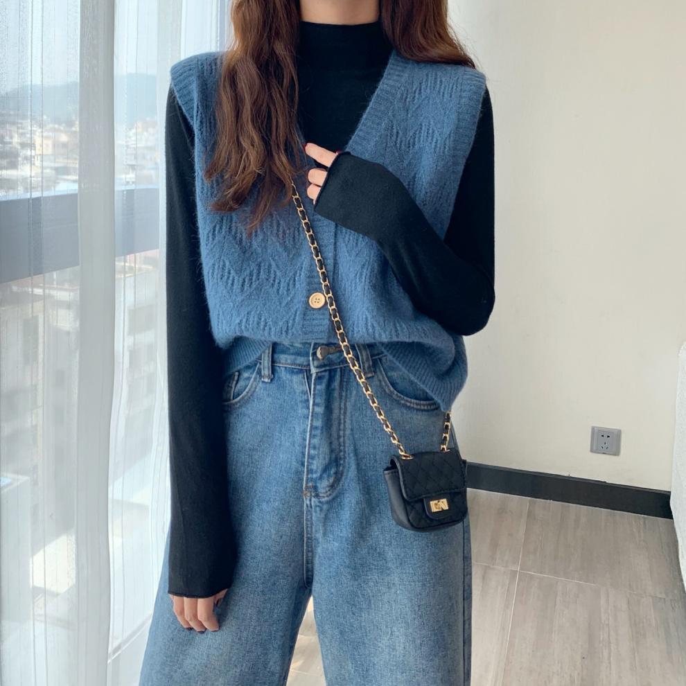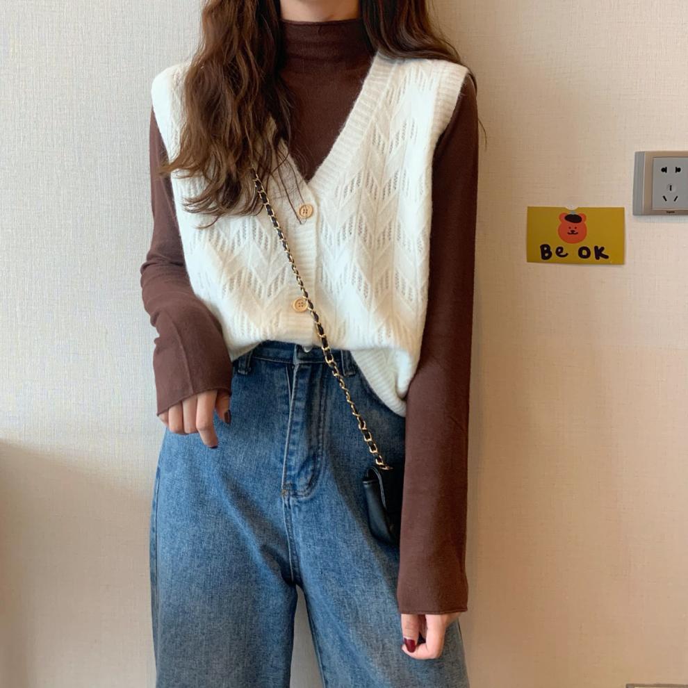 Chaleco para mujer otoño e invierno nuevo estilo coreano top sin mangas cárdigan suelto moda versátil cuello suéter tejido
