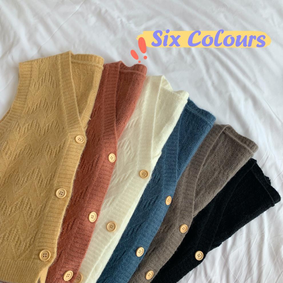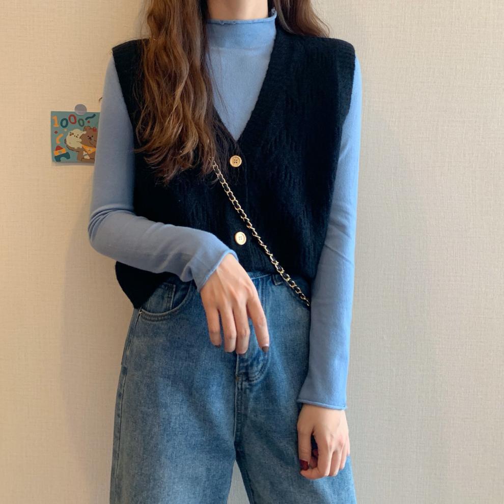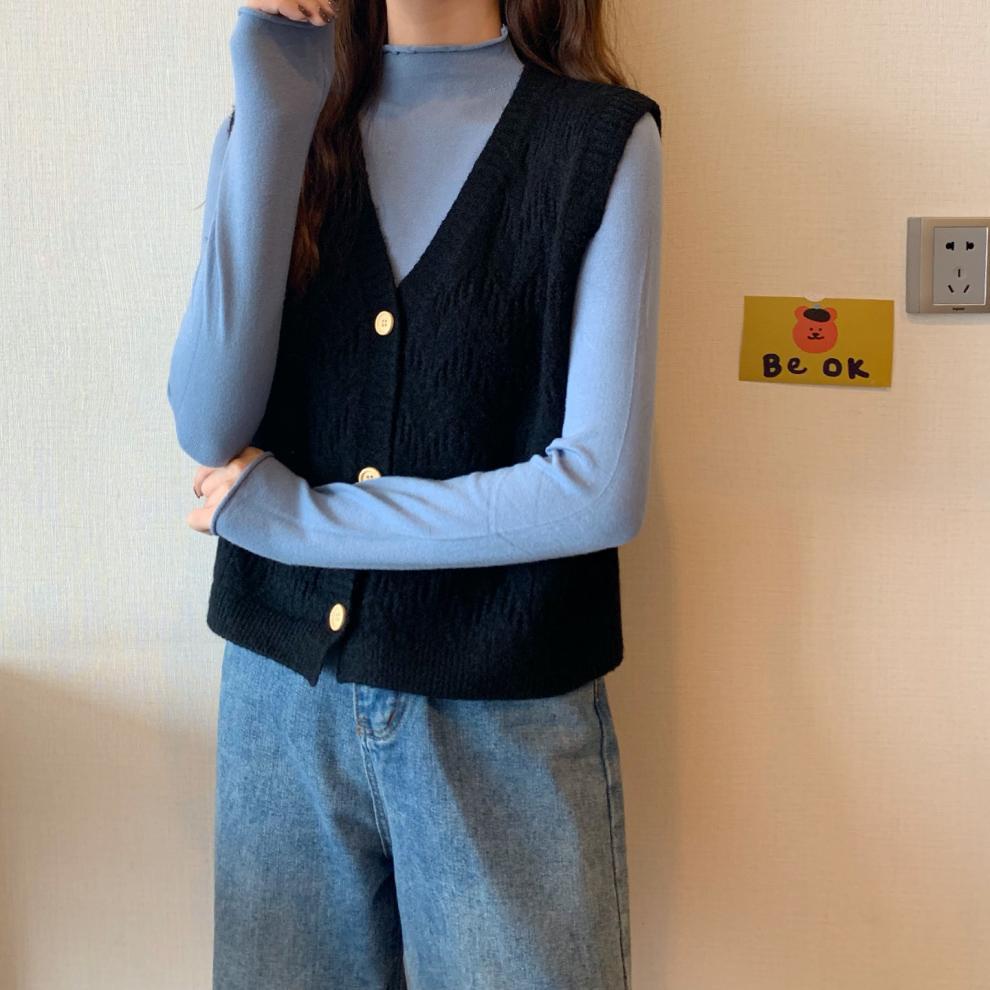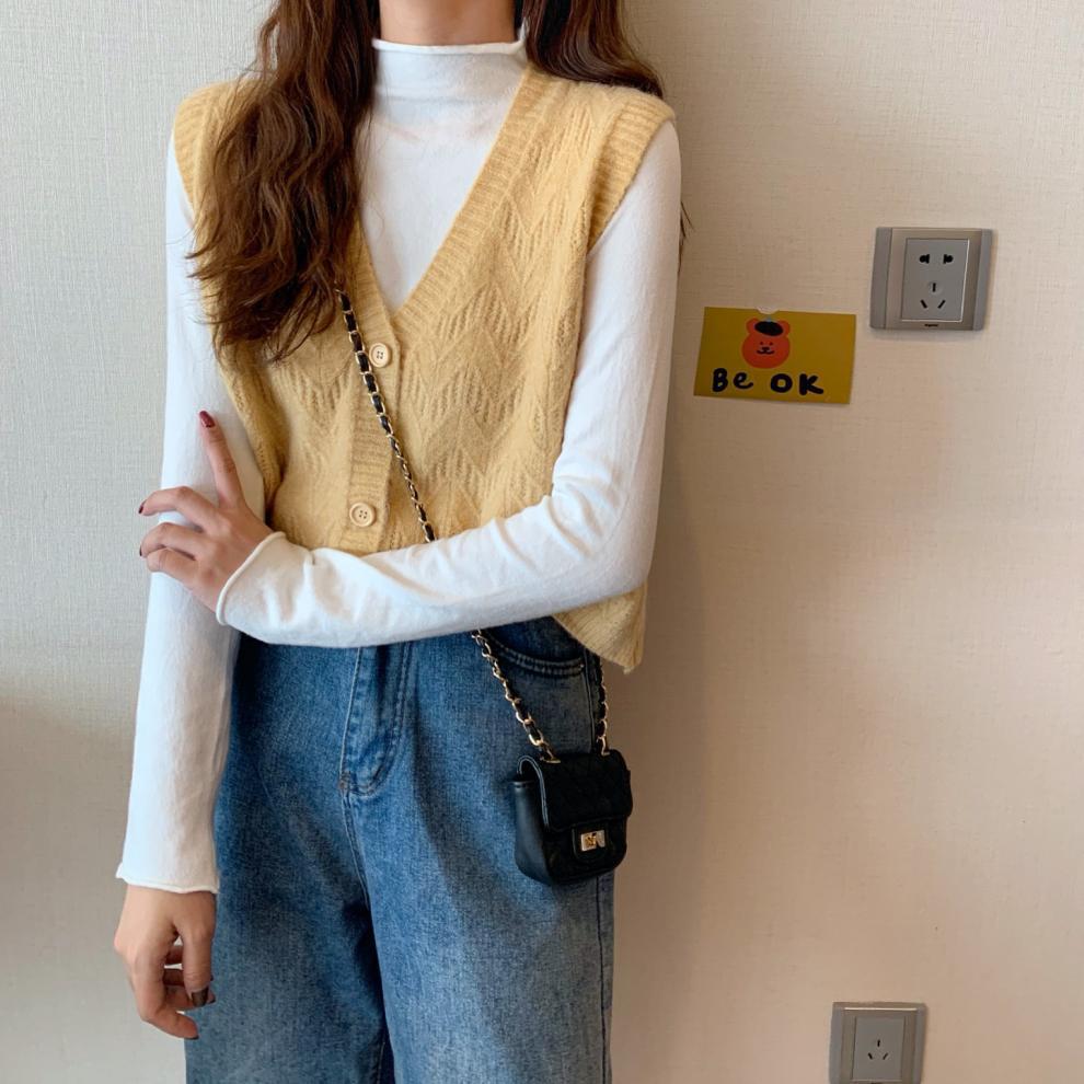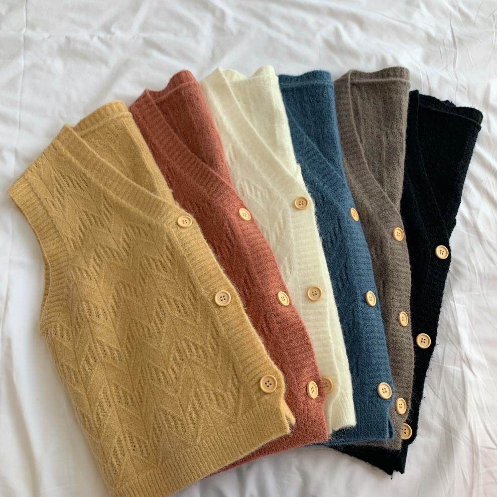 Chaleco para mujer otoño e invierno nuevo estilo coreano top sin mangas cárdigan suelto moda versátil cuello suéter tejido