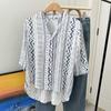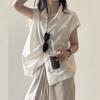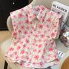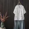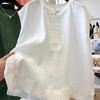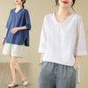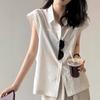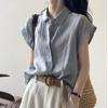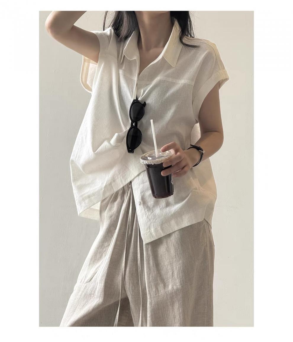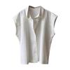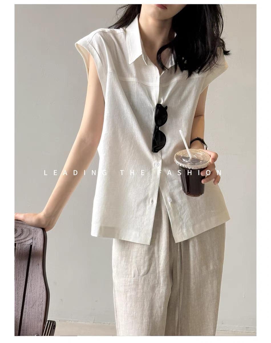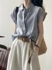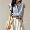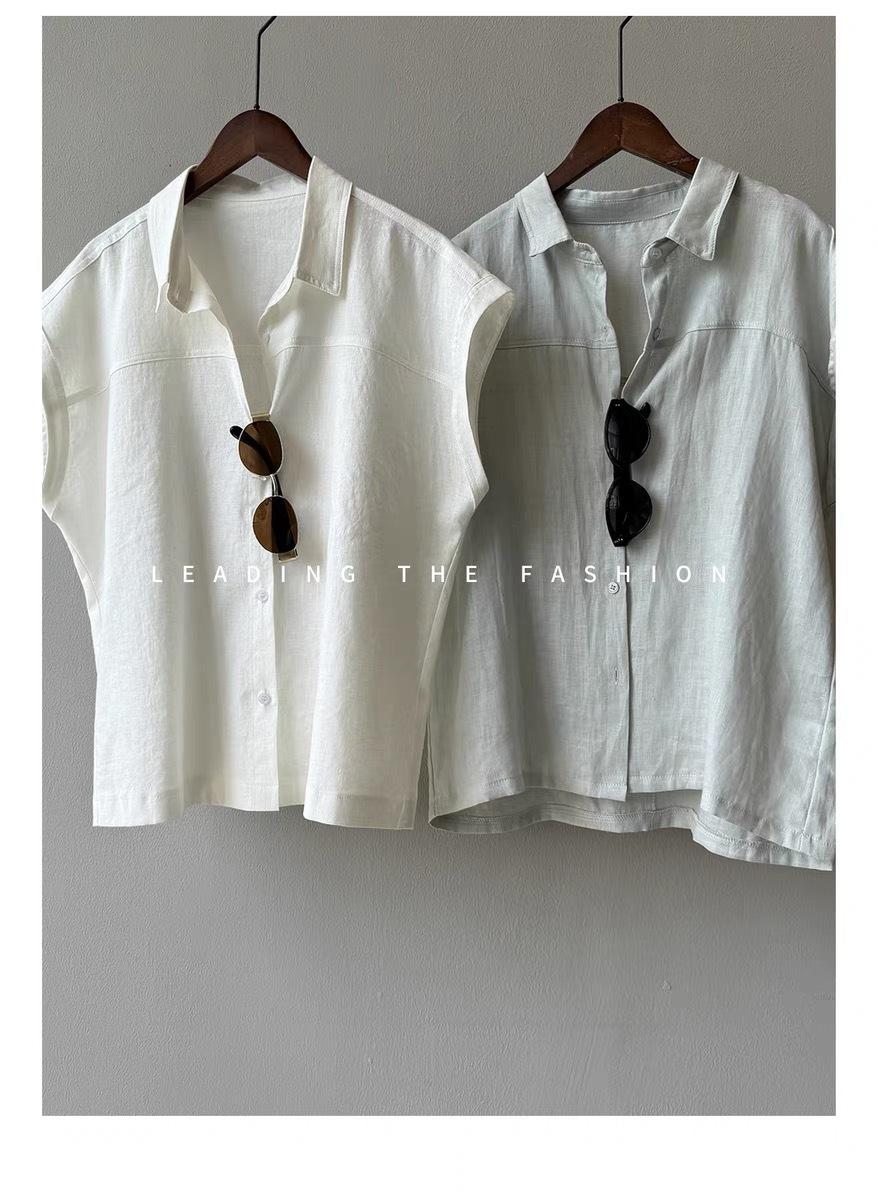 Camisa Azul de Lino de Manga Corta para Mujer Verano Ropa para Ir al Trabajo Blusa Moda Temperamento Manga Pequeña con Volante Sin Mangas Algodón Lino Top