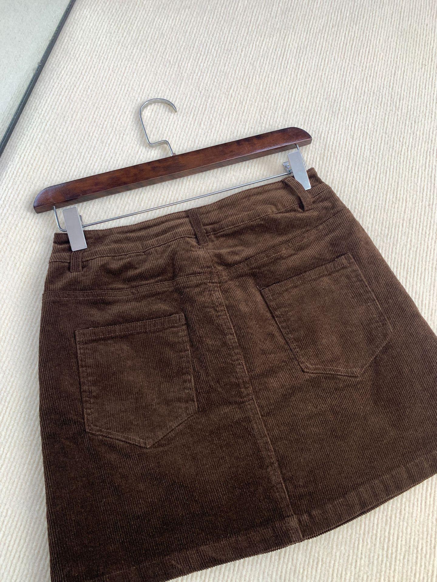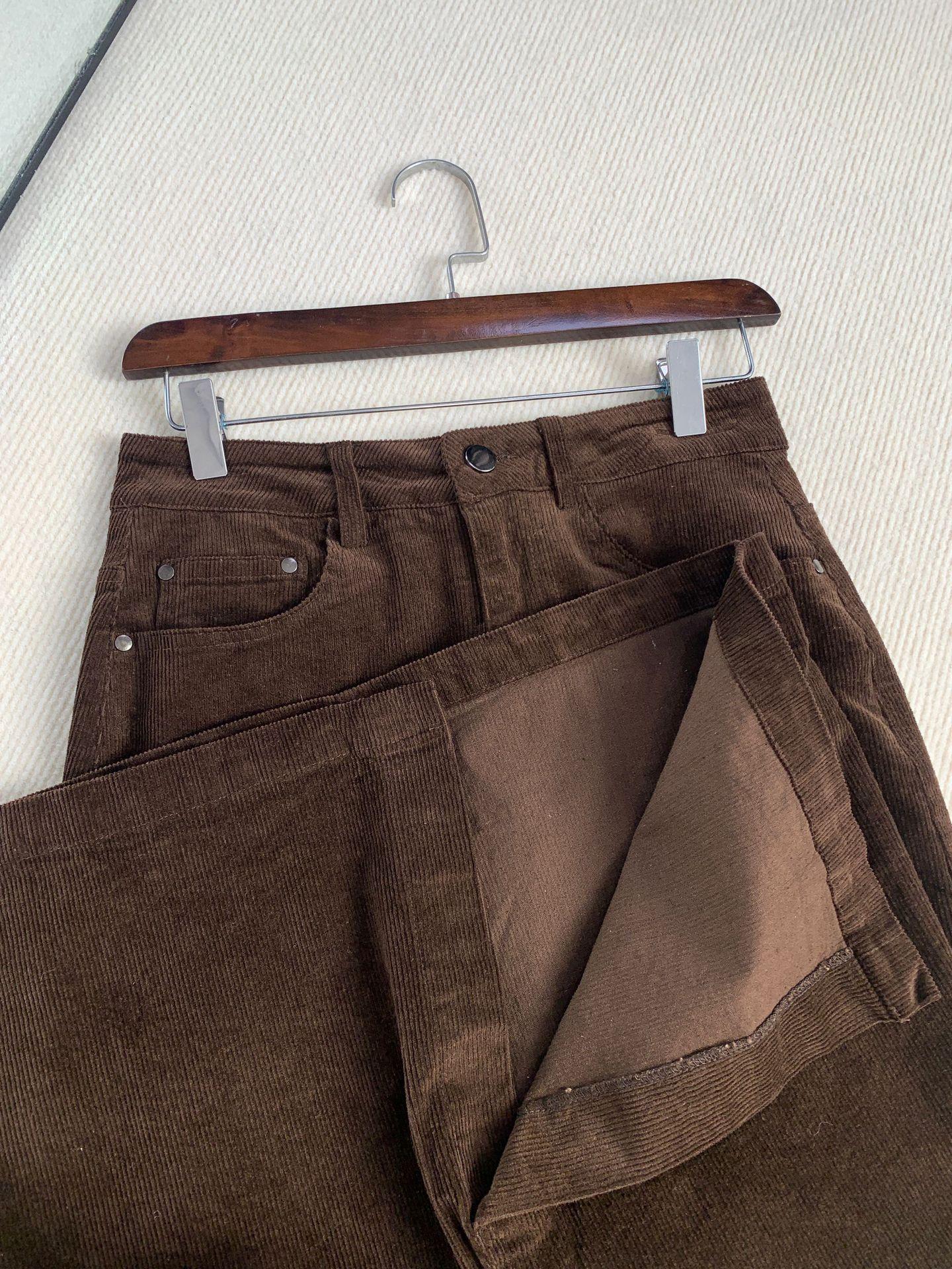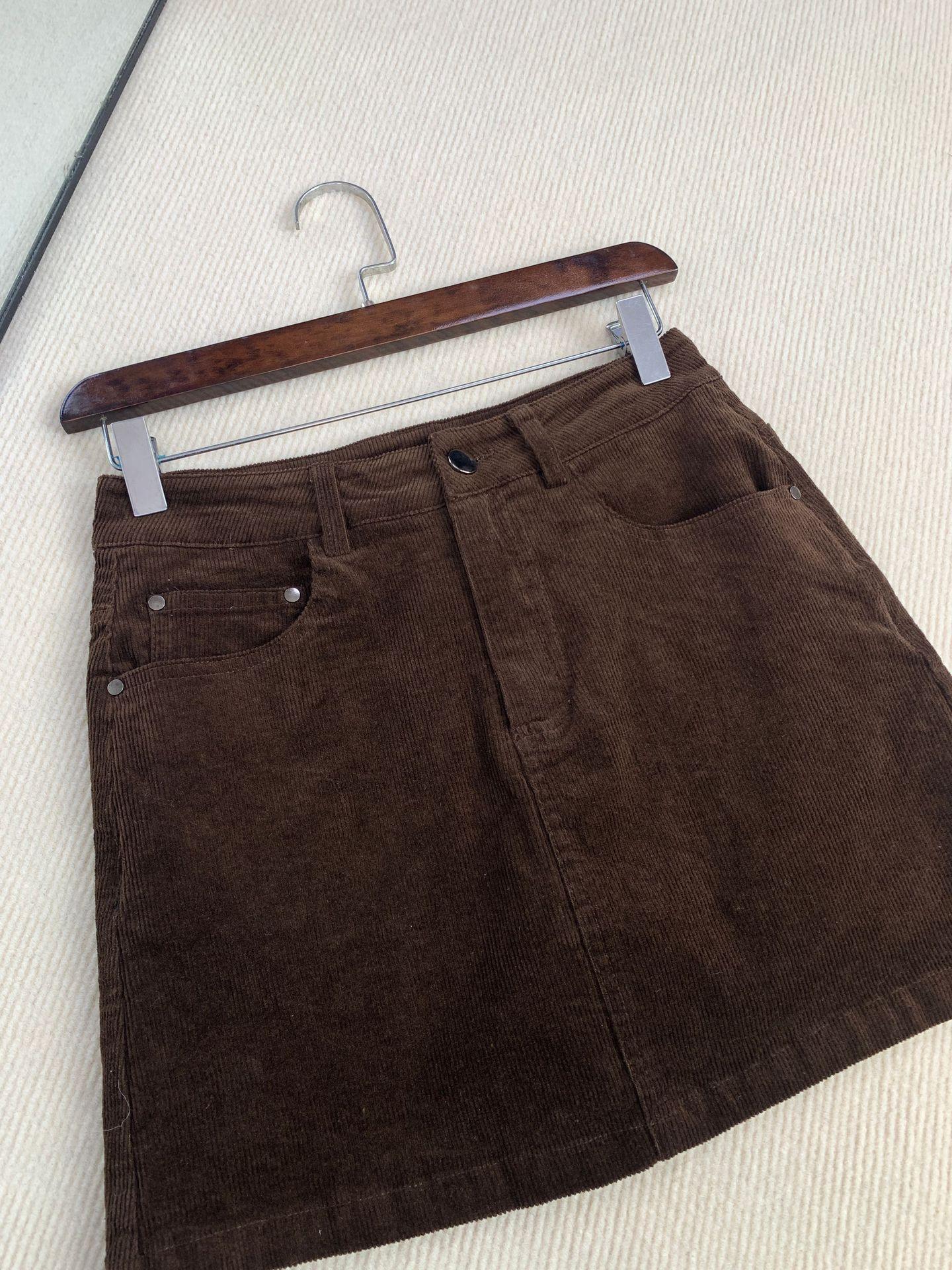 2024 Otoño e Invierno Nuevo Falda de Pana para Mujer Estilo Coreano Moda Cintura Alta Ajustada Línea A Cubre Caderas Falda Larga y Corta