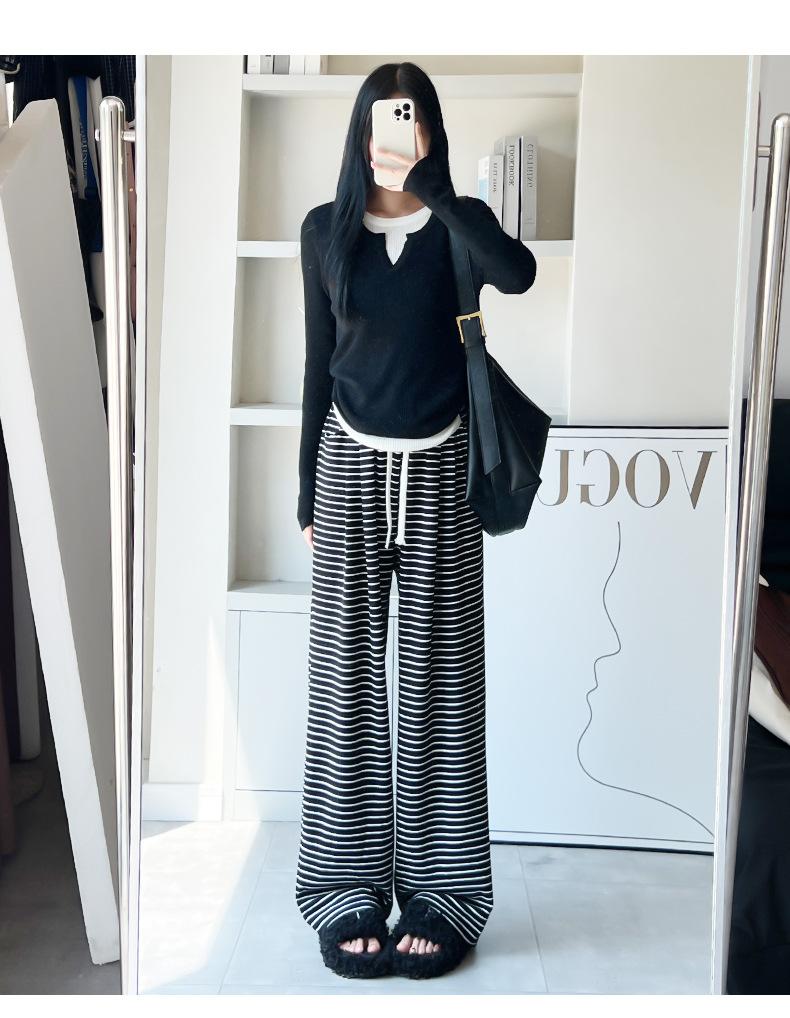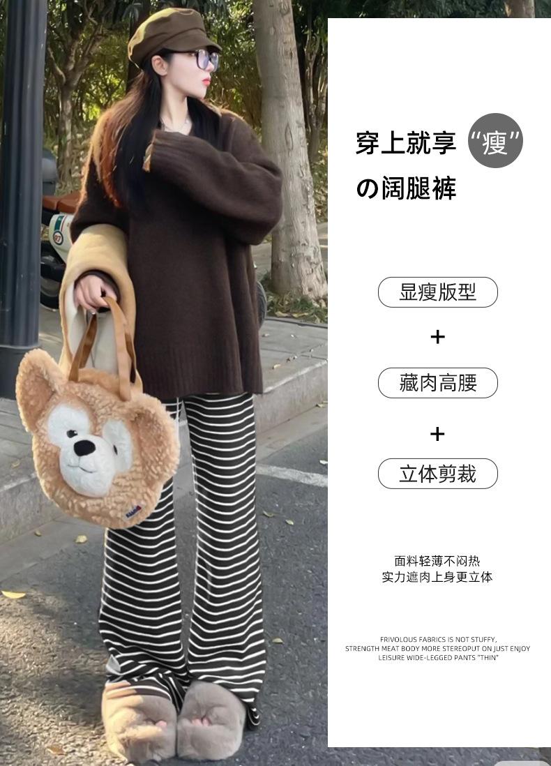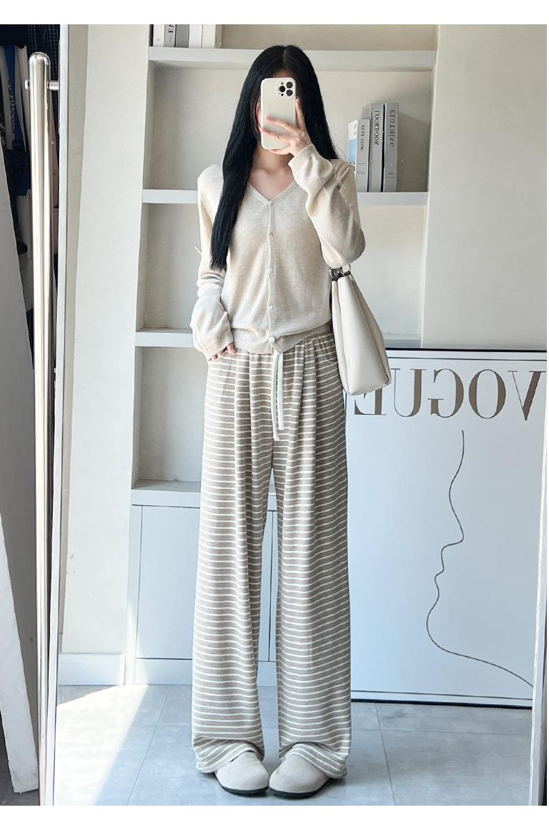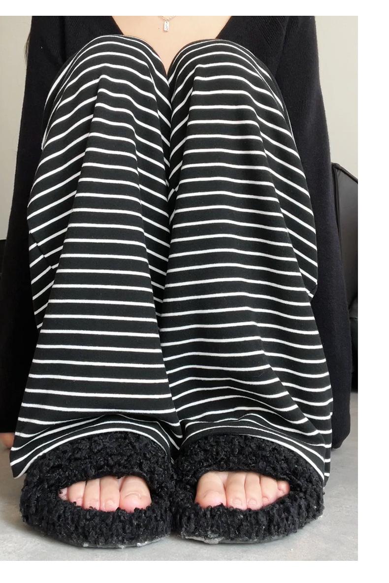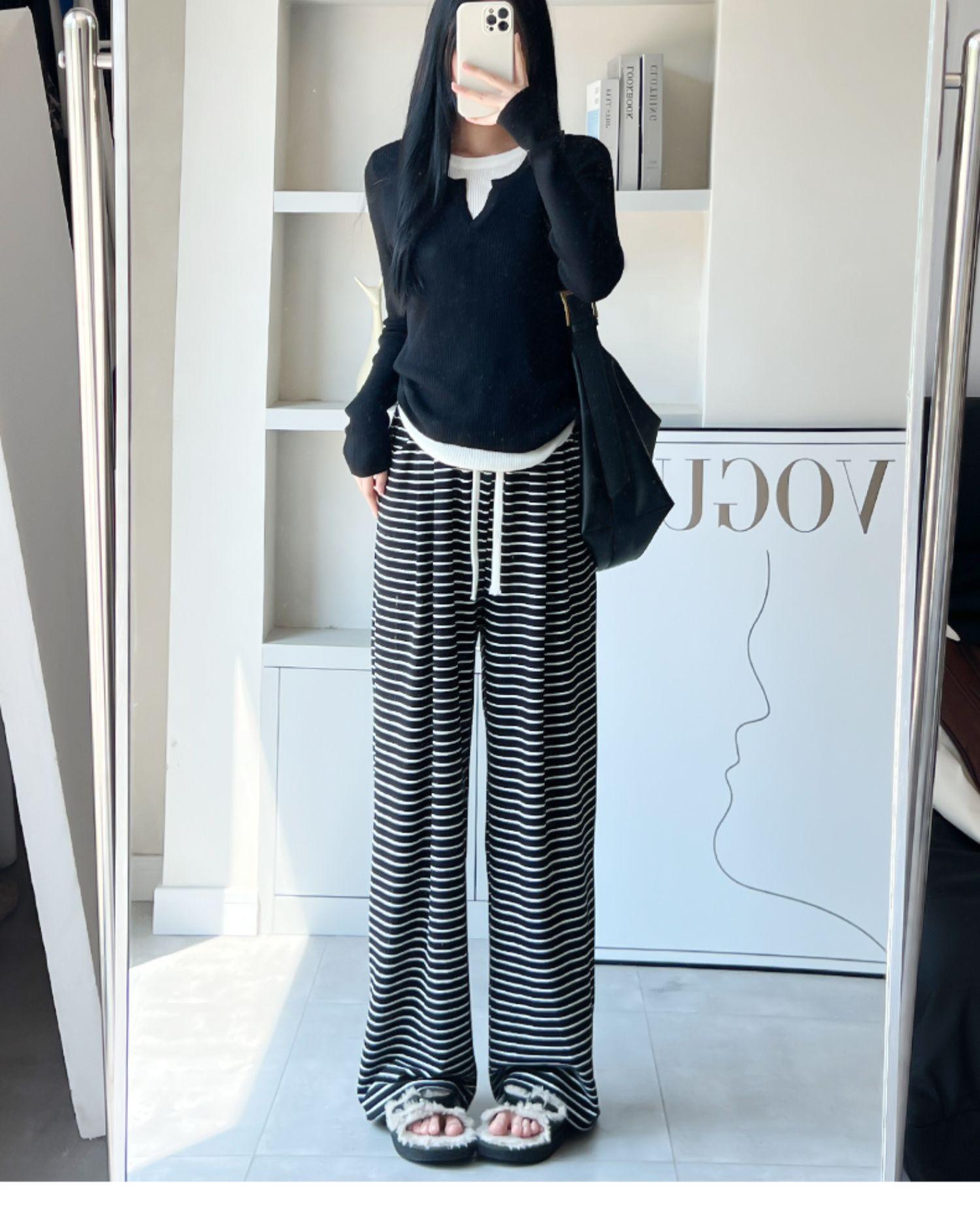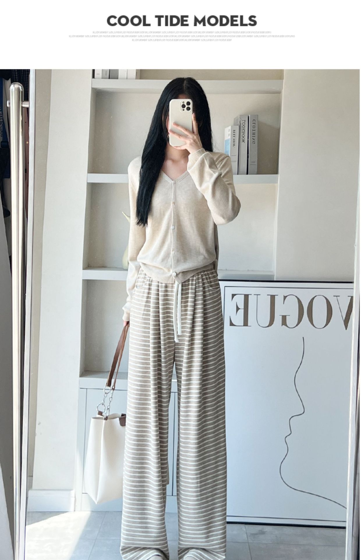 Pantalones de Caminar de Verano 2025 para Mujer de Pierna Ancha a Rayas Grises, Nuevos, de Cintura Alta, Pierna Recta, Casuales, Sueltos, Sensación Relajada y Perezosa