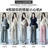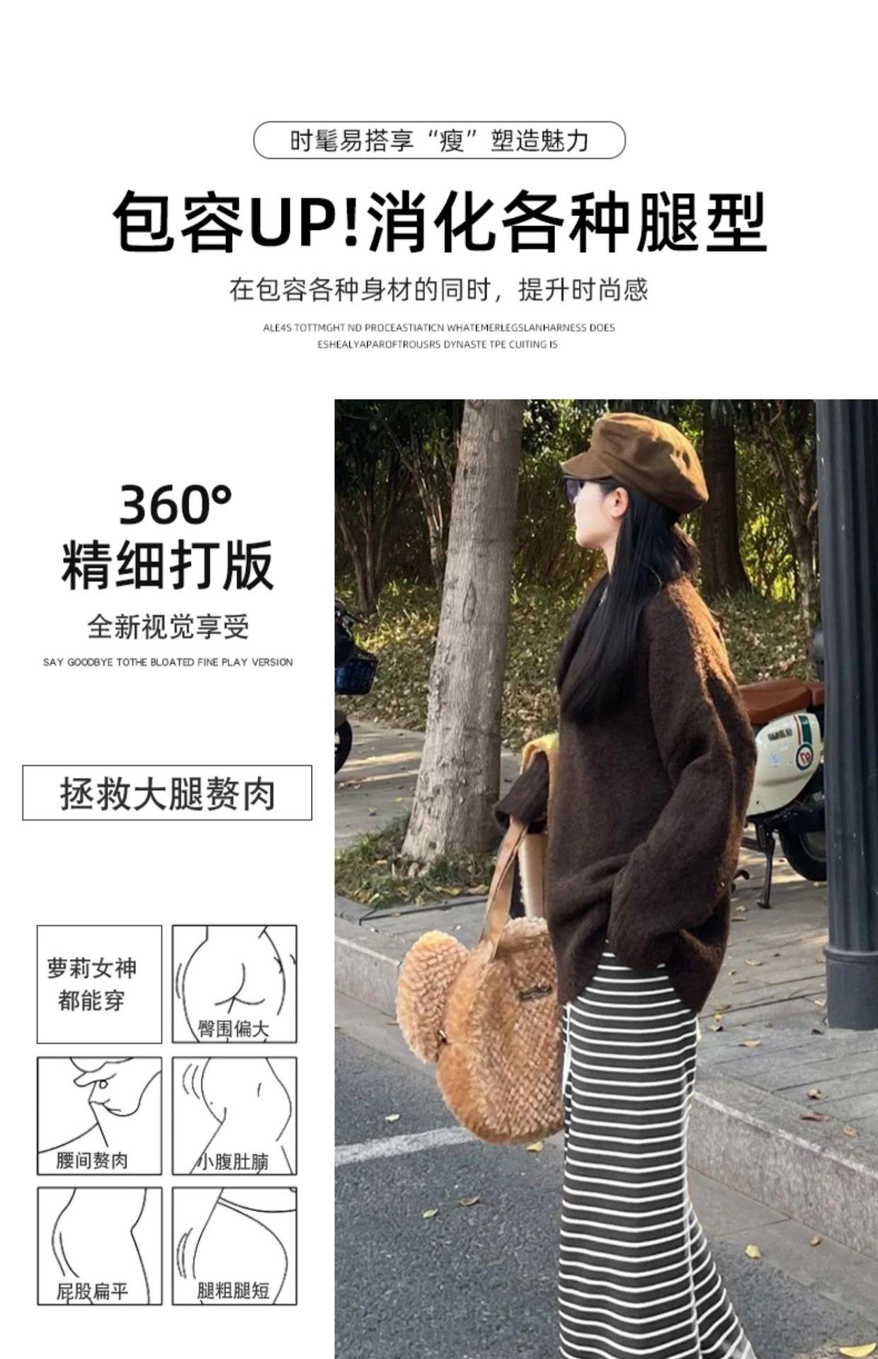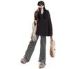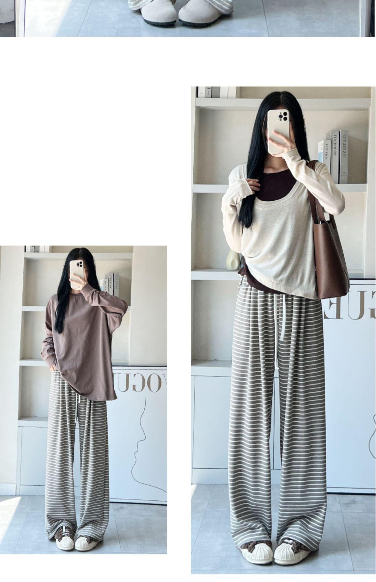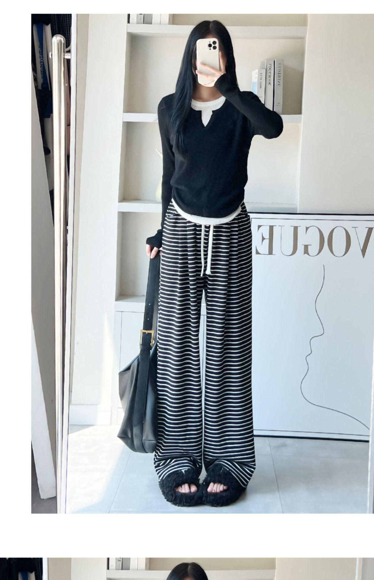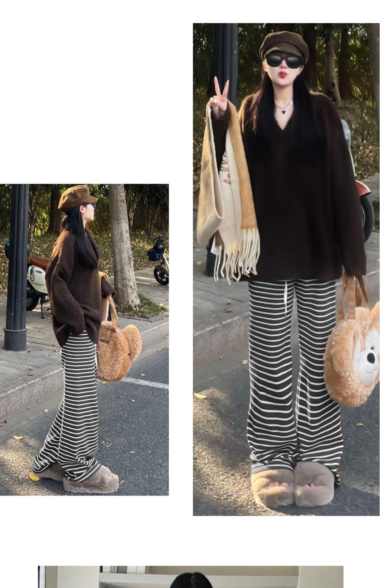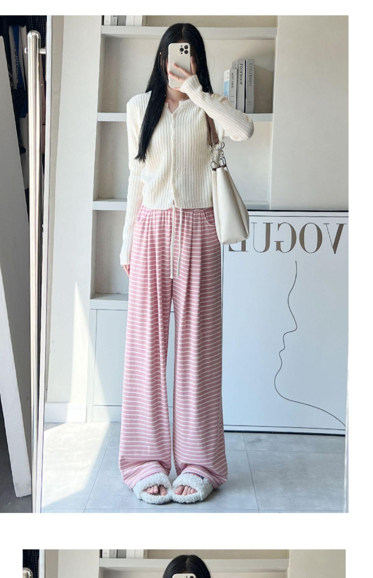 Pantalones de Caminar de Verano 2025 para Mujer de Pierna Ancha a Rayas Grises, Nuevos, de Cintura Alta, Pierna Recta, Casuales, Sueltos, Sensación Relajada y Perezosa