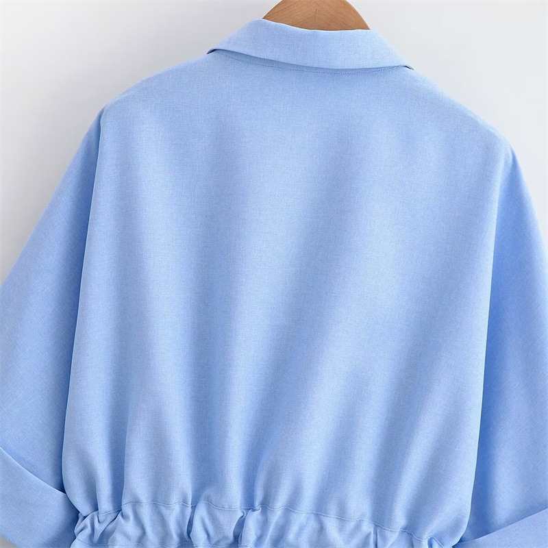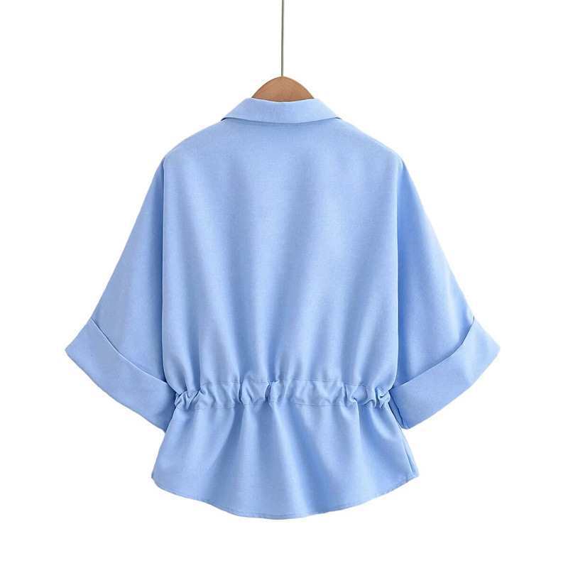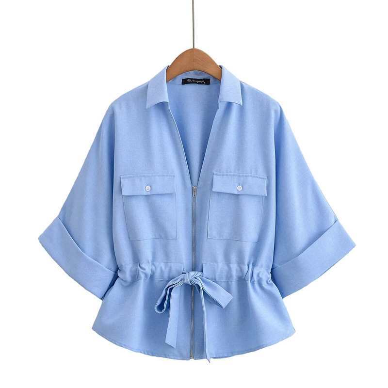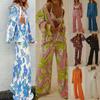 Pantalones Largos de Verano de Comercio Exterior Manga Larga Tops Casuales de Moda Casual Estilo Europeo y Americano Solapa Suelta para Mujer Estilo Nuevo