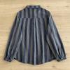 Camisa de Algodón de Doble Capa a Rayas de Manga Larga para Mujer Holgada Otoño 2024 Nueva Versátil Artística Algodón Puro Suave