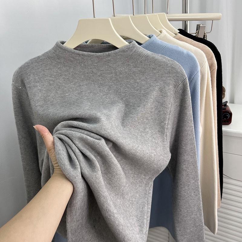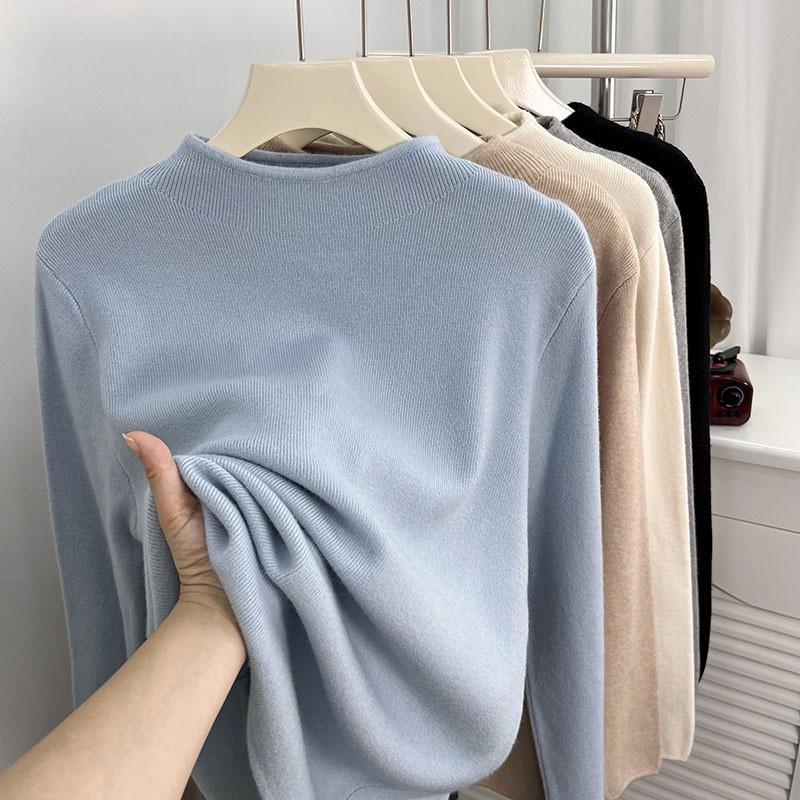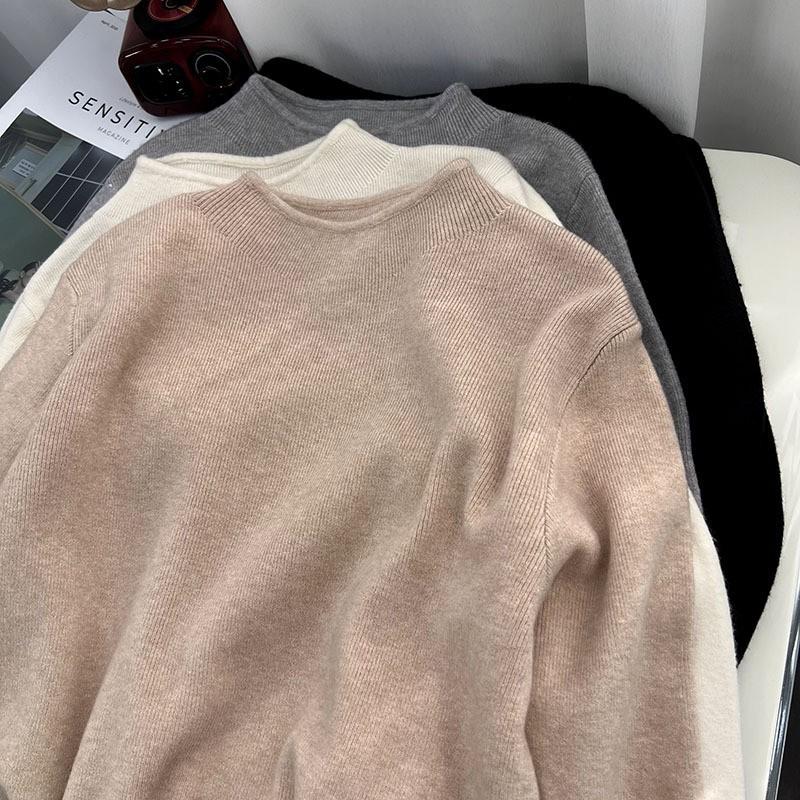 Suéter de punto con cuello alto y suave cachemira para mujer, suéter de otoño e invierno con base de color liso suave.