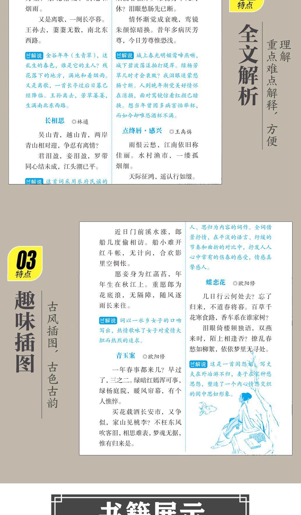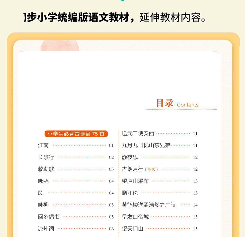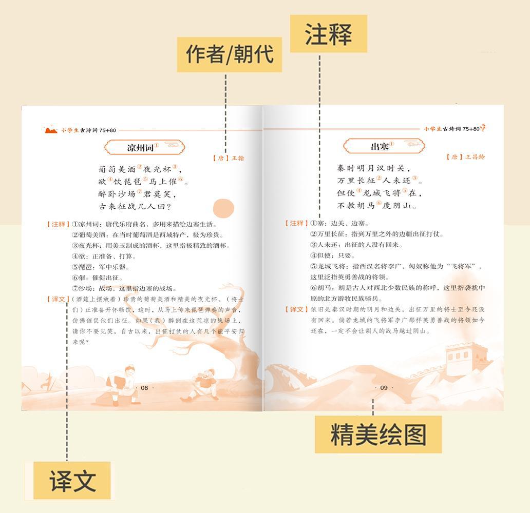 Los estudiantes de primaria deben memorizar 75+80 poemas clásicos Texto completo Traducción y anotación Sincronizado con libro de texto de lengua Expansión extracurricular Song Ci