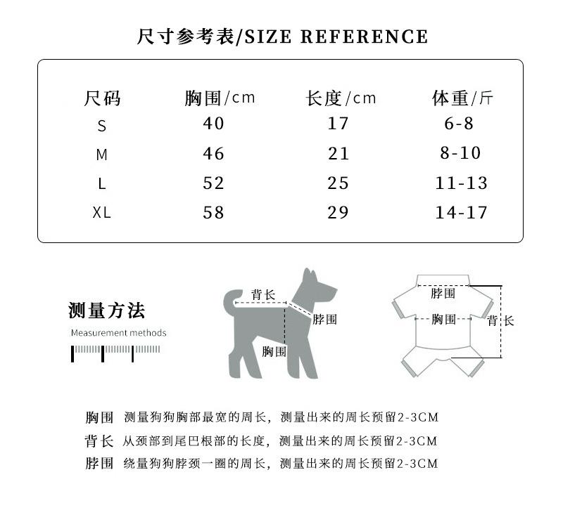 Tamaño del empaque de ropa para perro: 20*25CM*2CM Peso M:0.055KG