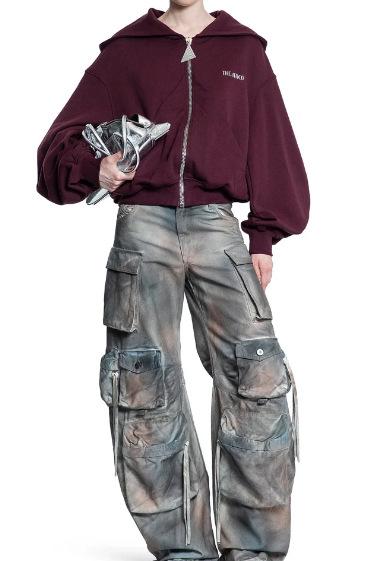 Otoño/Invierno 2025 Estilo Europeo y Americano Sudadera Casual Suelta con Capucha y Cremallera Manga Larga Moda Individual Bordado de Letras