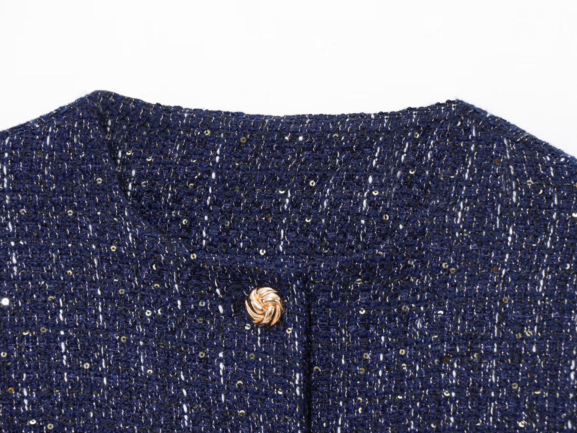 Ins Estilo Transfronterizo Europeo y Americano 2025 Nuevo Estilo Otoño e Invierno Cuello Redondo Estilo Pequeño Fragante Chaqueta Corta para Mujer Tweed Francés