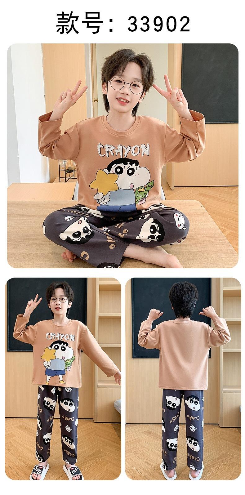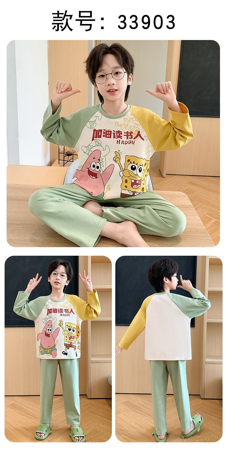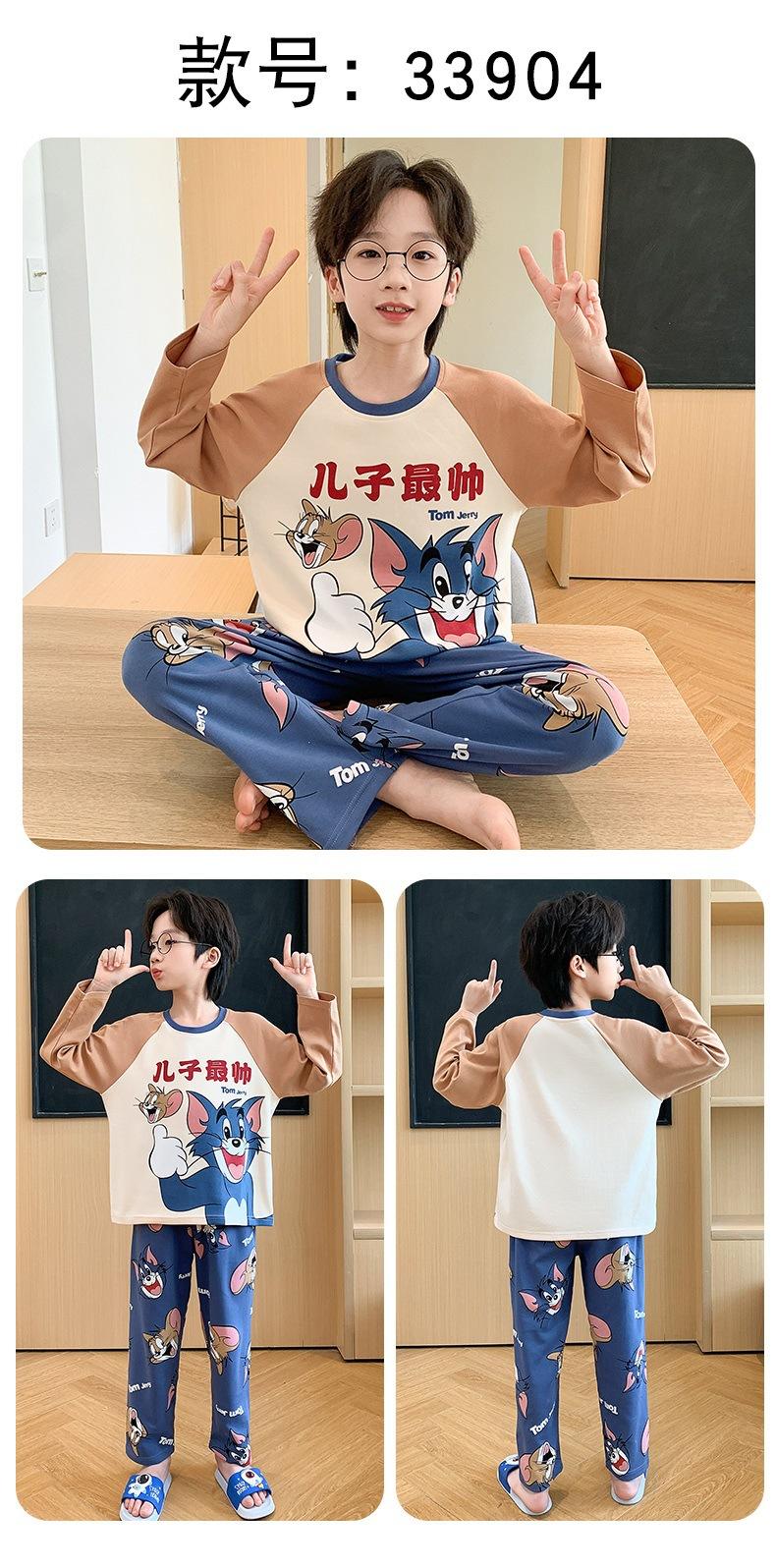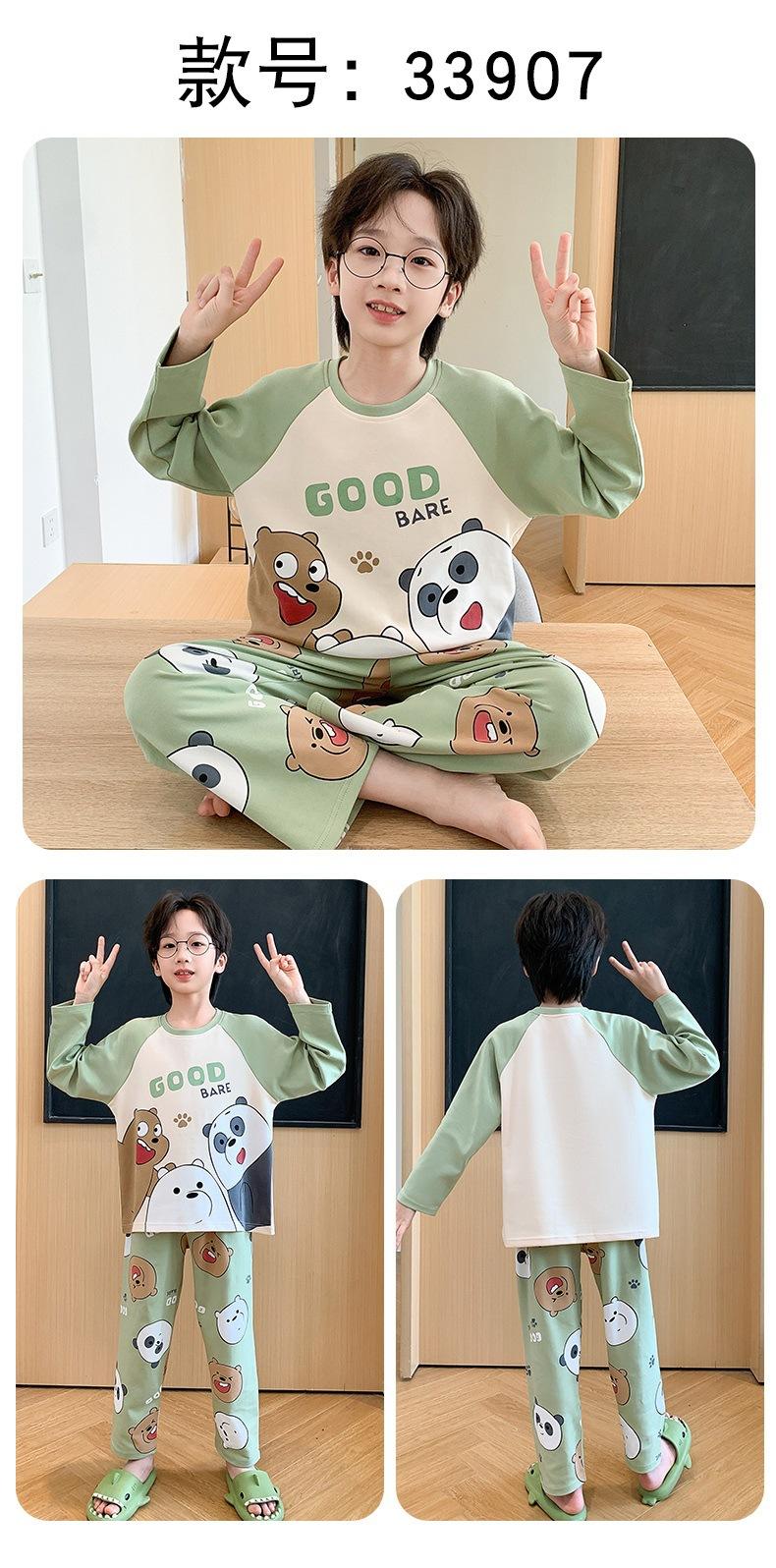 Pijamas para niños de algodón puro de manga larga estilo delgado temporada de primavera y otoño niños medianos y grandes dibujos animados bebé adolescentes ropa para el hogar venta al por mayor