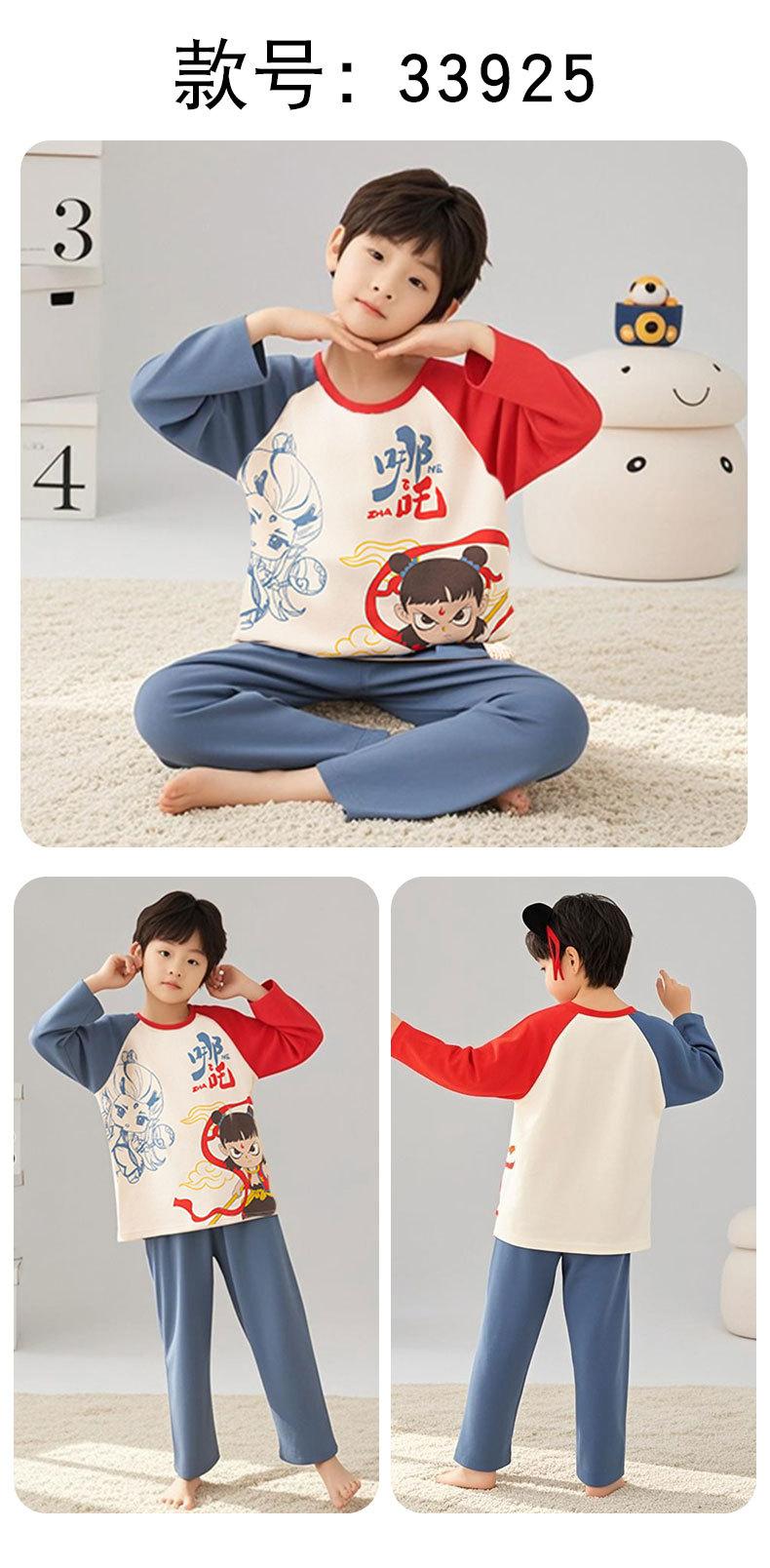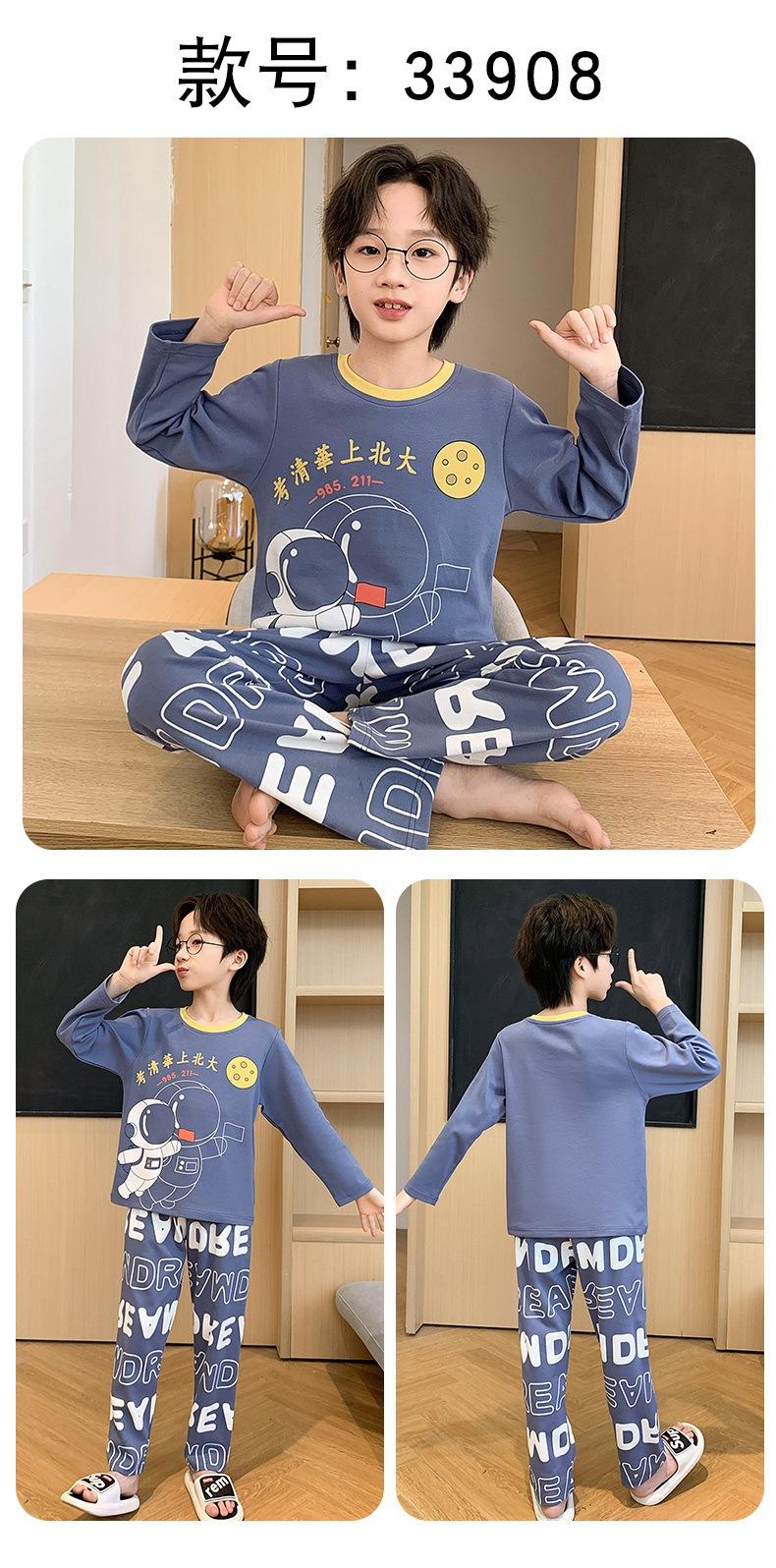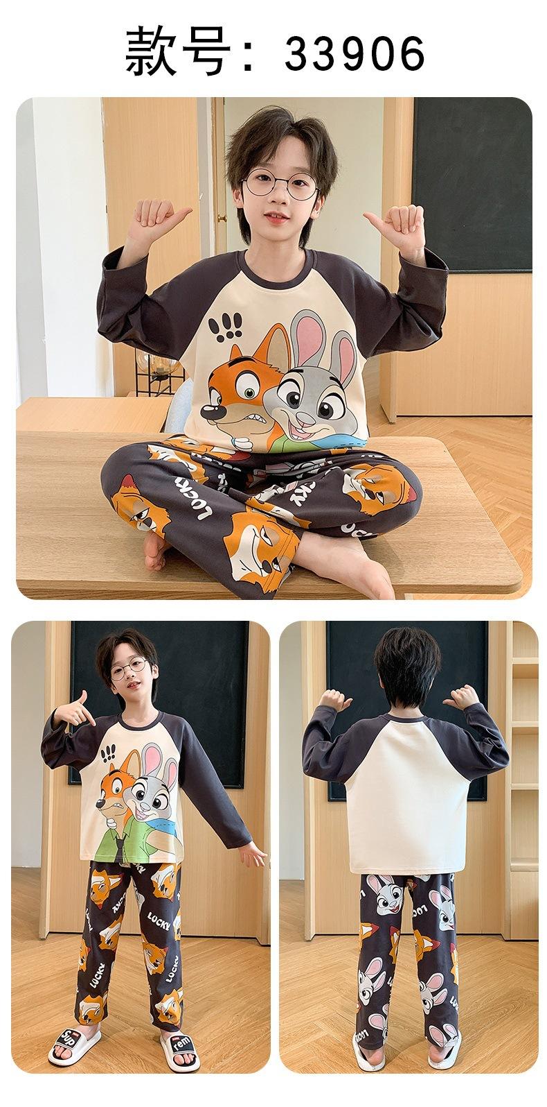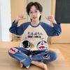 Pijamas para niños de algodón puro de manga larga estilo delgado temporada de primavera y otoño niños medianos y grandes dibujos animados bebé adolescentes ropa para el hogar venta al por mayor