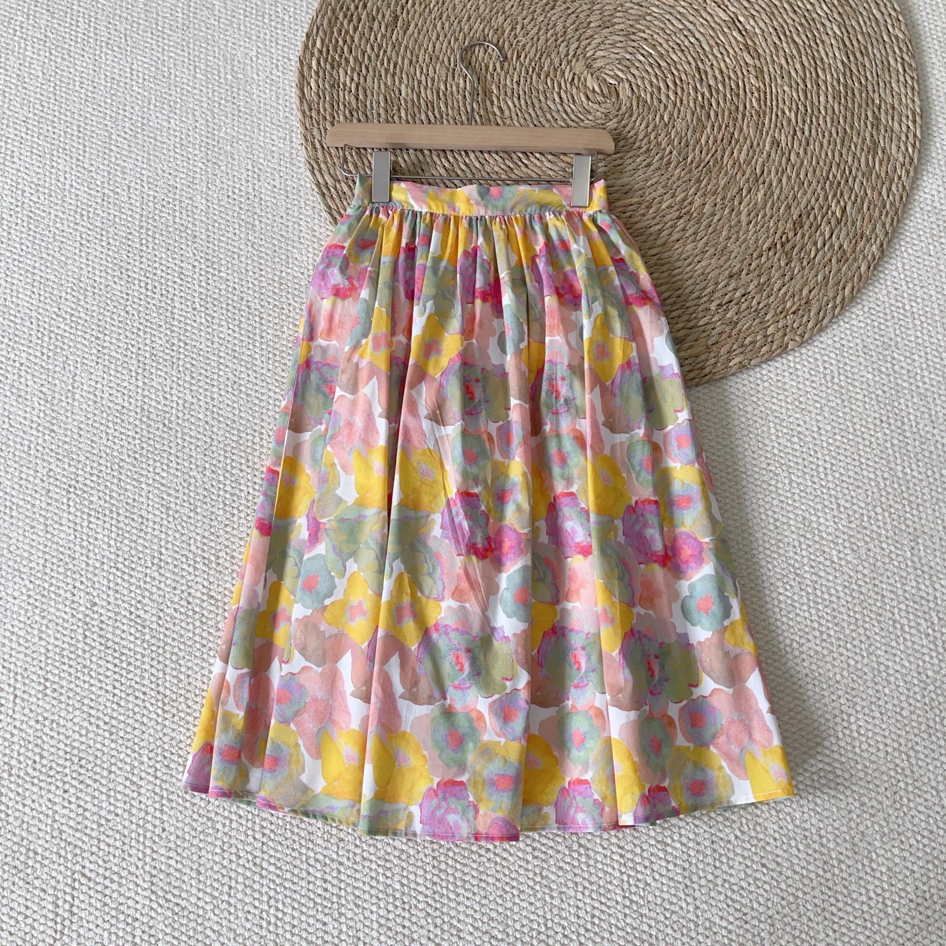 Estilo Vacacional Falda de Verano para Mujer Pintura al Óleo Floral Cintura Alta Casual Adelgazante Estilo Suave