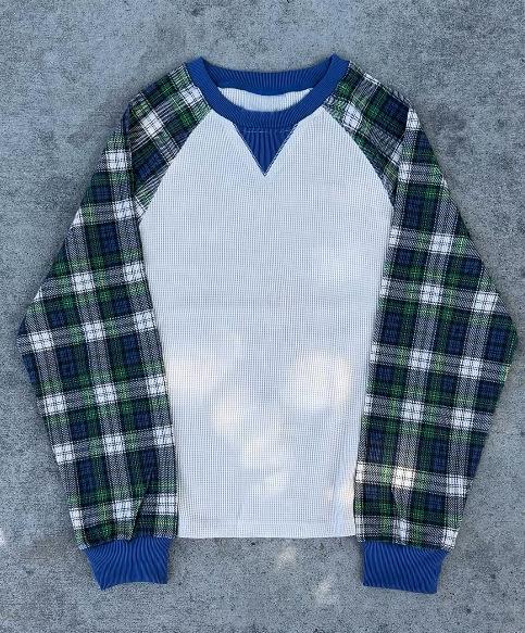 Otoño/Invierno 2025 Nuevo Sudadera Waffle Manga Larga Moda Urbana Americana Jersey Casual Bloque de Color Venta al por Mayor