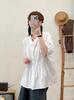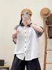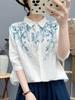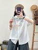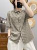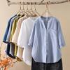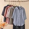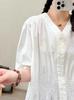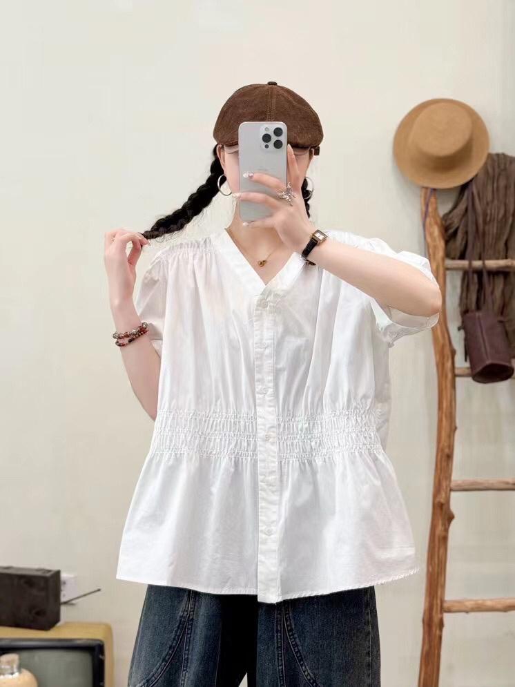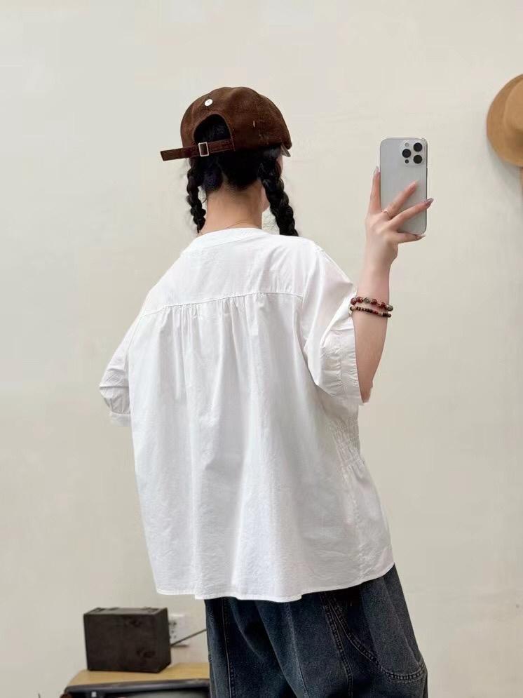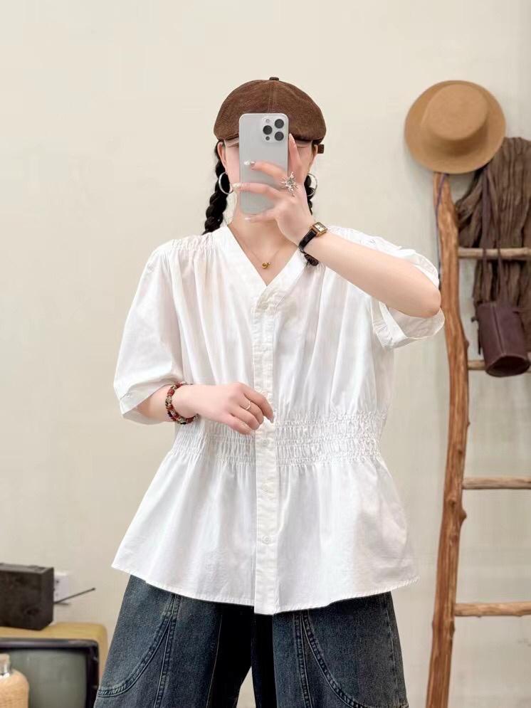 2025 Verano Nuevo Estilo Artístico Suelto Casual Versátil Camisa Manga Corta Top de Mujer Chaqueta Base Cuello V Algodón Puro