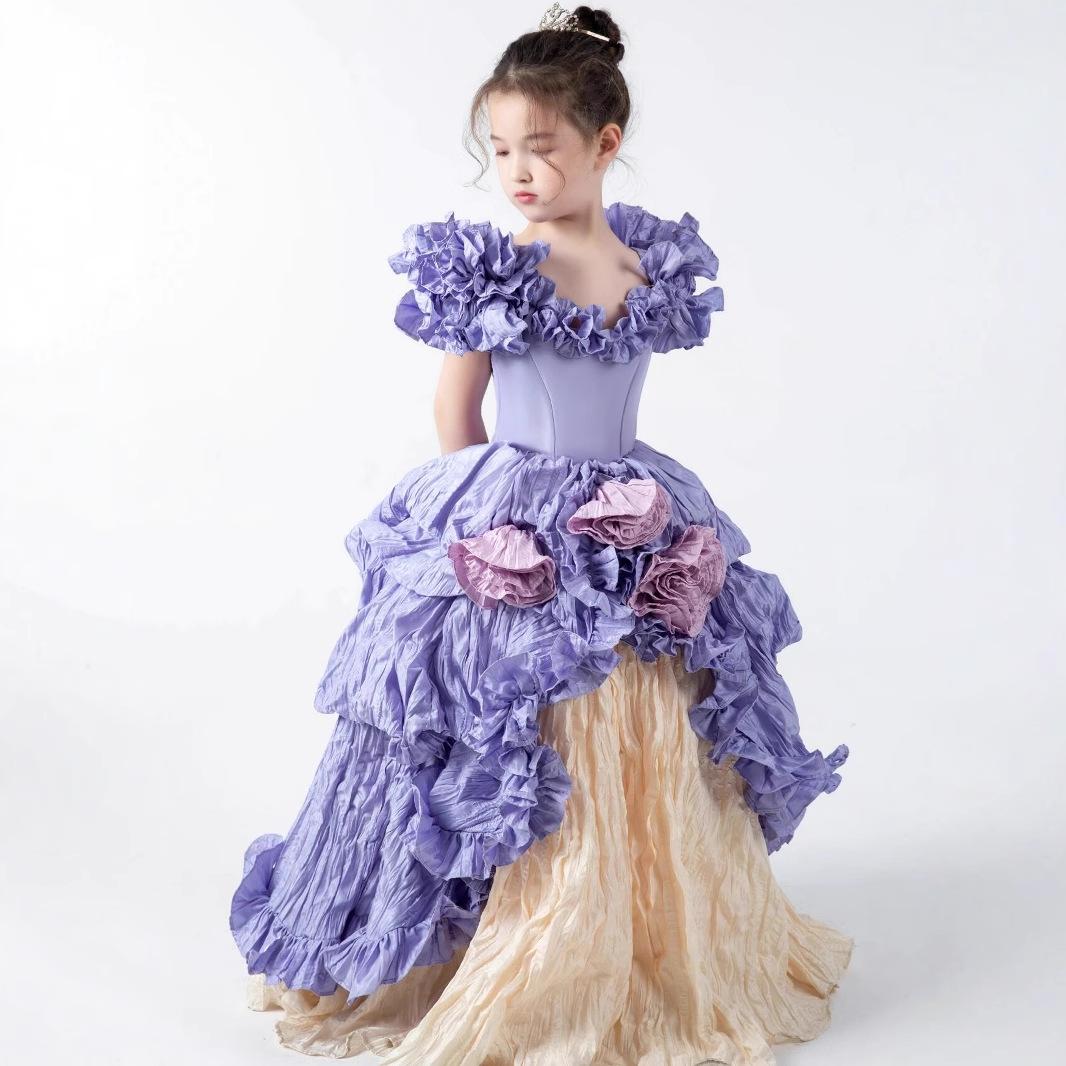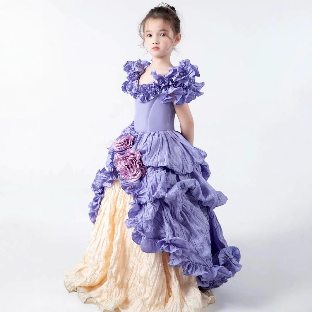 Comercio Exterior Vestido Infantil Estilo Europeo Vestido Clásico de Dama de Honor Actuación Cumpleaños Pasarela Princesa Dulce y Lindo Vestido de Actuación