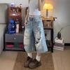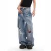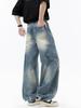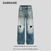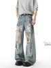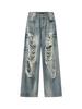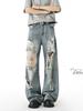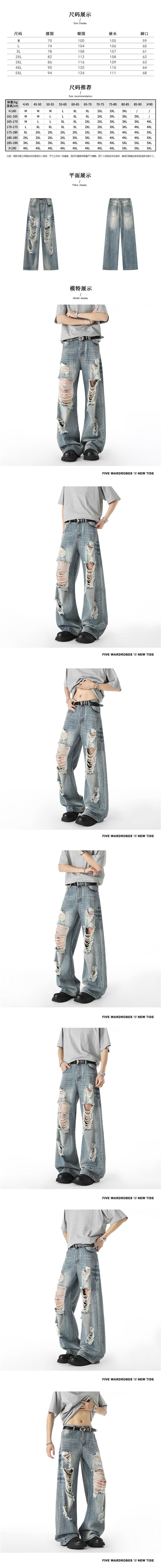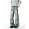 Jeans Lavados Desgastados Rotos de Estilo Americano para Hombre, Verano Delgados Sueltos para Pareja Pantalones de Pierna Ancha, Pantalones Versátiles de Moda Hasta el Piso