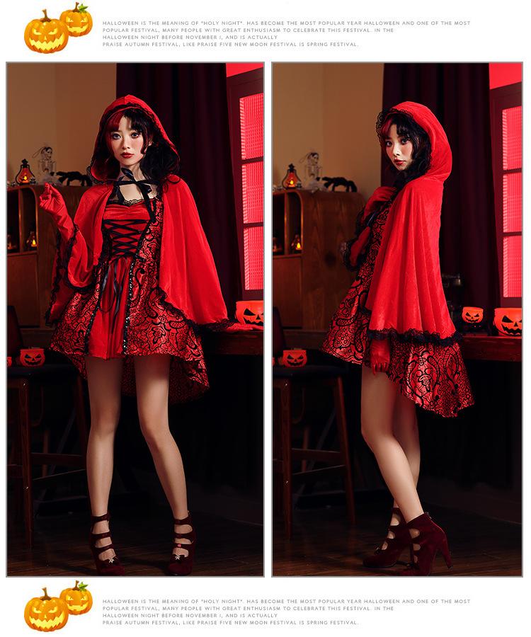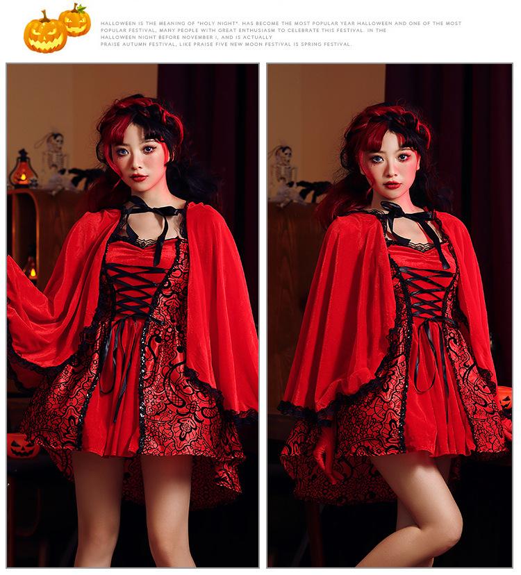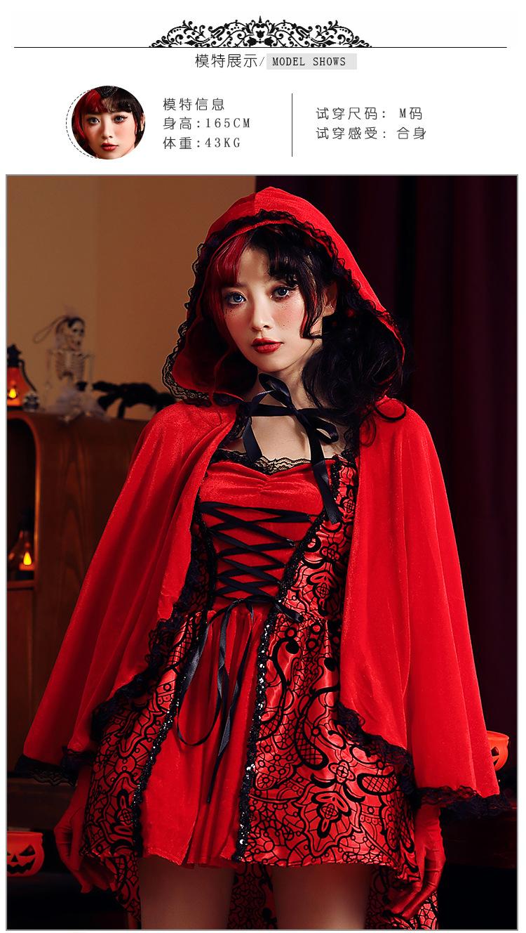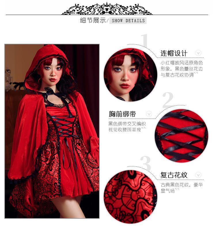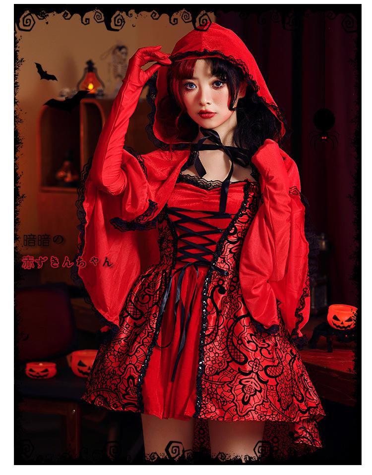 Disfraz de Caperucita Roja de Halloween estilo gótico para club nocturno, disfraz de Reina, cuento de hadas, cosplay de Caperucita Roja, falda para escenario