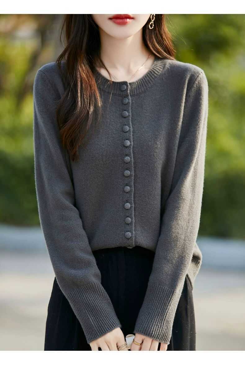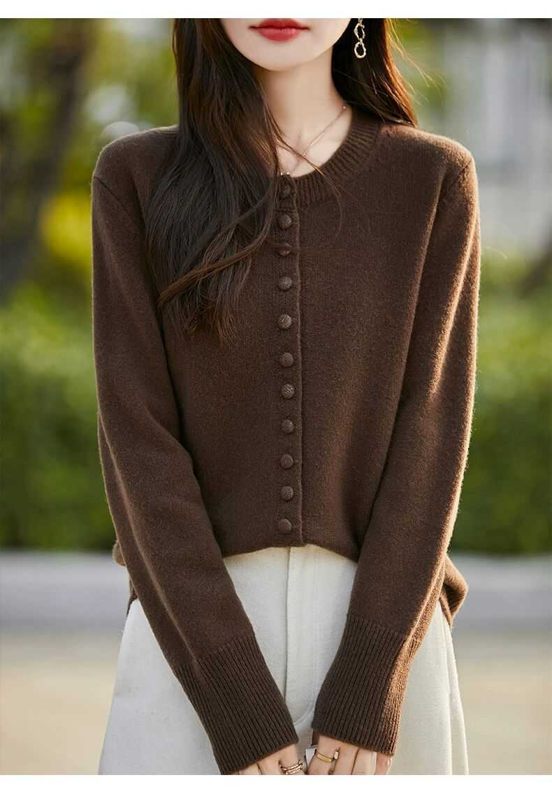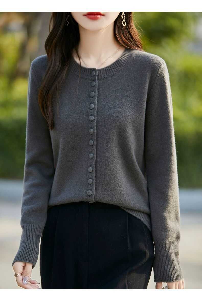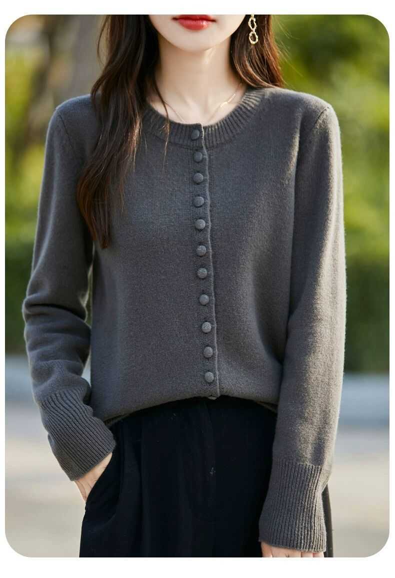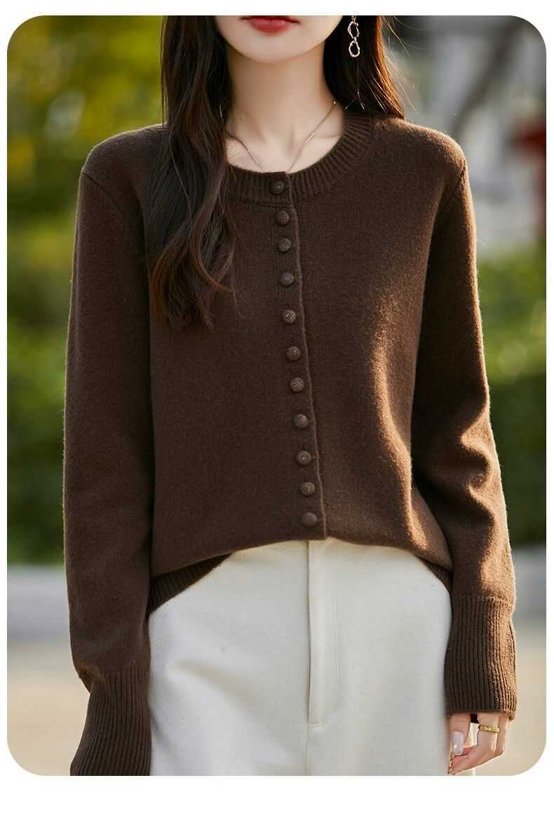 Cárdigan de Punto Versátil para Mujer con Cuello Redondo Nuevo Otoño 2025, Abrigo Suéter Holgado Adelgazante que Combina con Todo