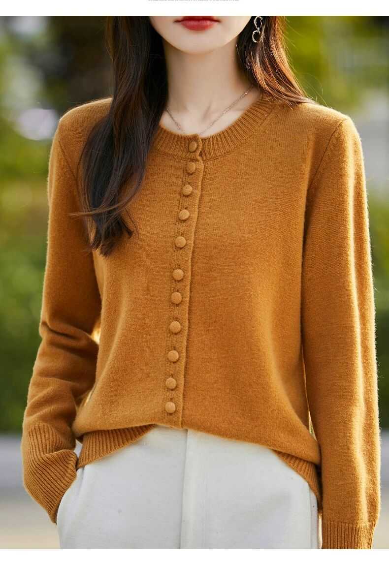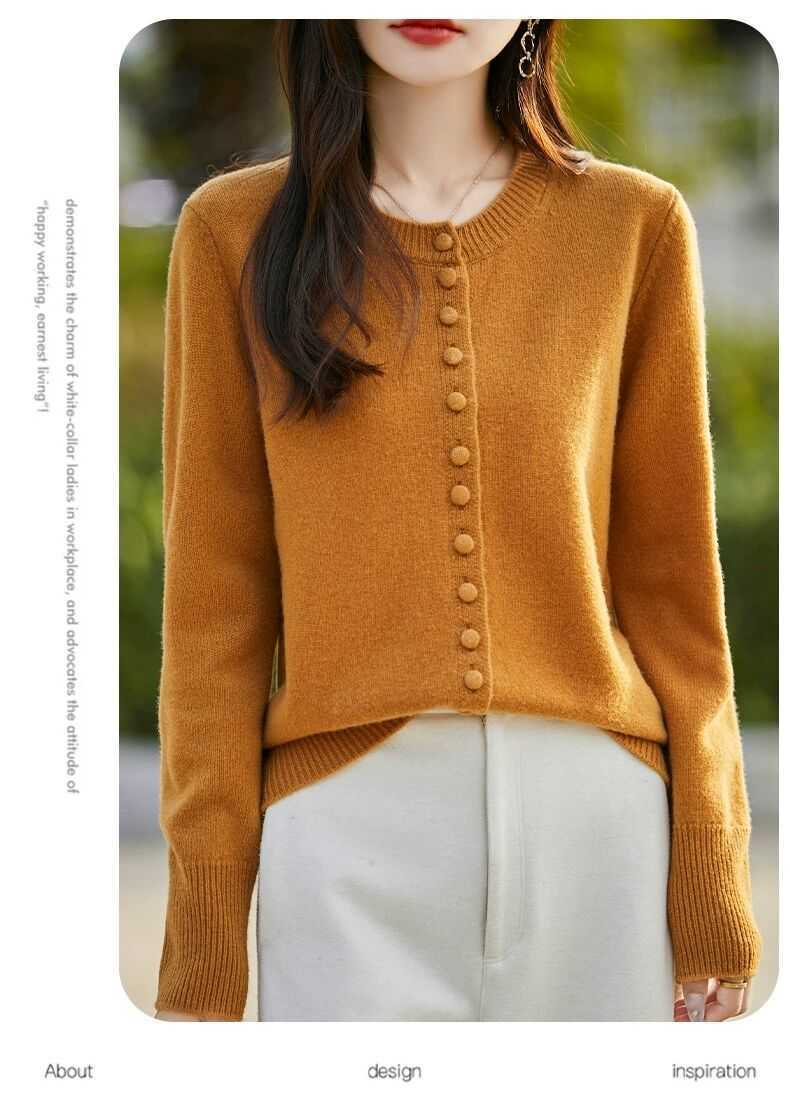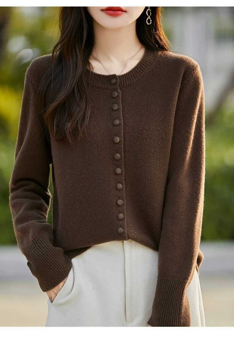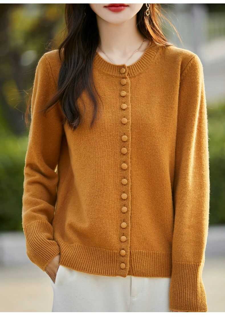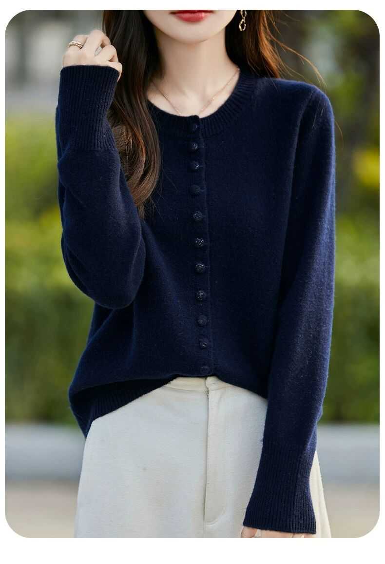 Cárdigan de Punto Versátil para Mujer con Cuello Redondo Nuevo Otoño 2025, Abrigo Suéter Holgado Adelgazante que Combina con Todo