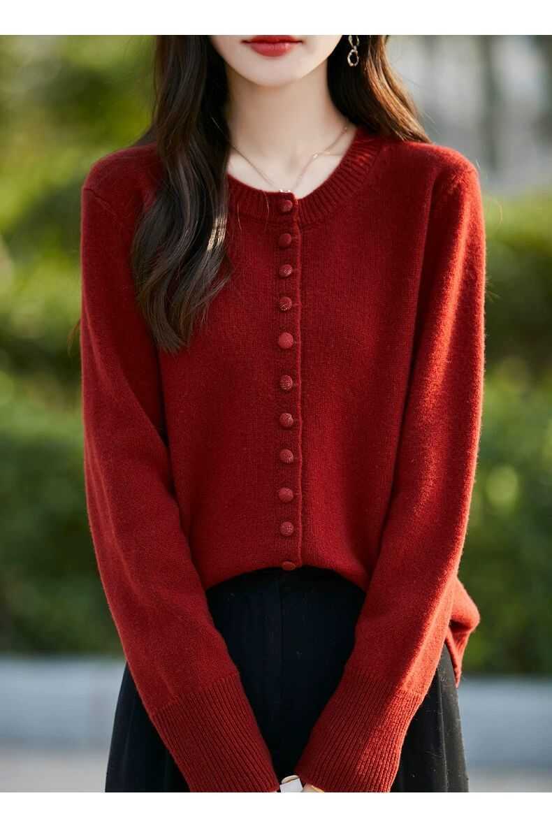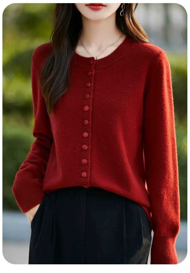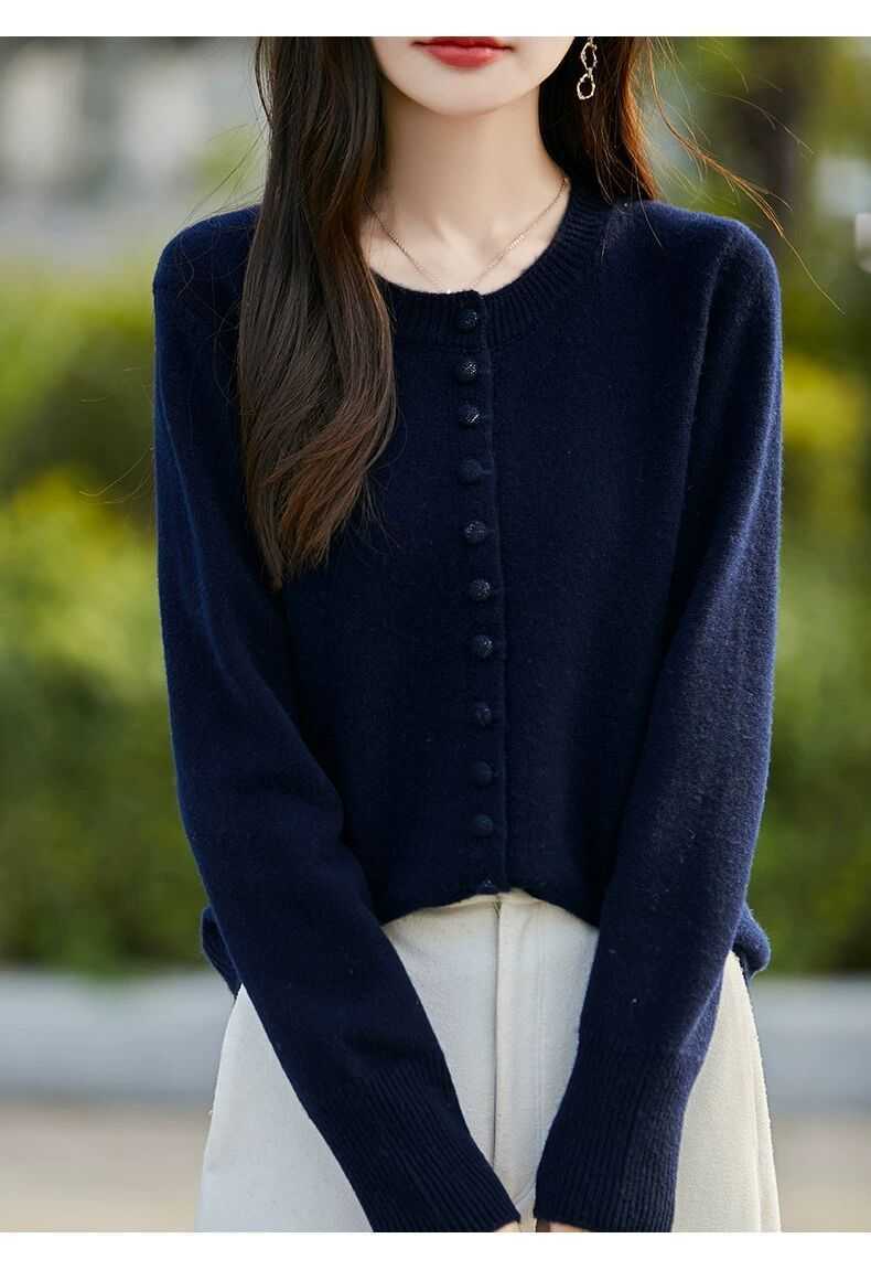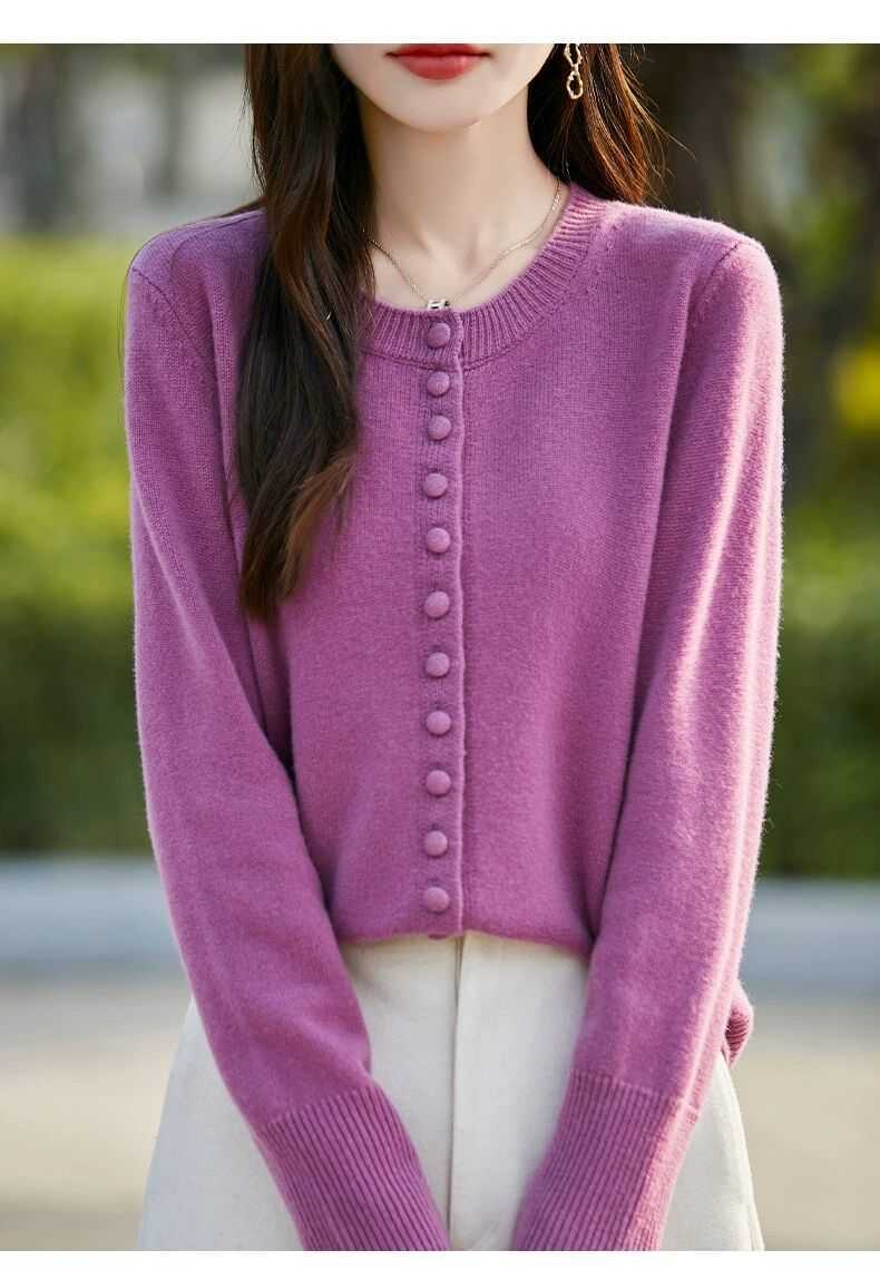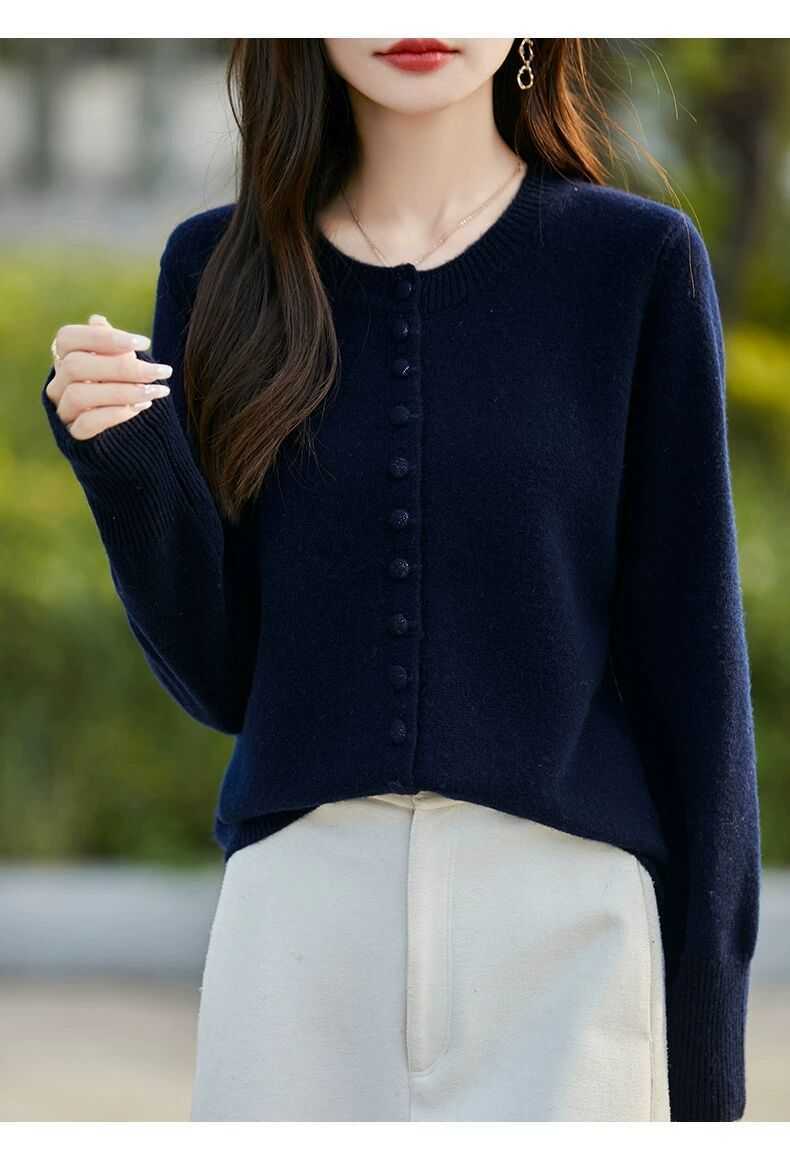 Cárdigan de Punto Versátil para Mujer con Cuello Redondo Nuevo Otoño 2025, Abrigo Suéter Holgado Adelgazante que Combina con Todo