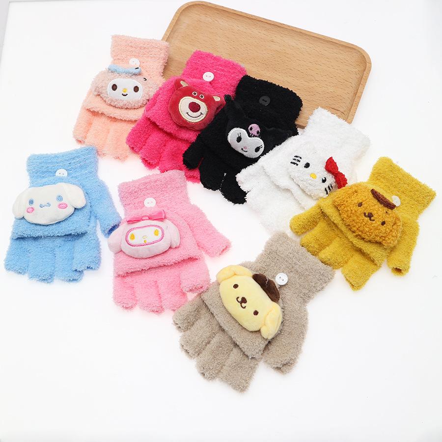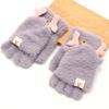 Guantes Flip Estilo Coreano Invierno Escritura Mecanografía Dibujos Animados Lindo Grueso Forrado de vellón Exterior Para Hombre y Mujer Medio Dedo y Medio Dedo