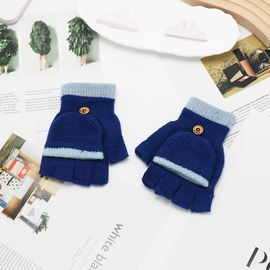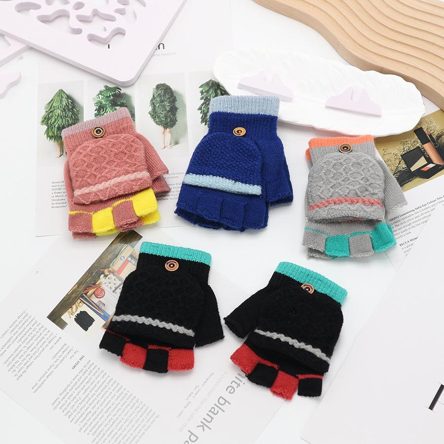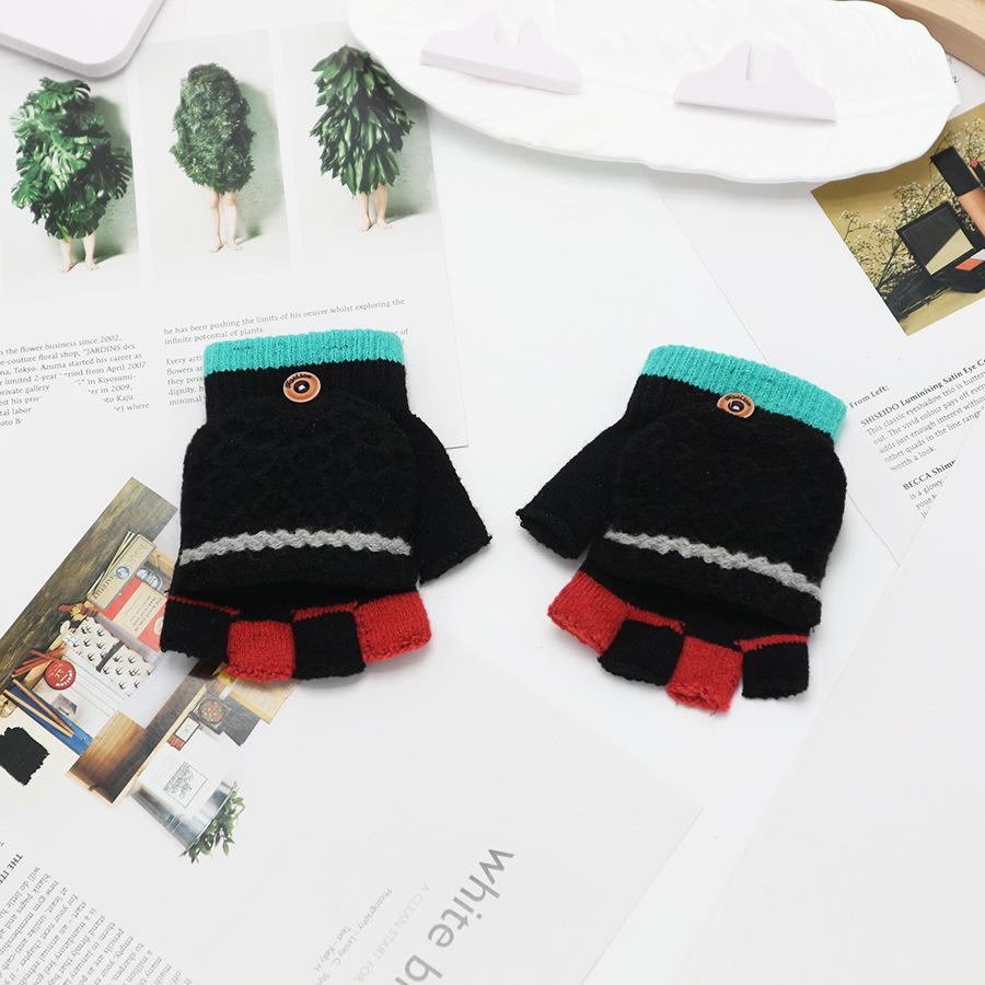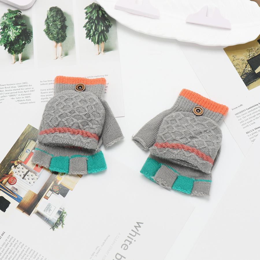 Guantes coreanos de estilo transfronterizo con solapa de medio dedo para invierno para mujer, lindos, forrados de vellón, a prueba de frío, cálidos, de lana tejida, para otoño e invierno, de dedo exacto