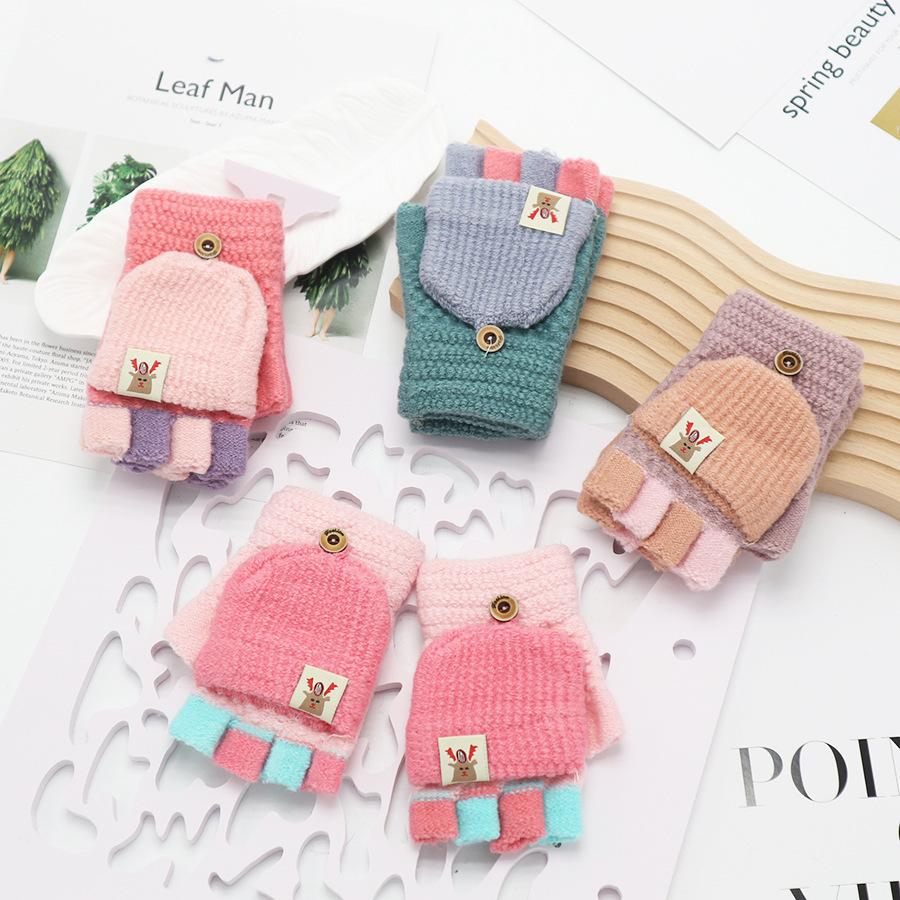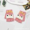 Guantes de invierno para niños, de medio dedo, con solapa, para niños, niñas y estudiantes, bonitos guantes cálidos de felpa con dibujos animados.