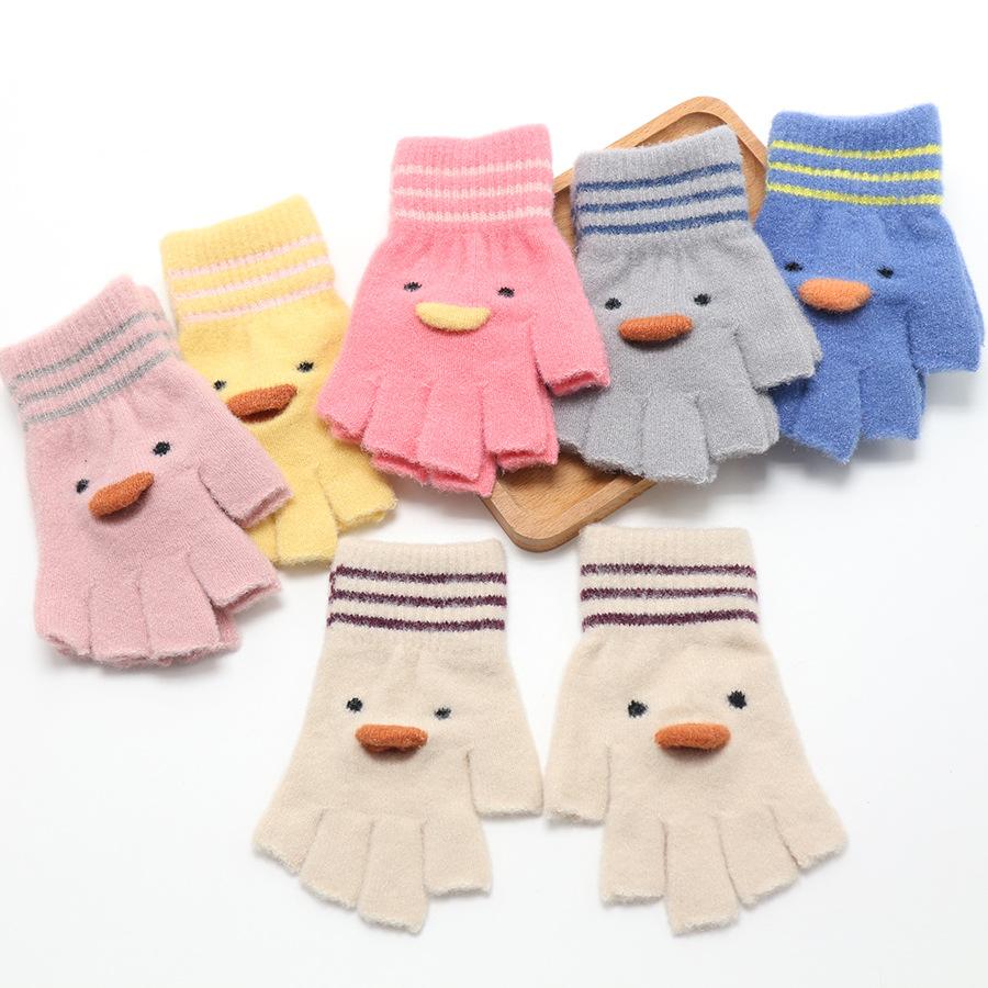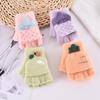 Guantes de medio dedo para niños, de invierno, para bebés, niñas y niños, cálidos, forrados con vellón, bonitos, de doble uso, con dibujos animados para niños.
