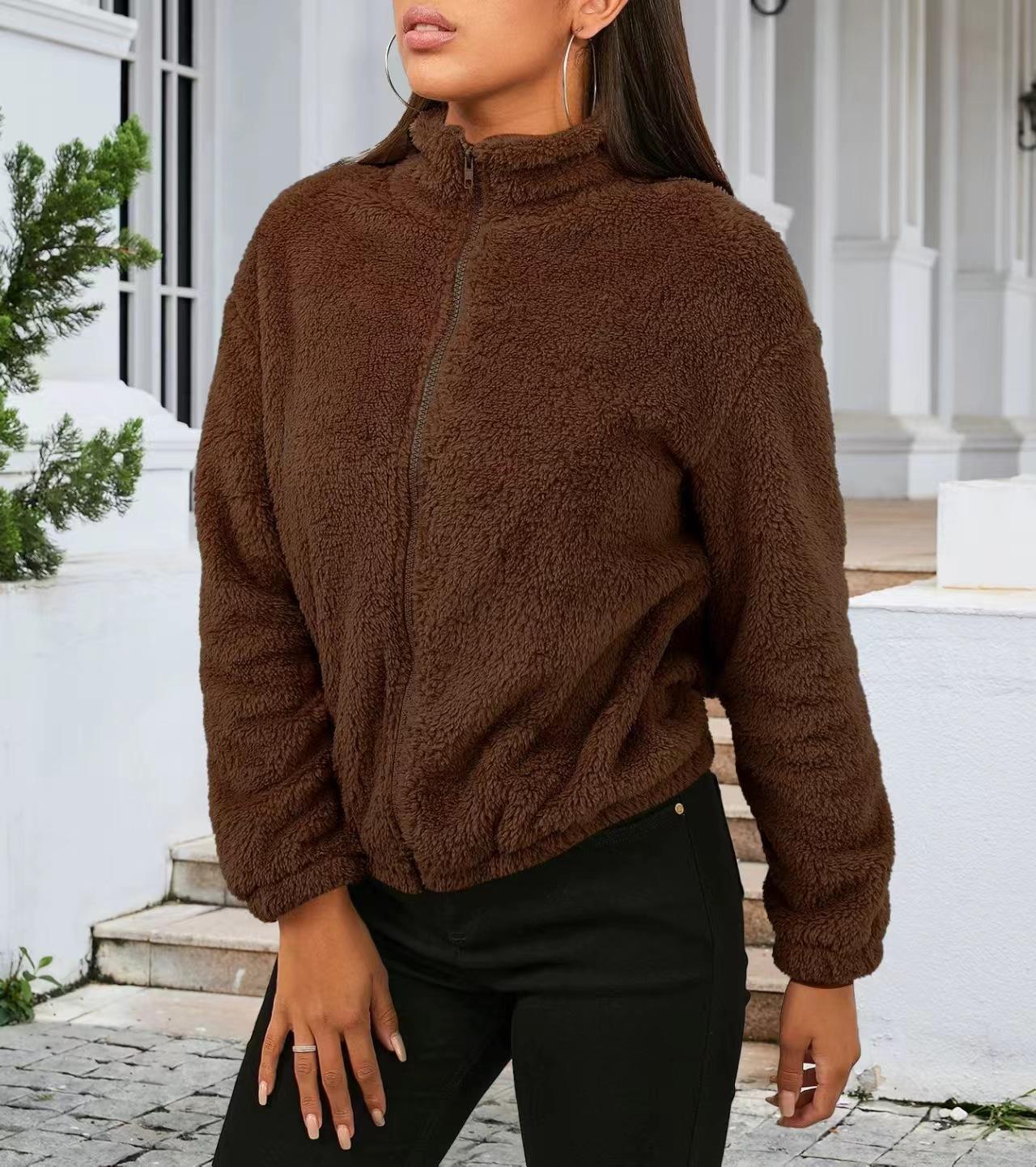 Abrigo Amazon Fashion 2025 para Mujer Europeo y Americano Invierno Nuevo Manga Larga Felpa Suelto Cálido Cárdigan