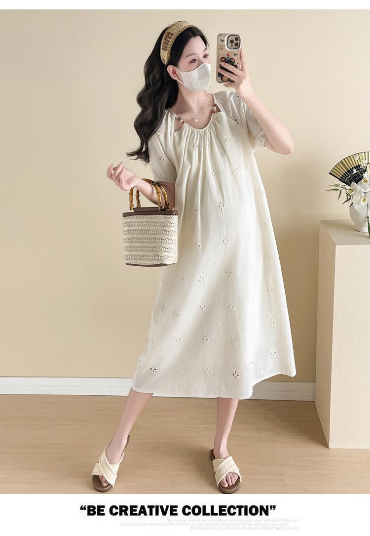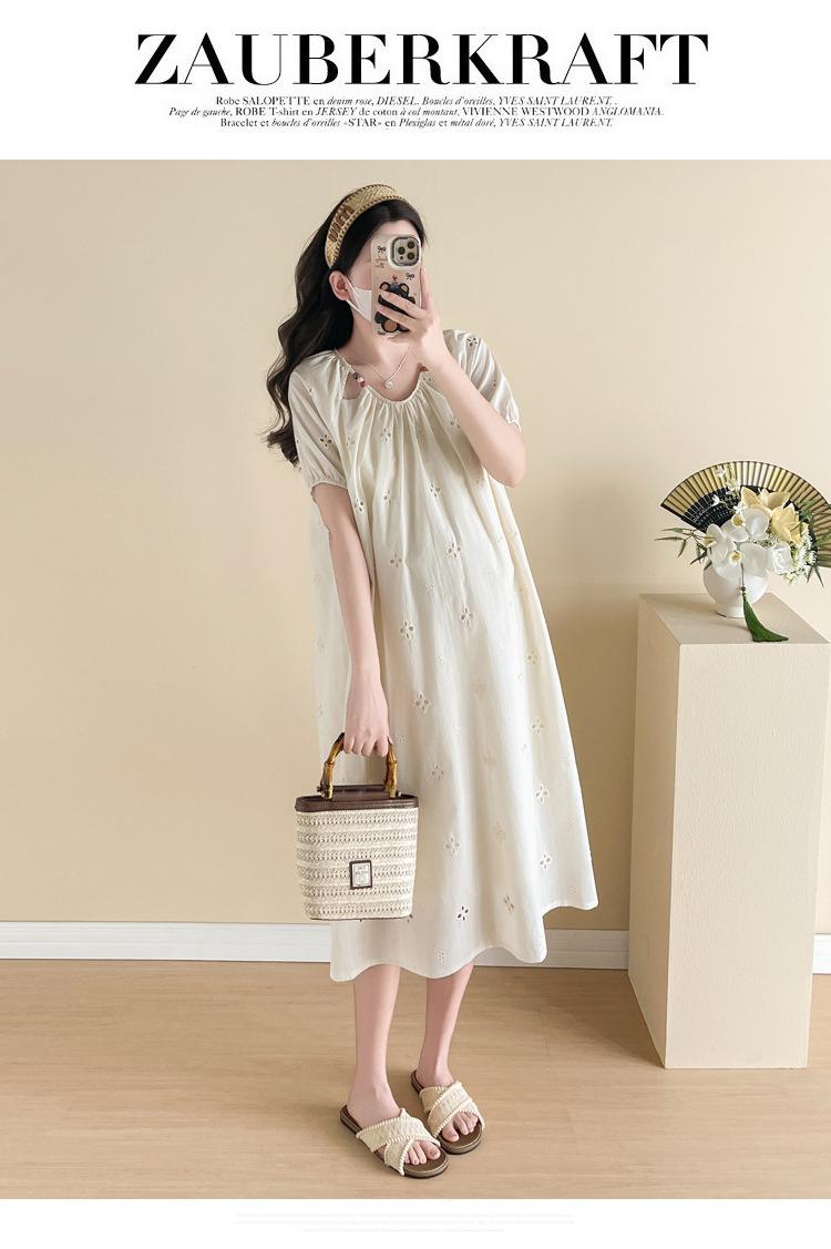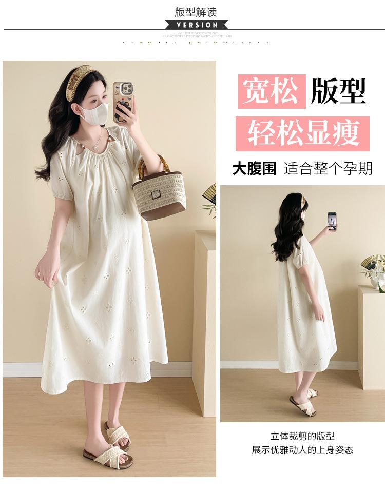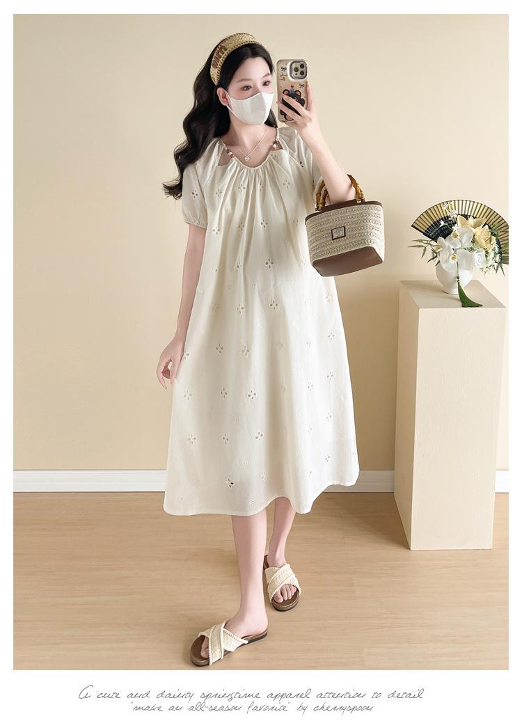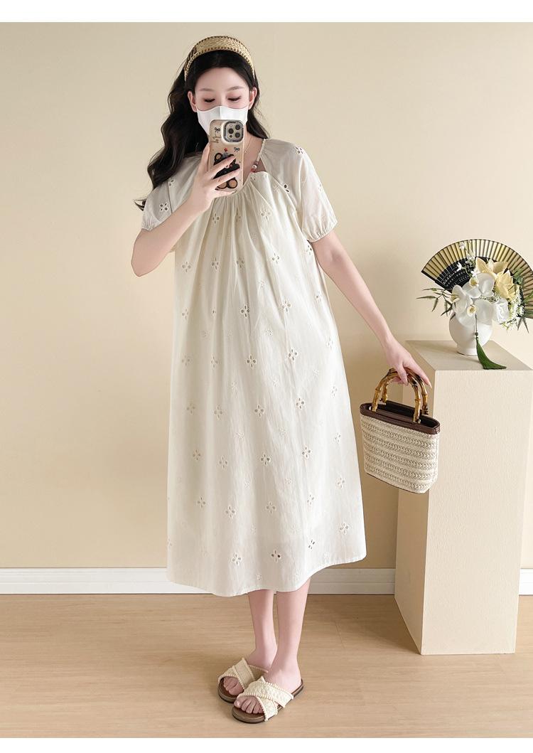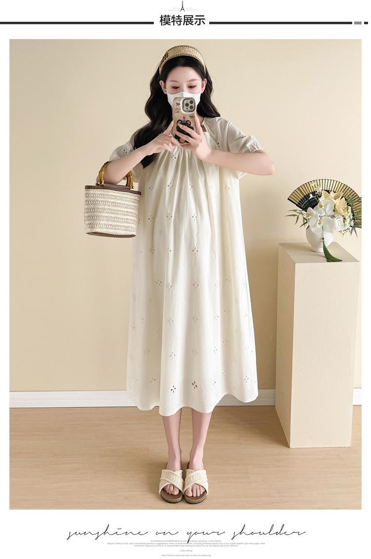 Ropa de Maternidad 2025 Verano Nuevo Estilo Coreano Suelto y Dulce Calado Bordado Talla Grande Vestido de Maternidad