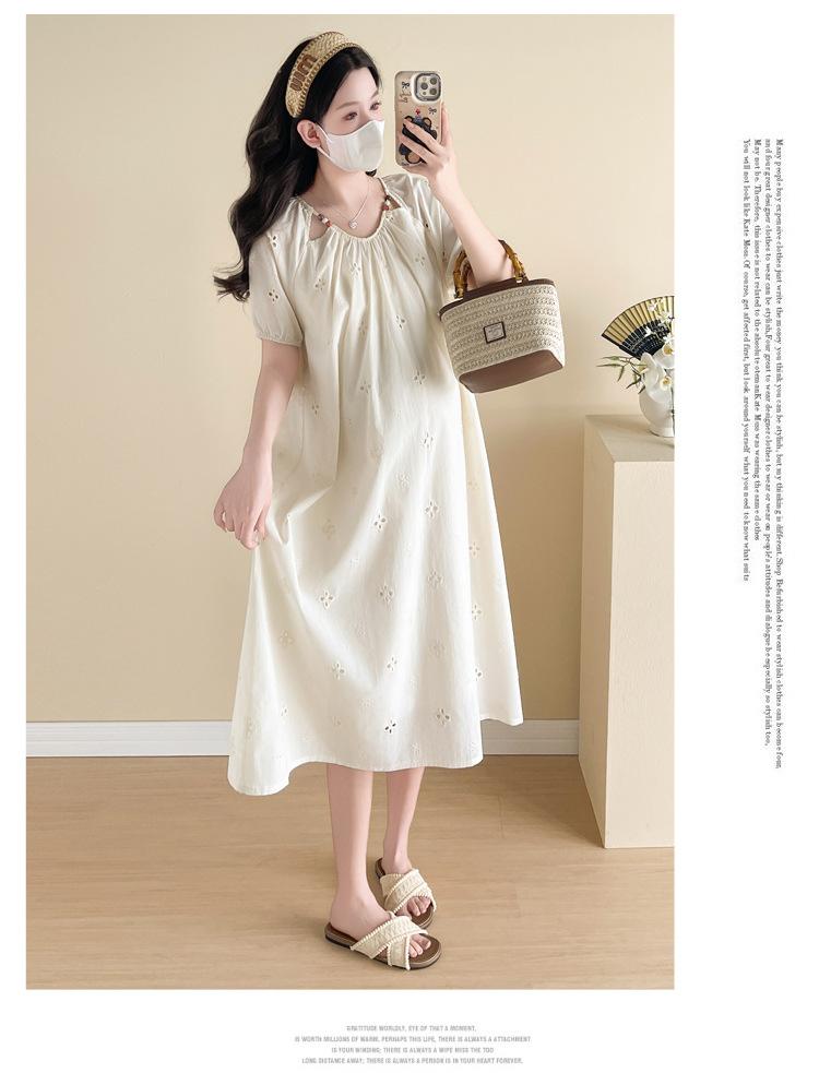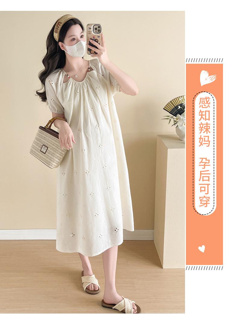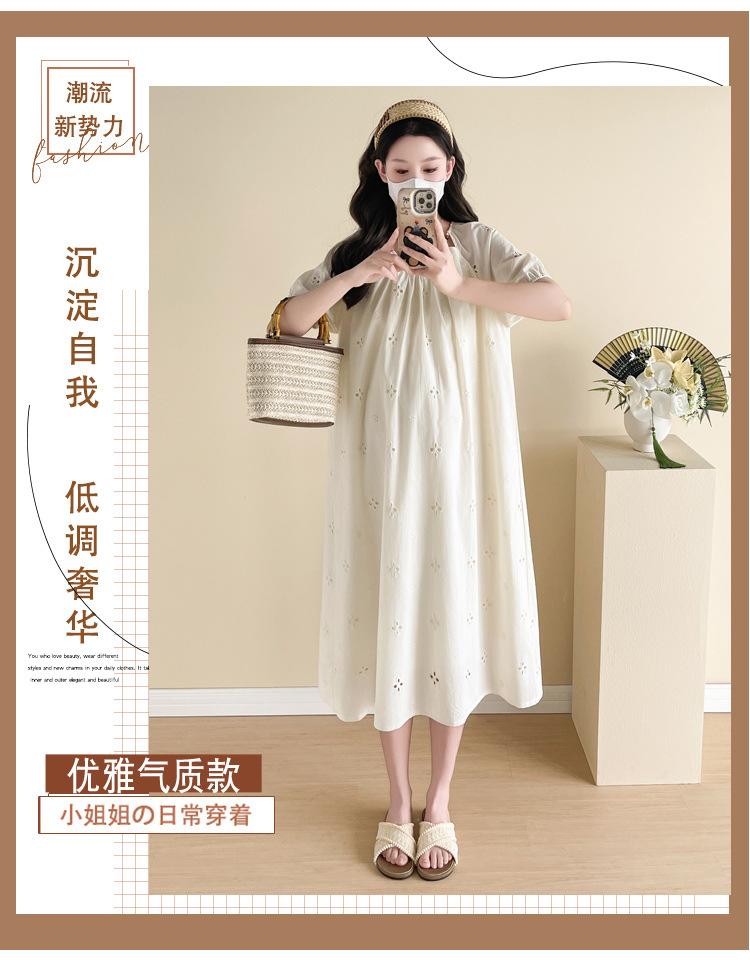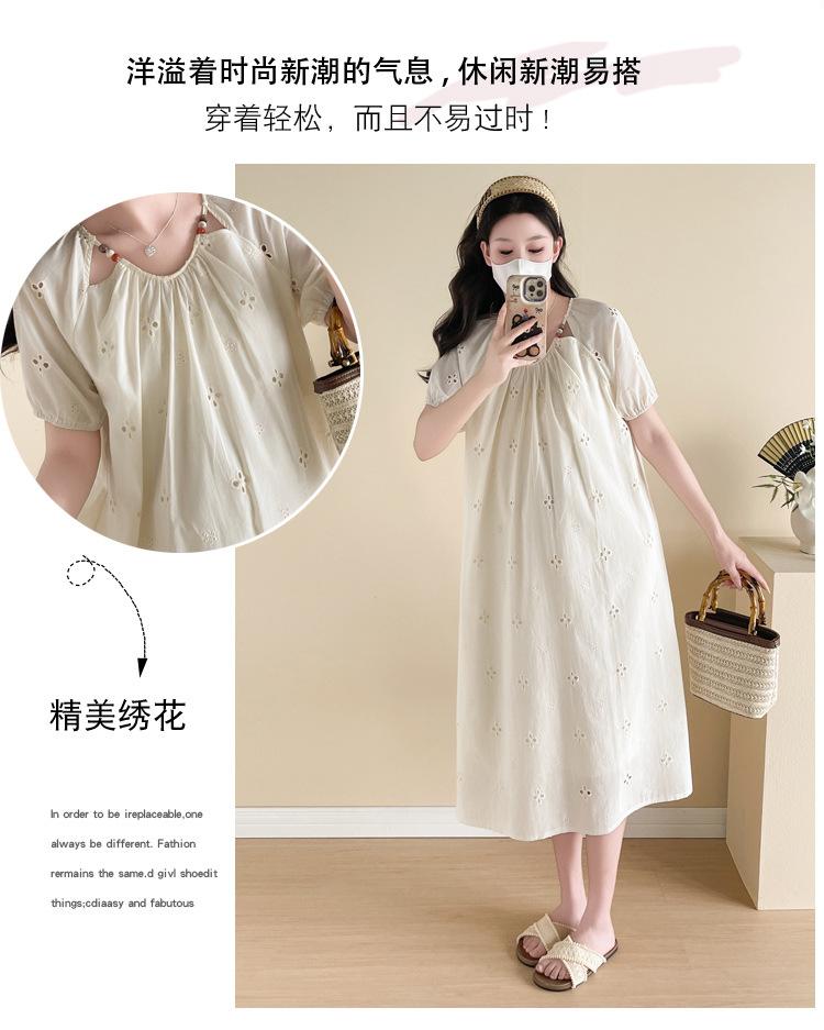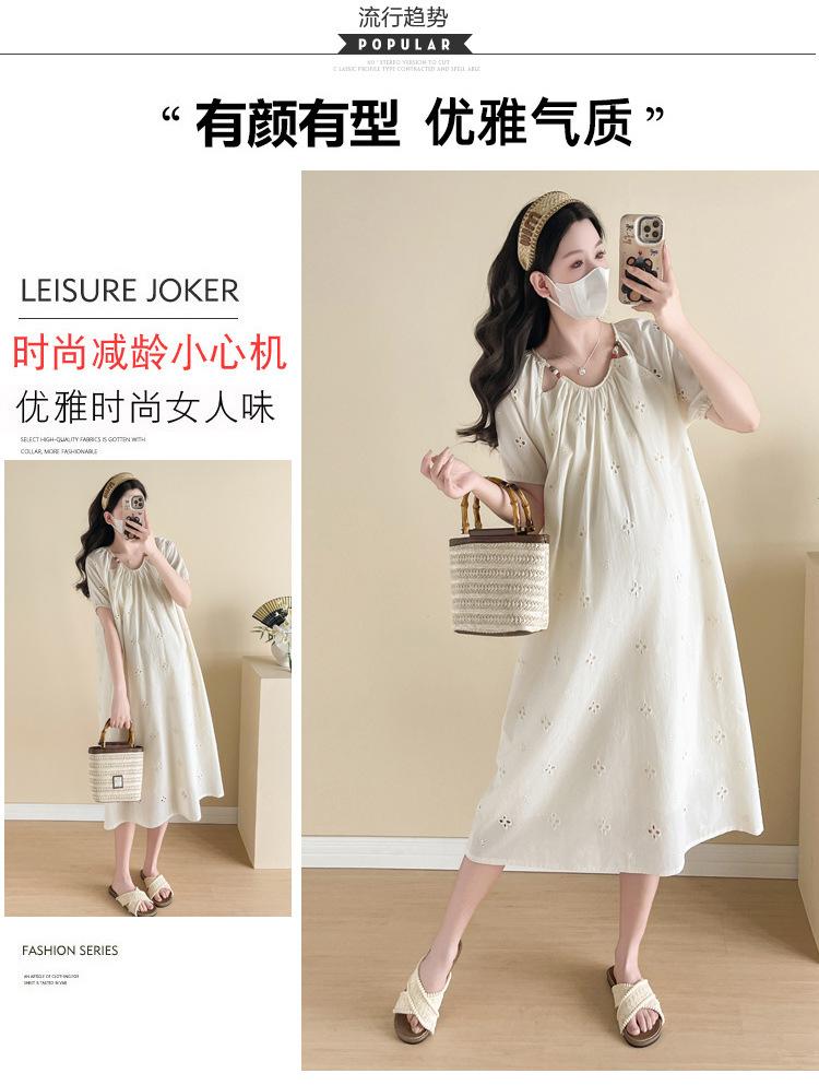 Ropa de Maternidad 2025 Verano Nuevo Estilo Coreano Suelto y Dulce Calado Bordado Talla Grande Vestido de Maternidad