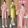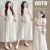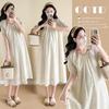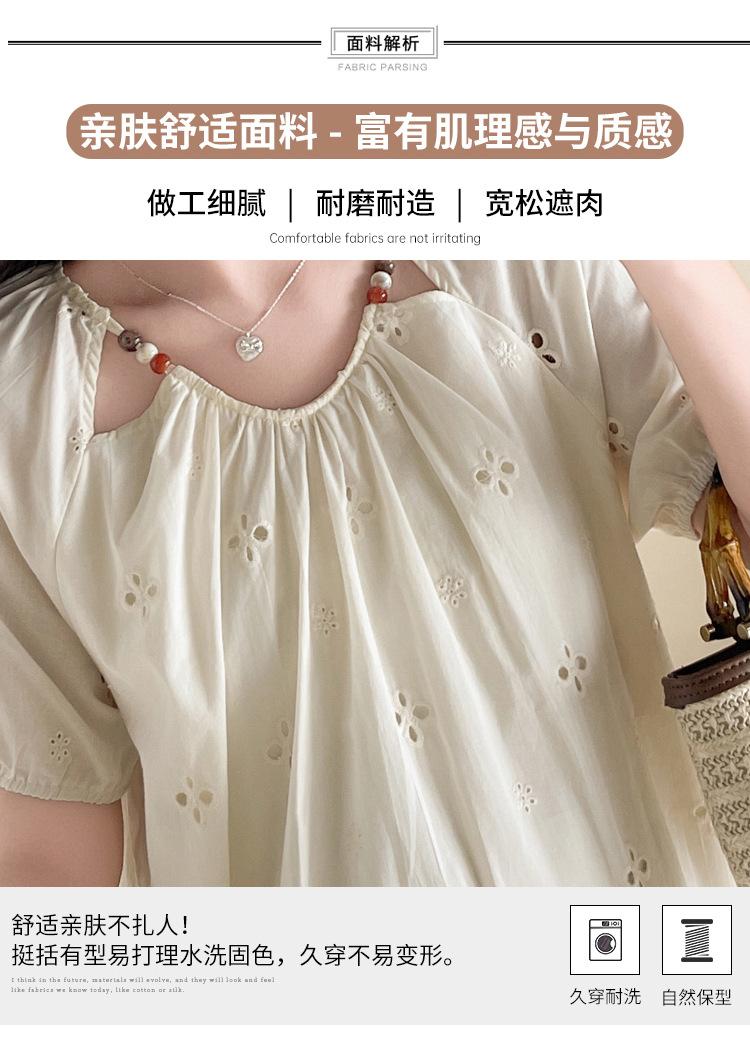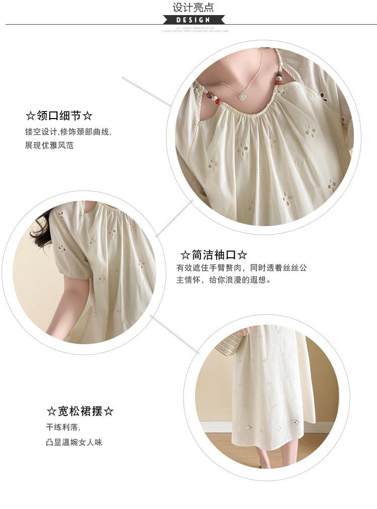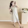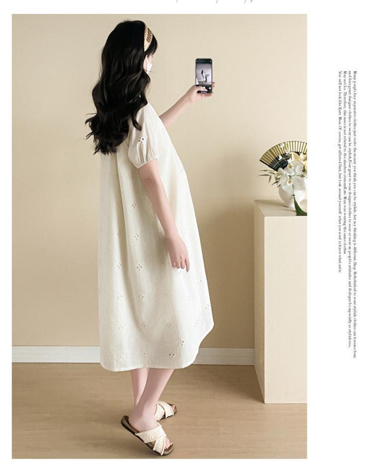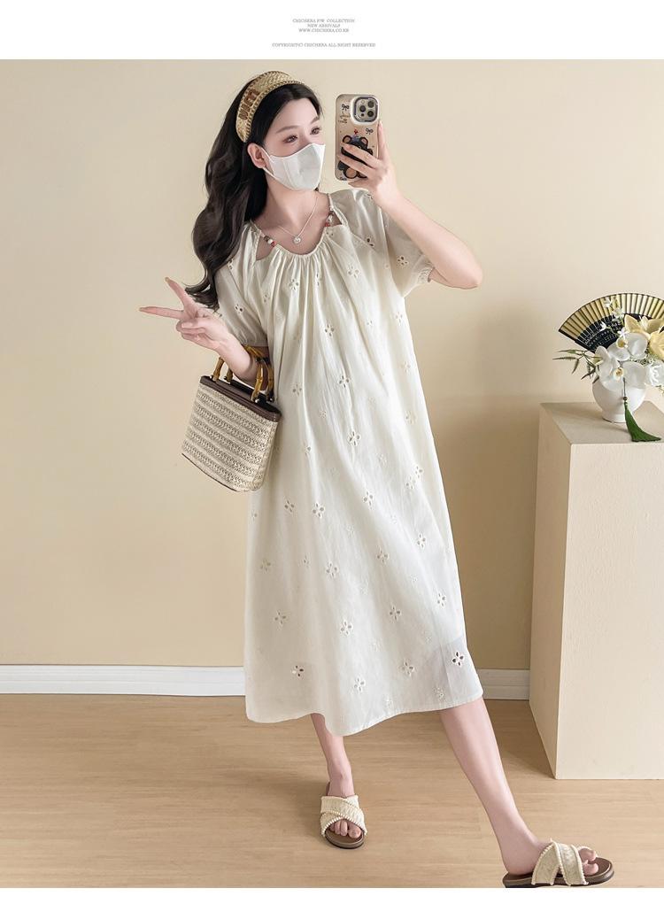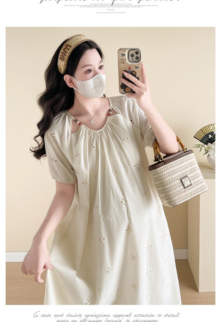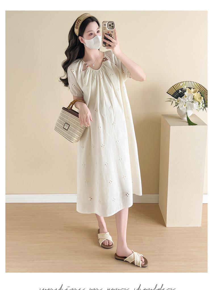 Ropa de Maternidad 2025 Verano Nuevo Estilo Coreano Suelto y Dulce Calado Bordado Talla Grande Vestido de Maternidad
