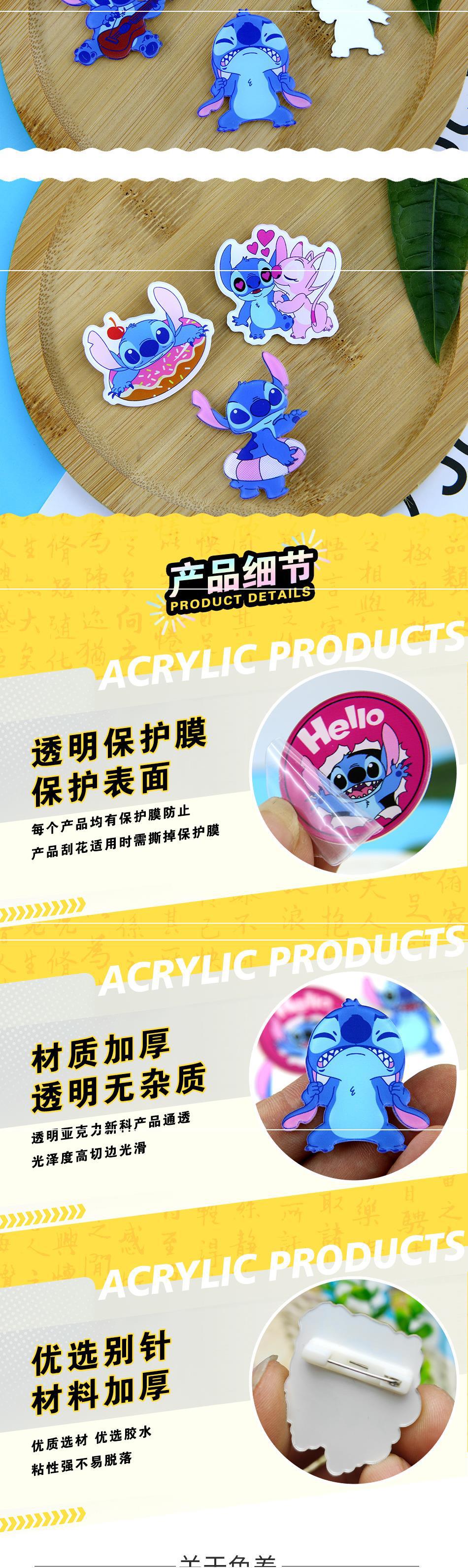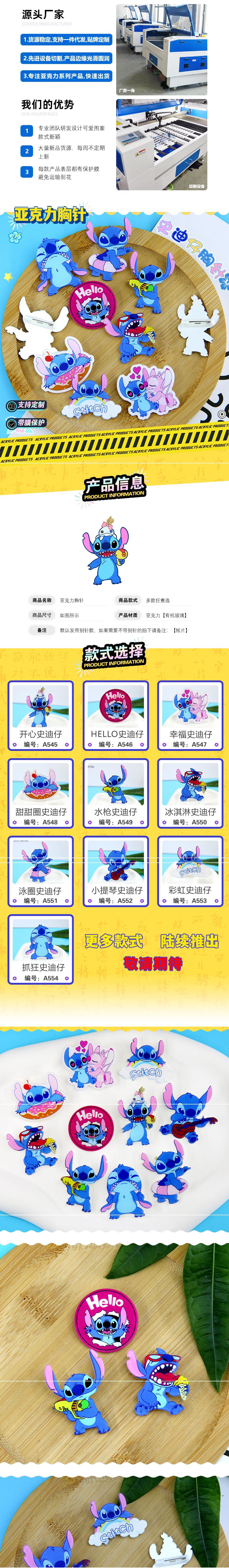 Broche Acrílico Periférico de Dibujos Animados Lindo Anime Stitch Creativo Divertido Decoración de Ropa para Bolsa Parche Colgante