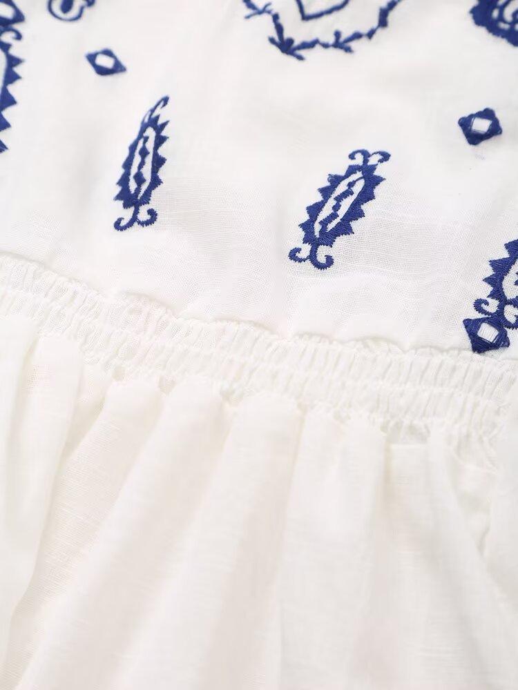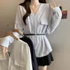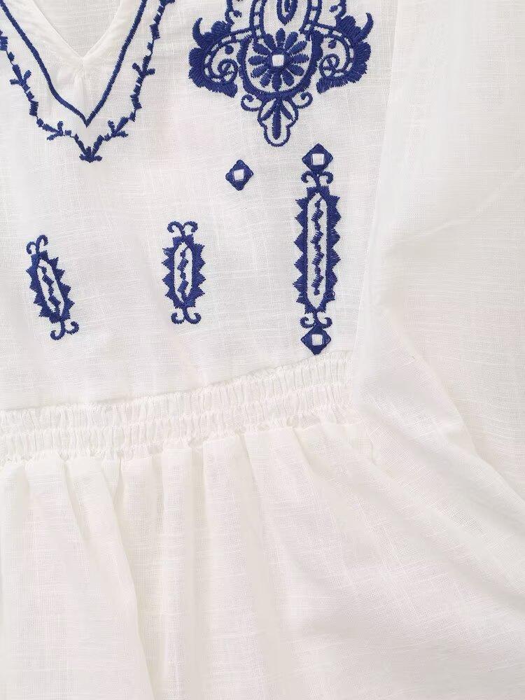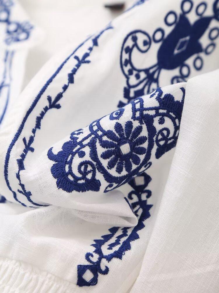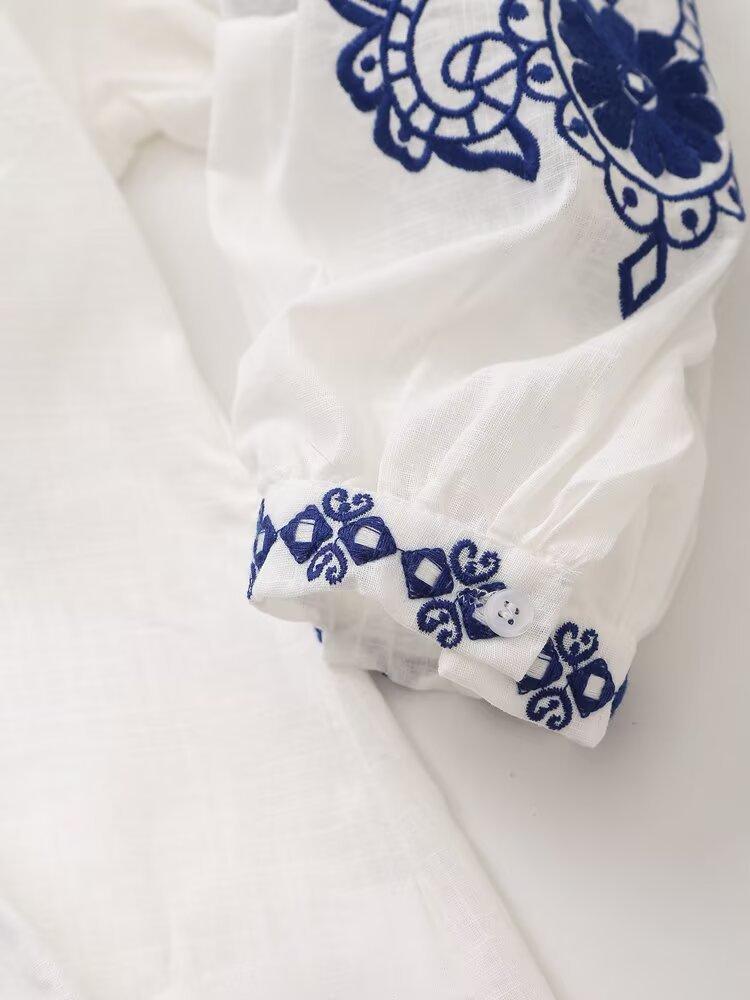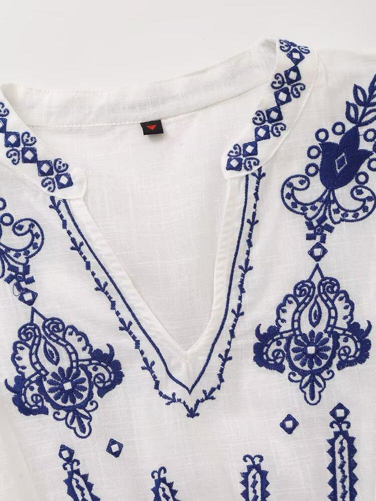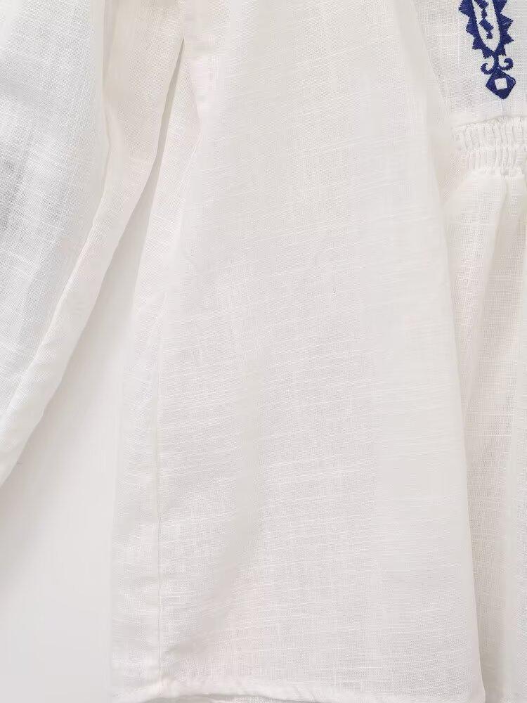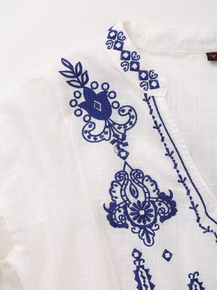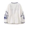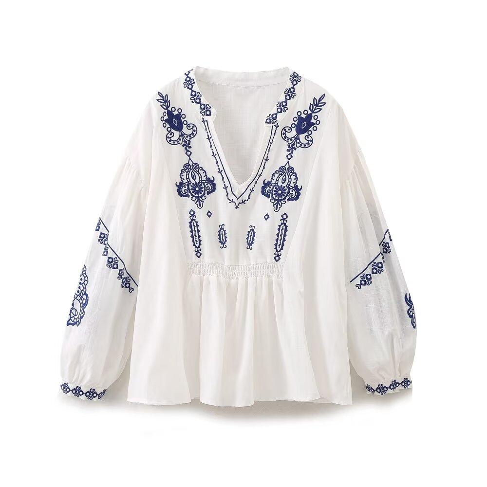 Europa y Estados Unidos moda callejera de primavera 2025 para mujer top de cuello en V bordado de manga larga camisa suelta al por mayor