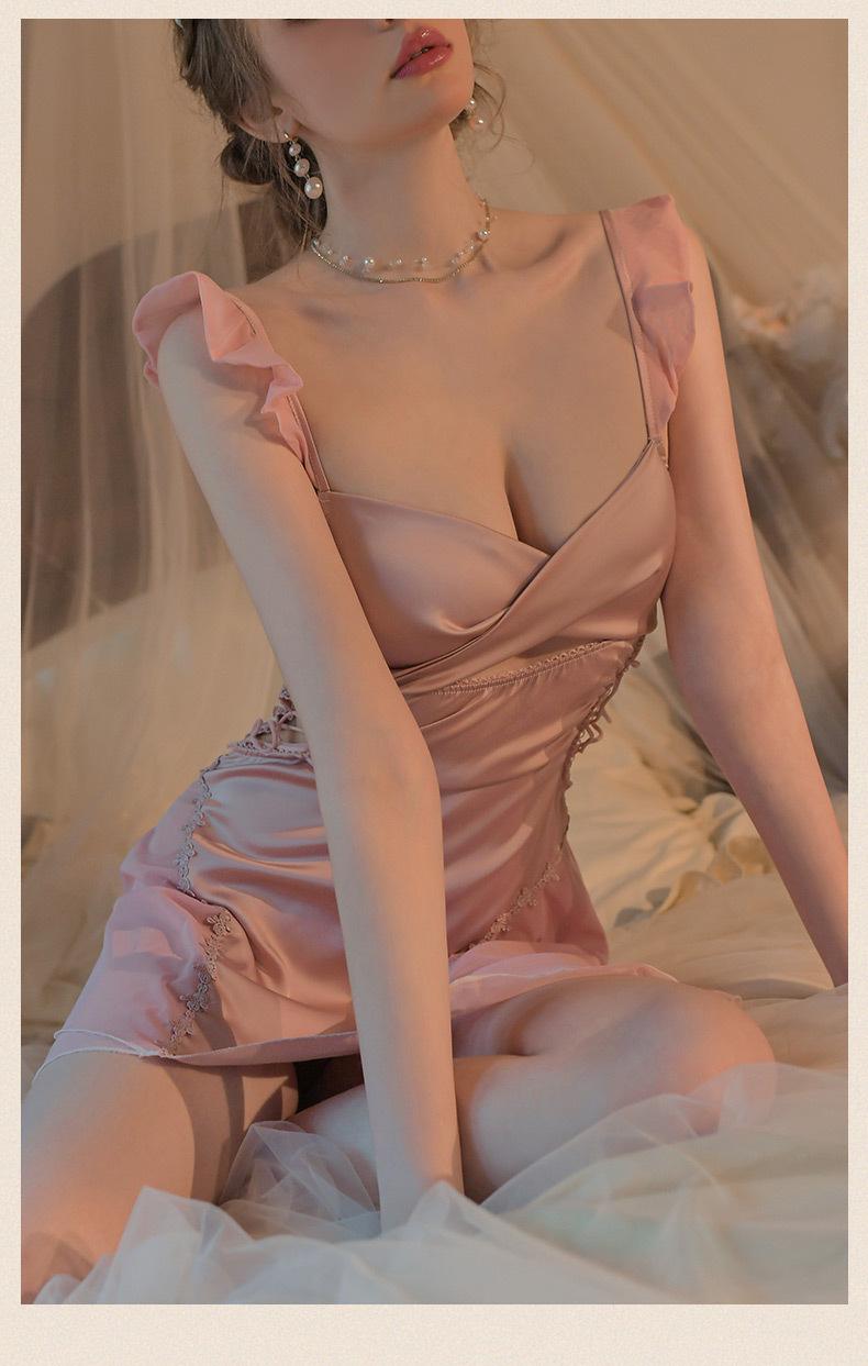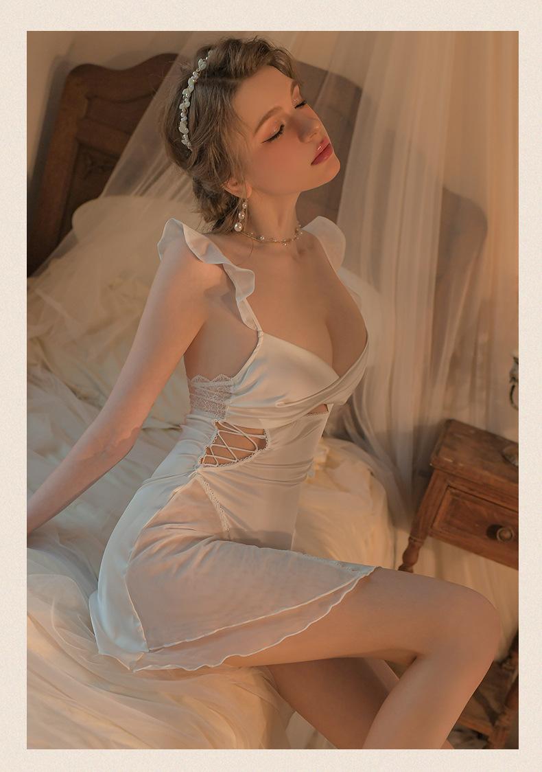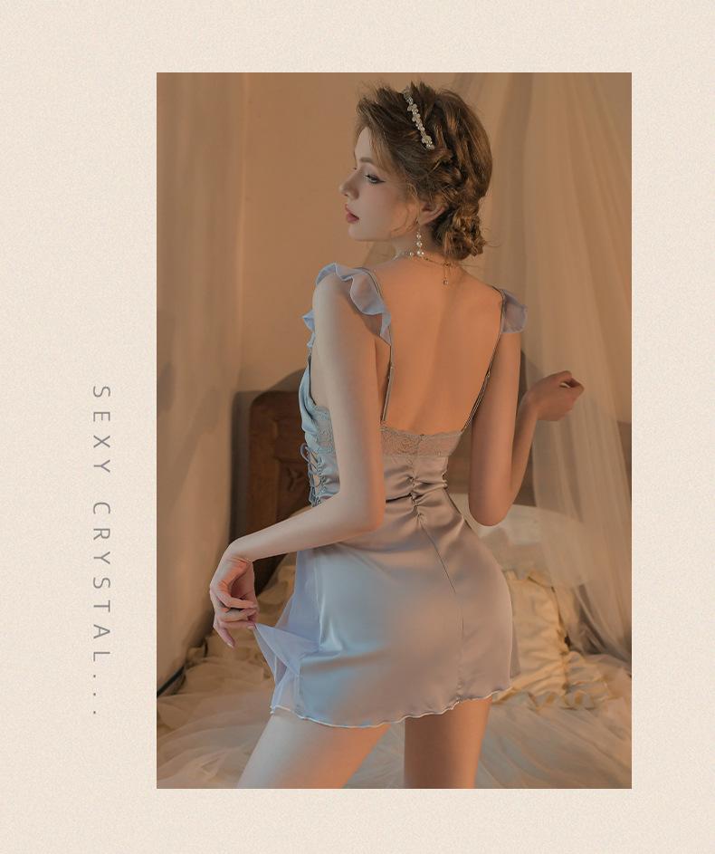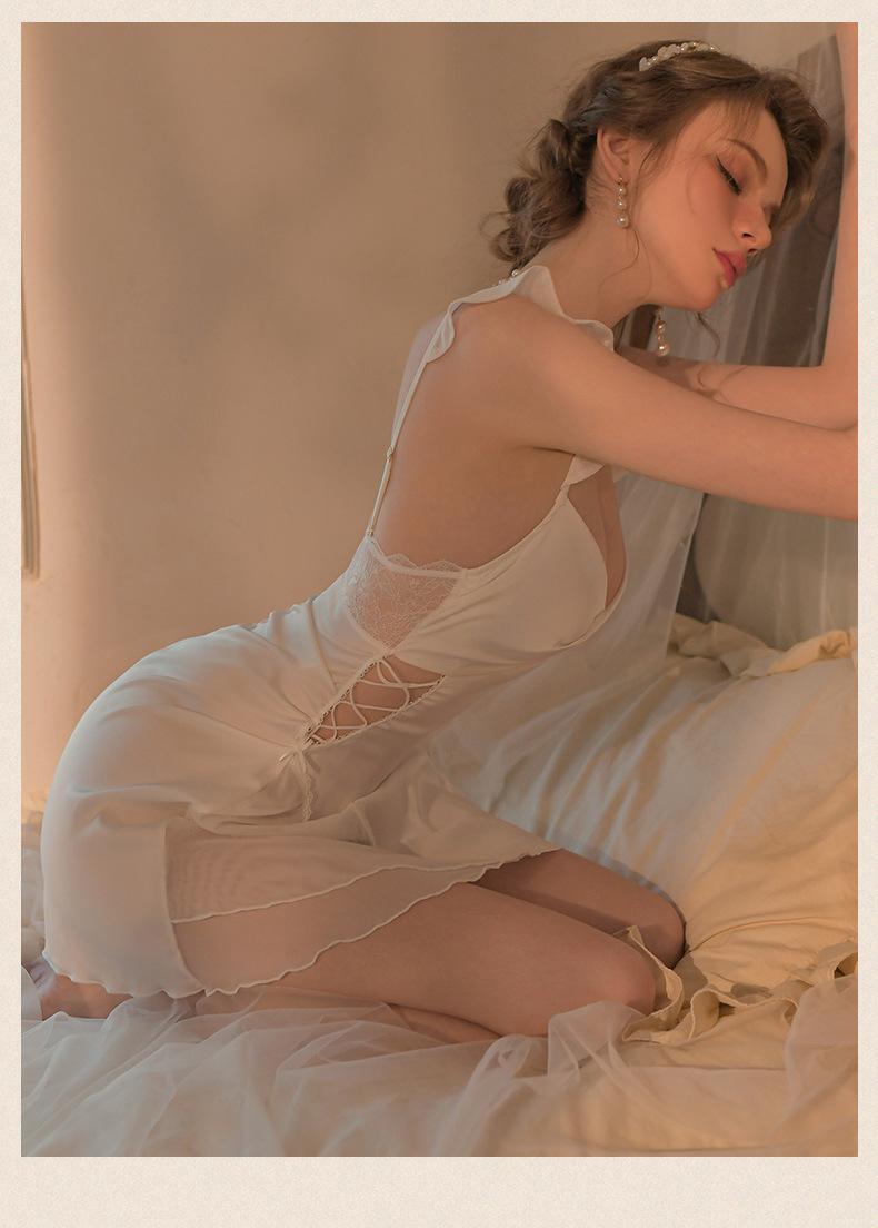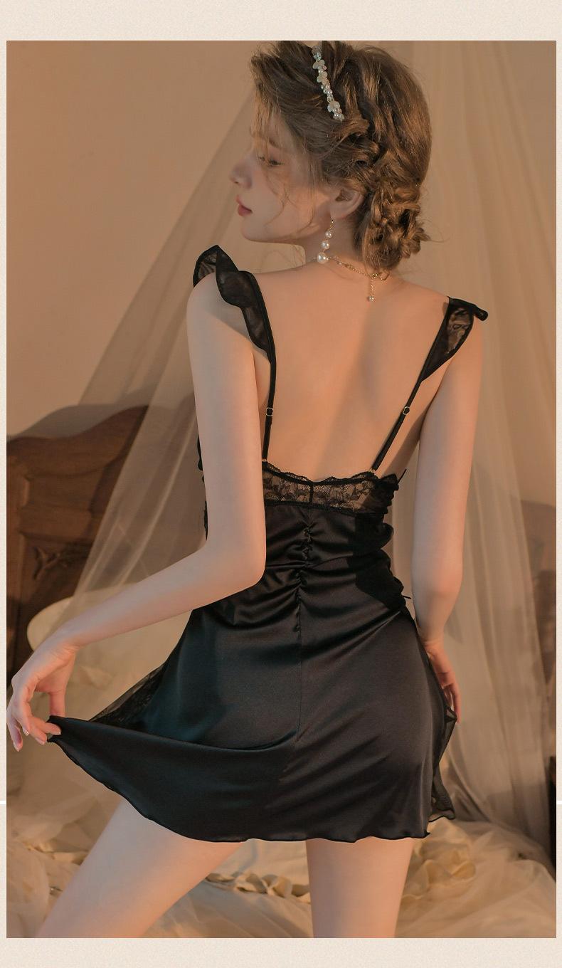 Pijama Sexy, Camisón de Encaje con Hermosa Espalda Descubierta, Falda Corta Sexy de Corte Bajo, Íntimos Privados Estilo Pura Lujuria, Ropa Sexy para el Hogar