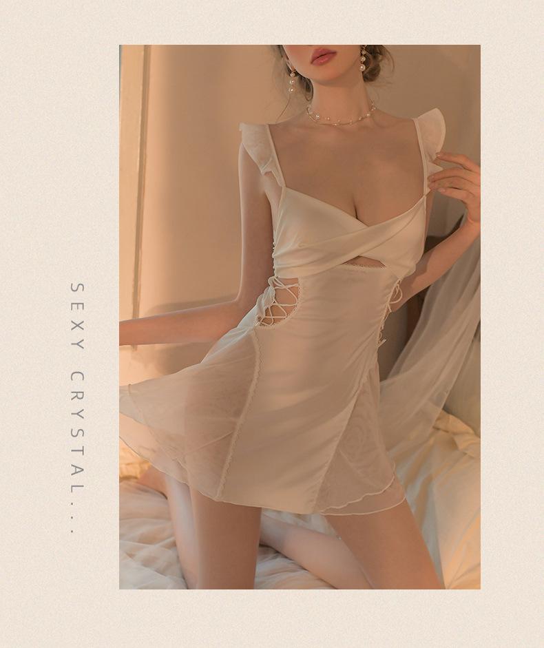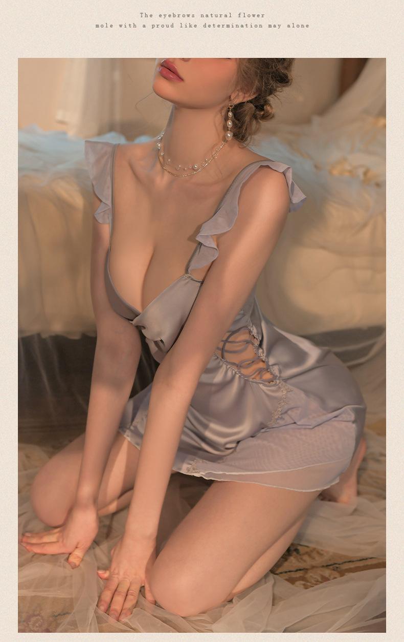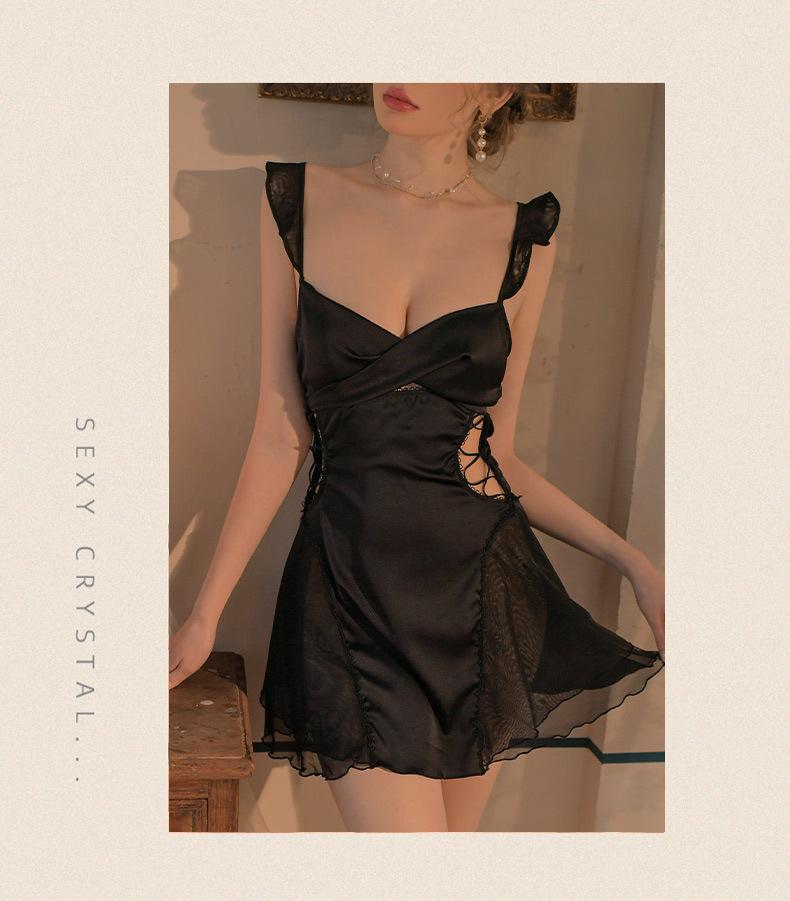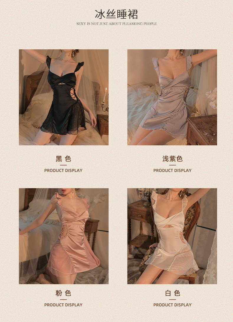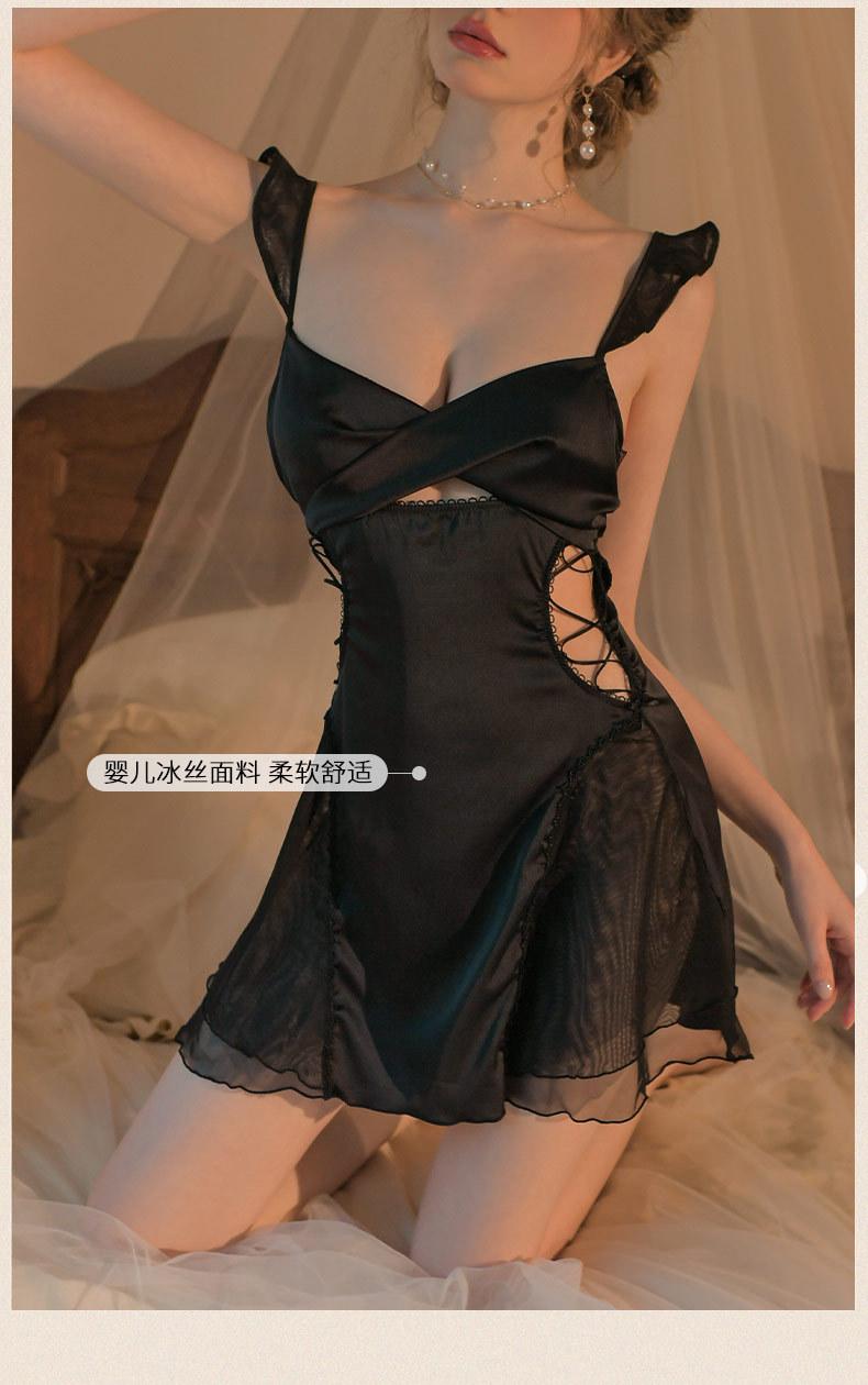 Pijama Sexy, Camisón de Encaje con Hermosa Espalda Descubierta, Falda Corta Sexy de Corte Bajo, Íntimos Privados Estilo Pura Lujuria, Ropa Sexy para el Hogar