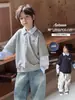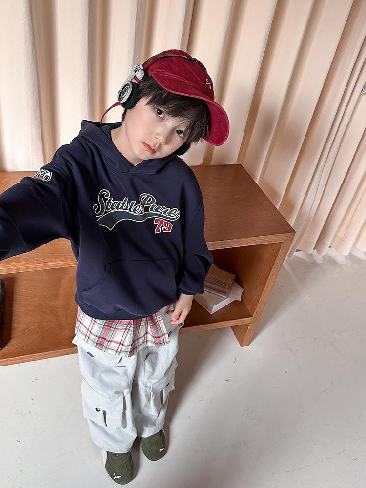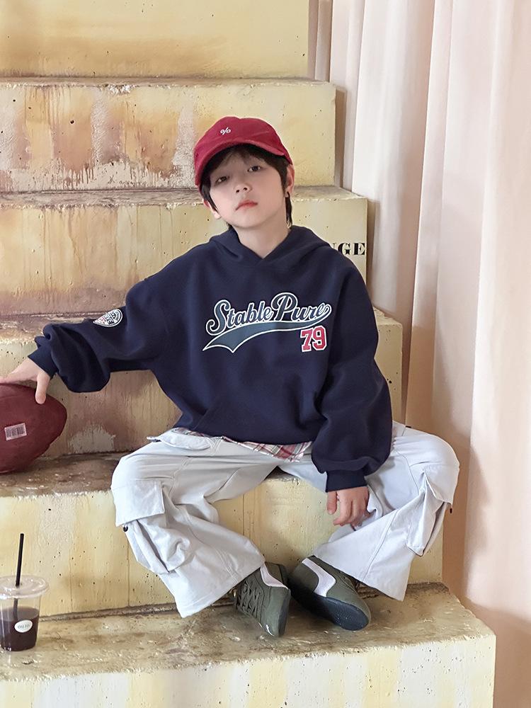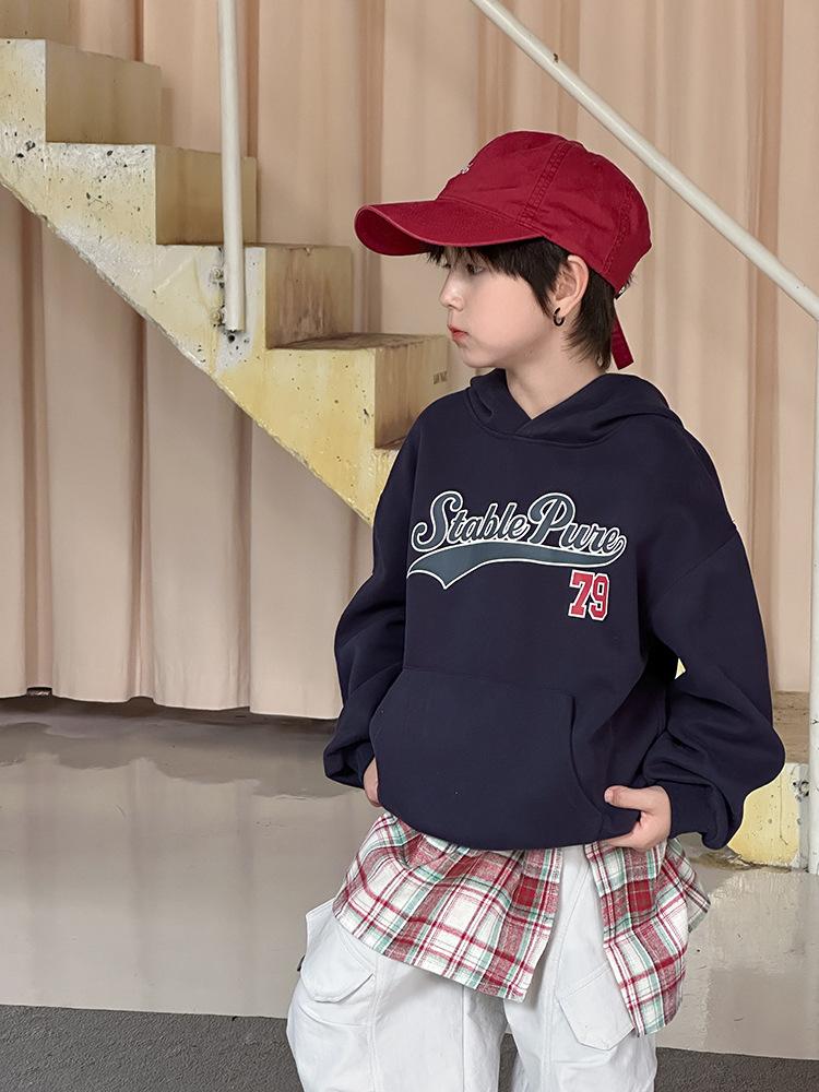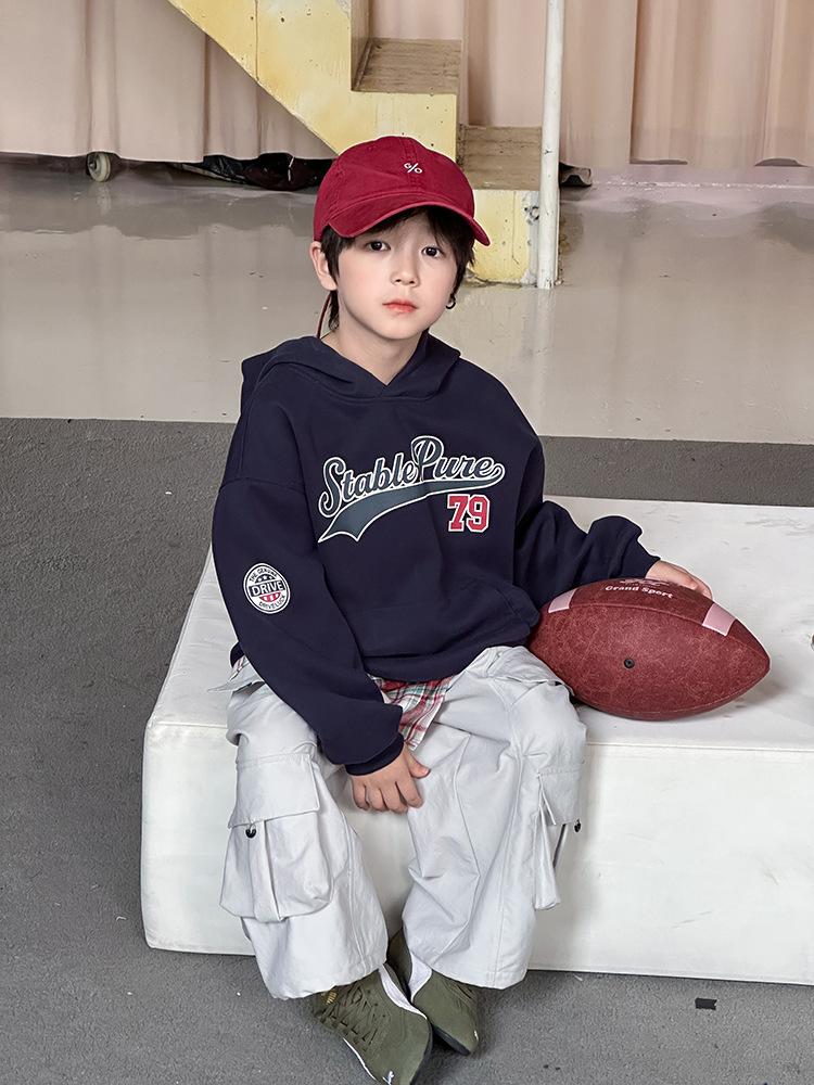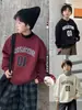 Sudadera con capucha holgada Aimo Beibei 2025 Otoño para niños con letra americana, sudadera genial de algodón fino para niños grandes