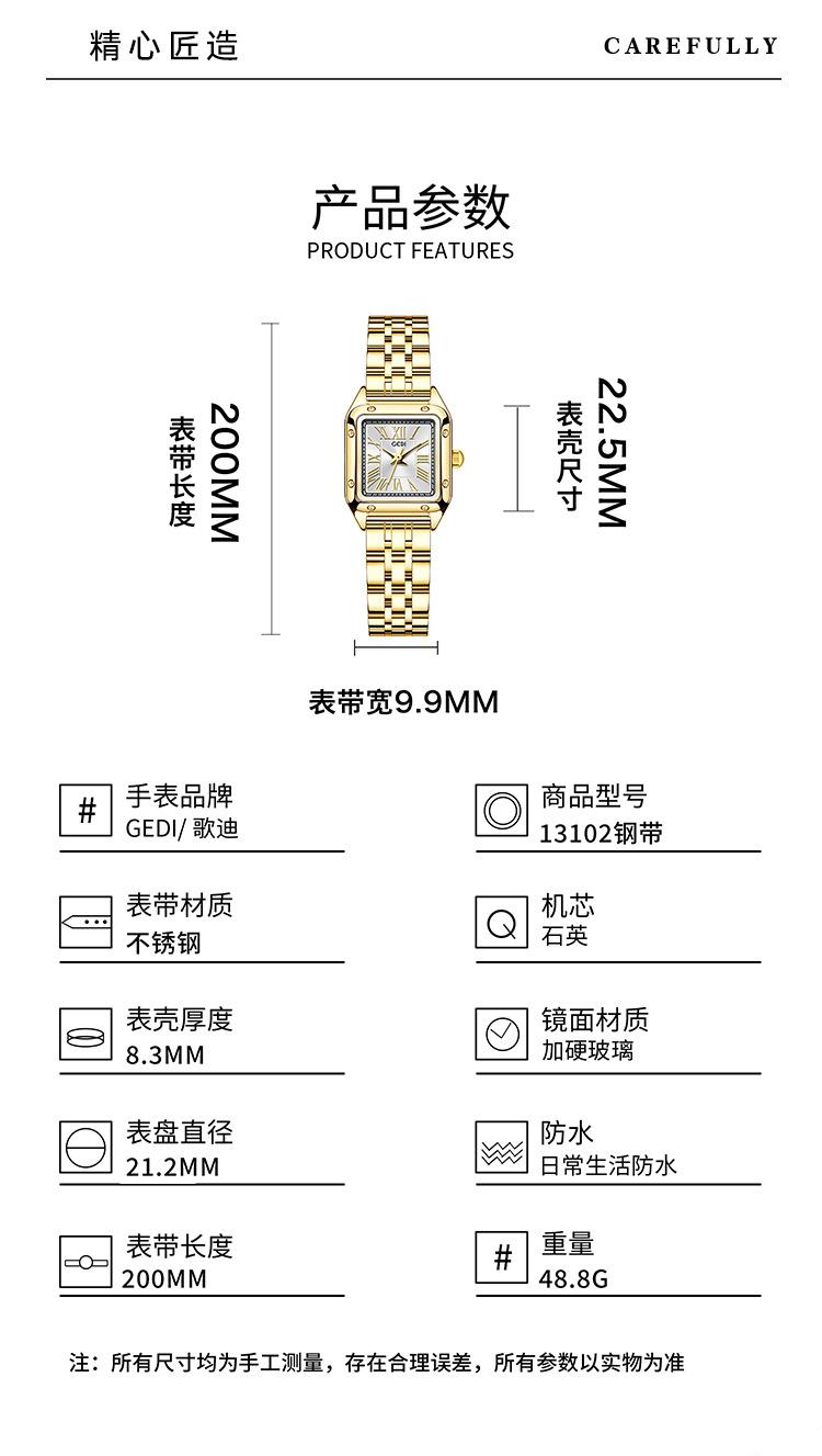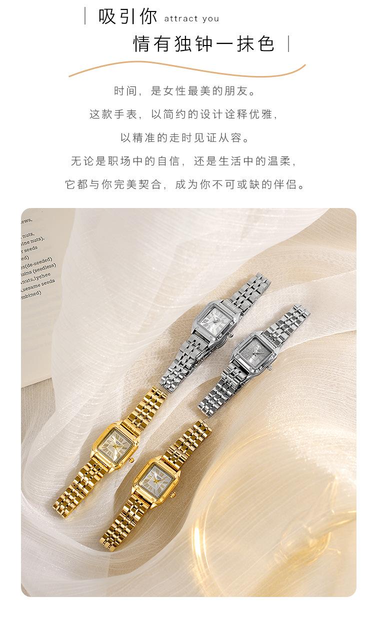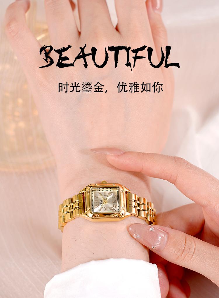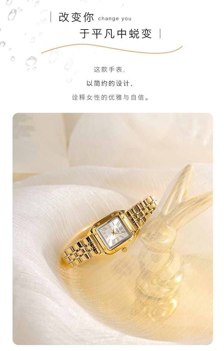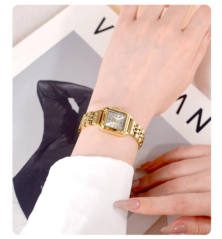 Reloj de Mujer Goldie Lujo Ligero Correa de Acero Reloj de Cuarzo para Mujer Placa Cuadrada Temperamento Nicho de Alto Valor
