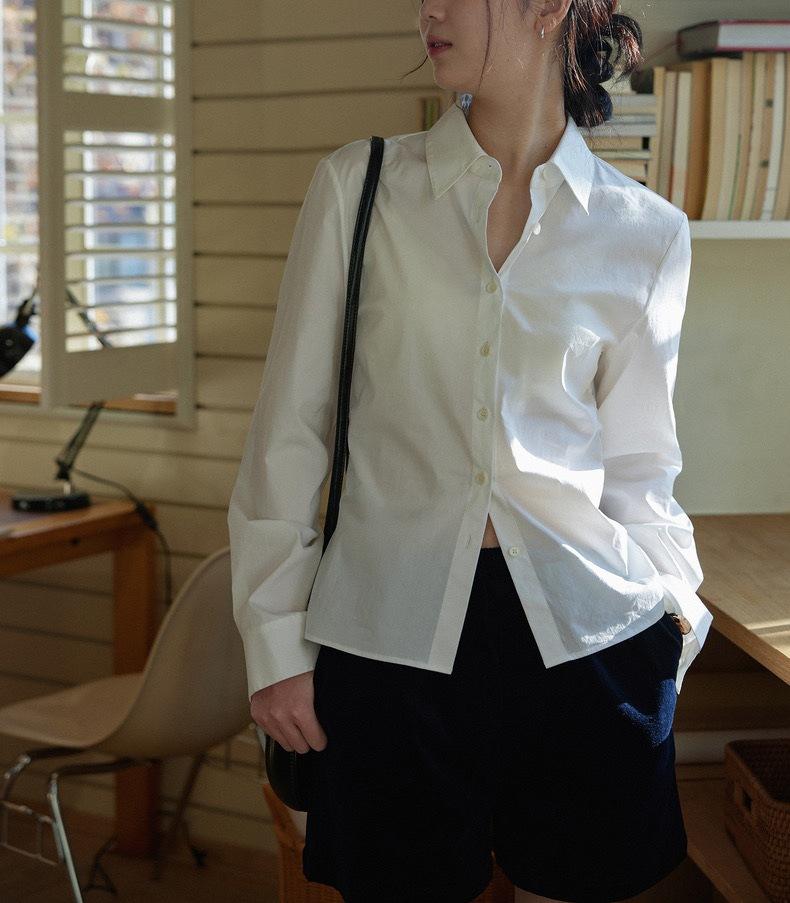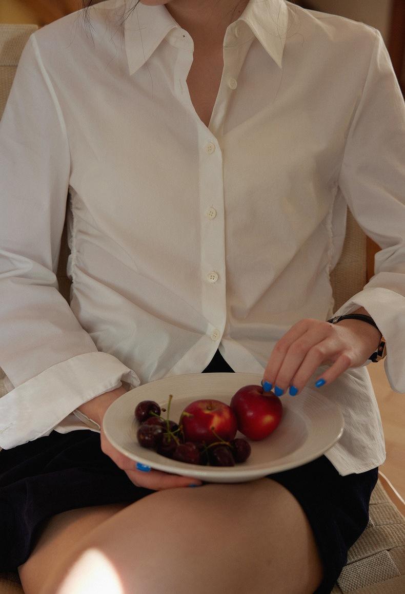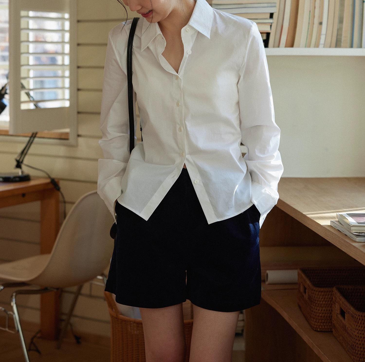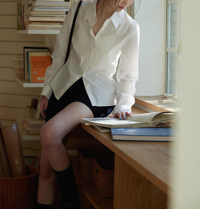 Camisa de manga larga azul pequeña con cintura arrugada 2025SS Intellectuals