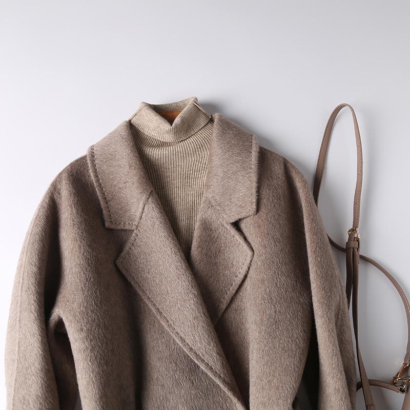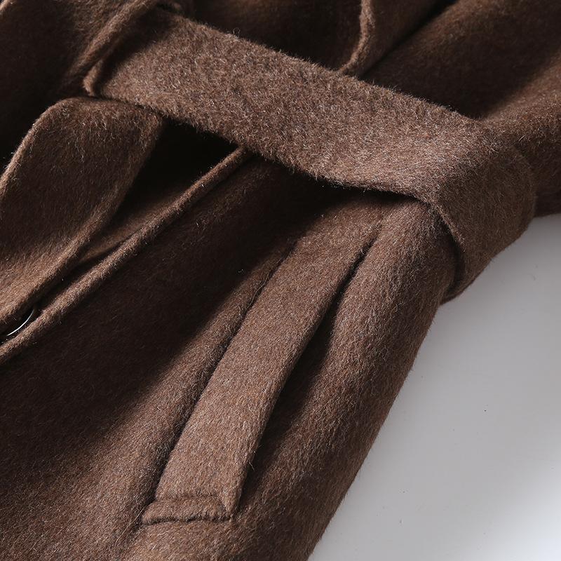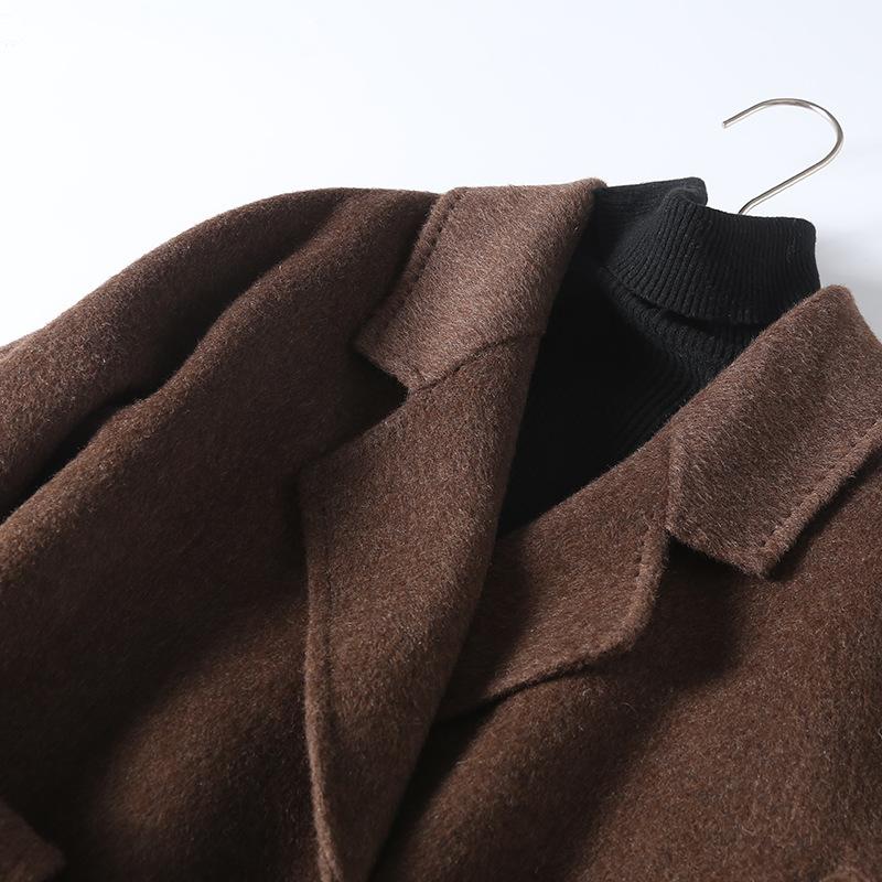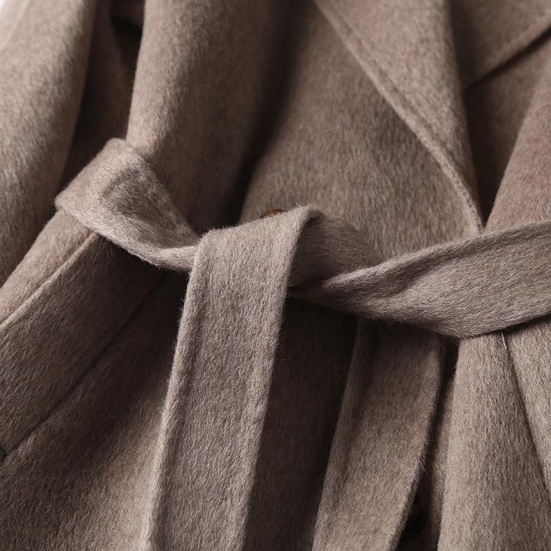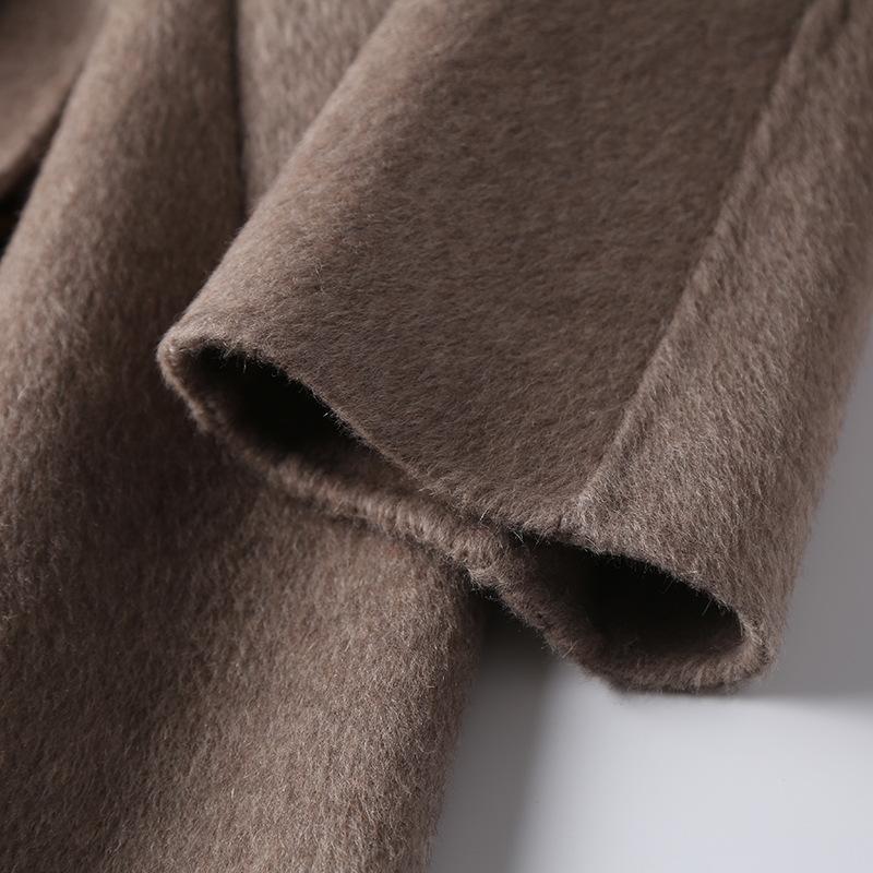 2025 Otoño e Invierno Clásico Abrigo de Lana de Doble Botonadura Largo Lana Color Café Maillard de Doble Cara Cachemira Abrigo para Mujer